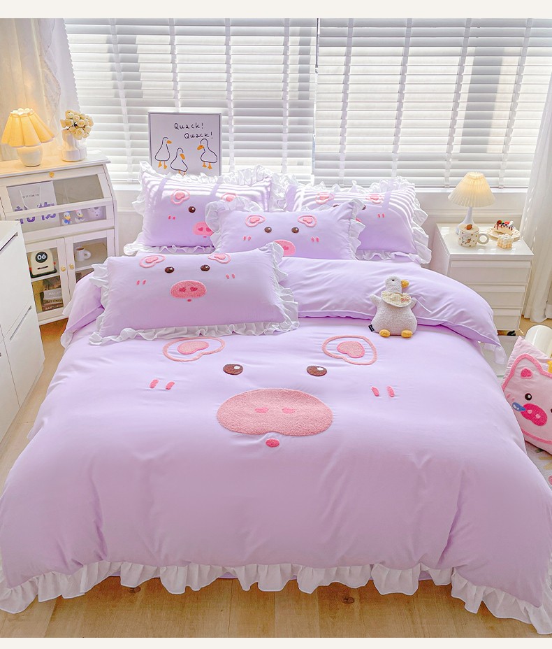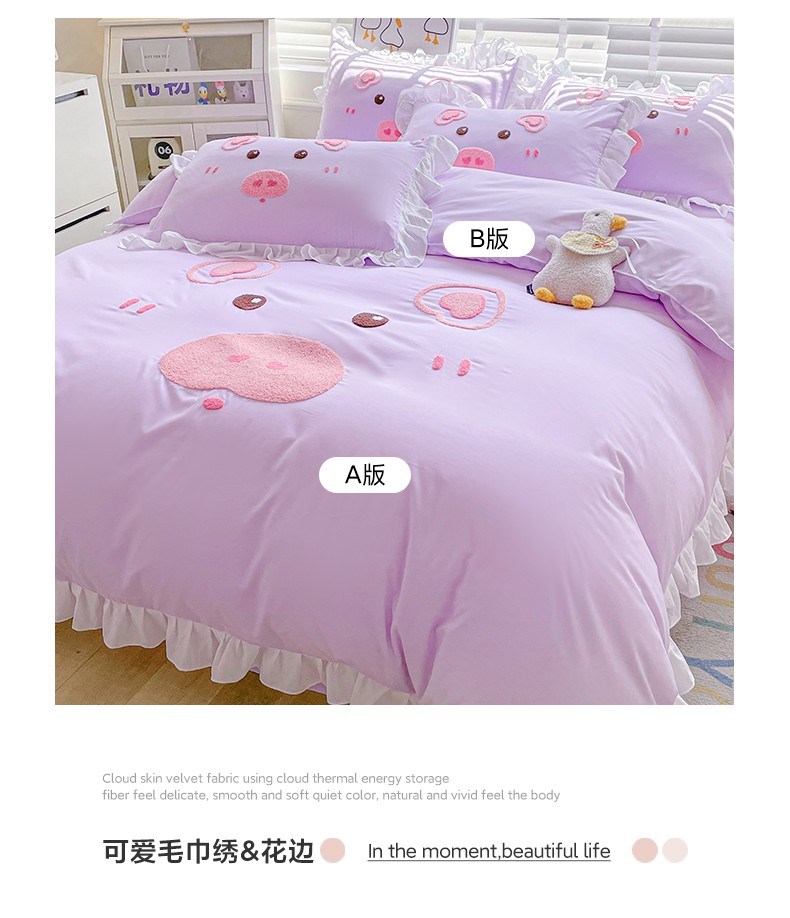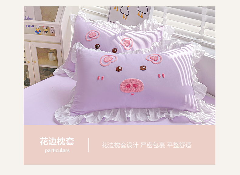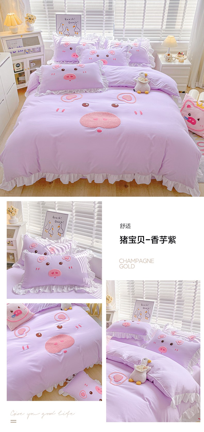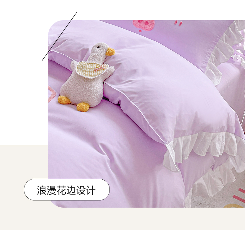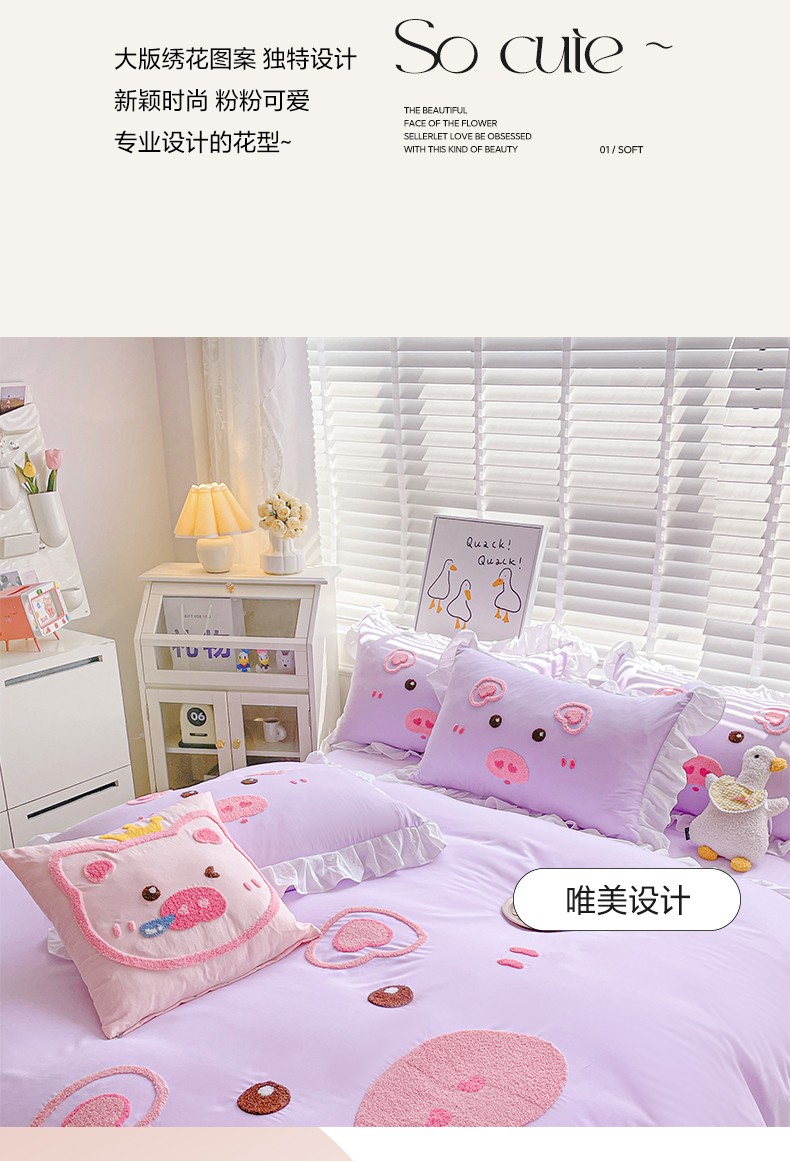 当前位置: 91家纺网 > 商品网购 > 床品套件 > 四件套 > 水洗棉四件套 > 泉欣2024新款水洗亲肤棉大版绣花四件套(专版花型)猪猪系列 猪宝贝-香芋紫