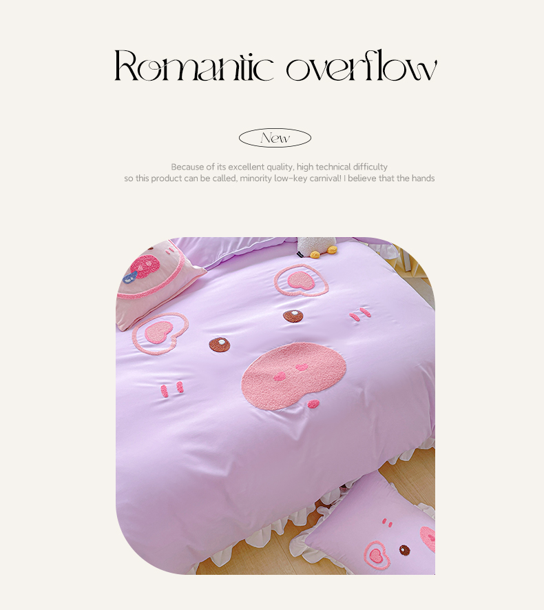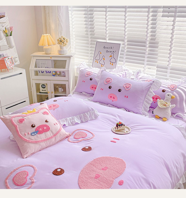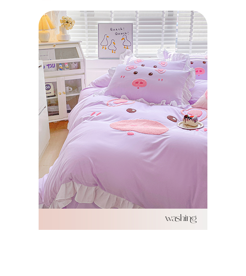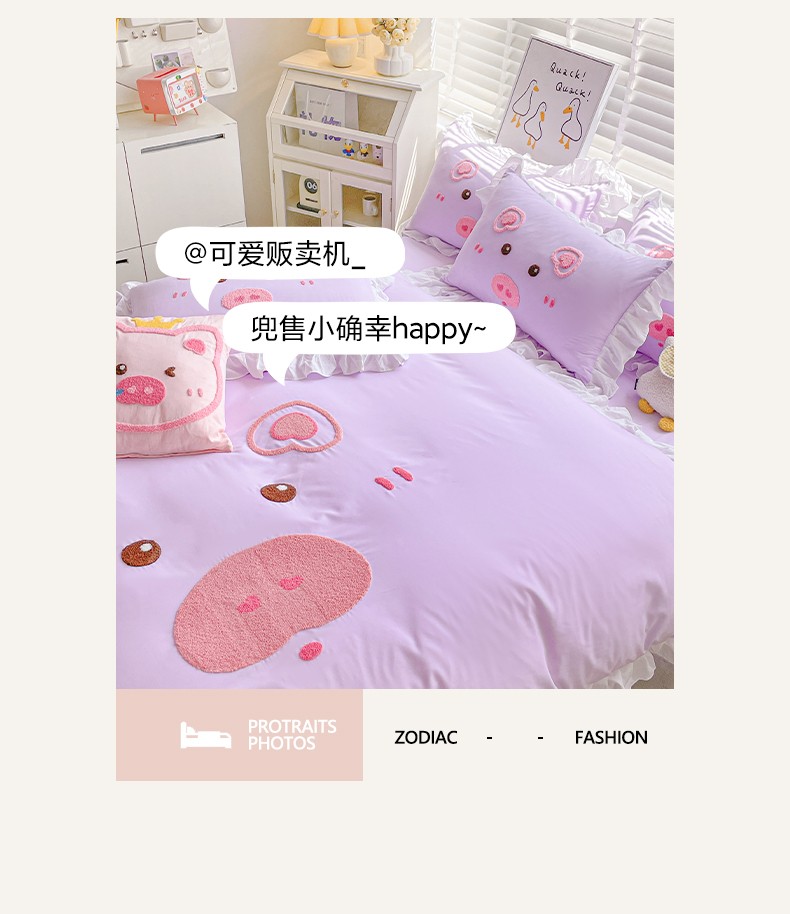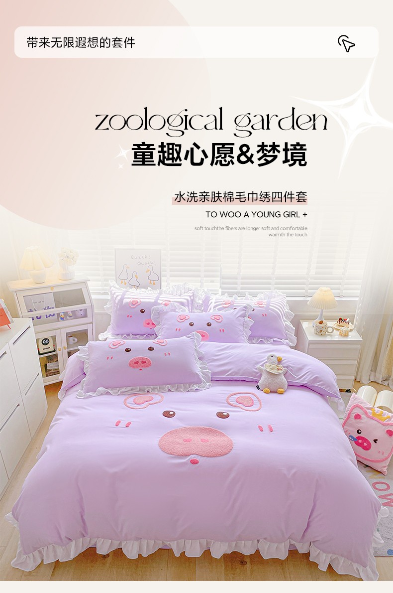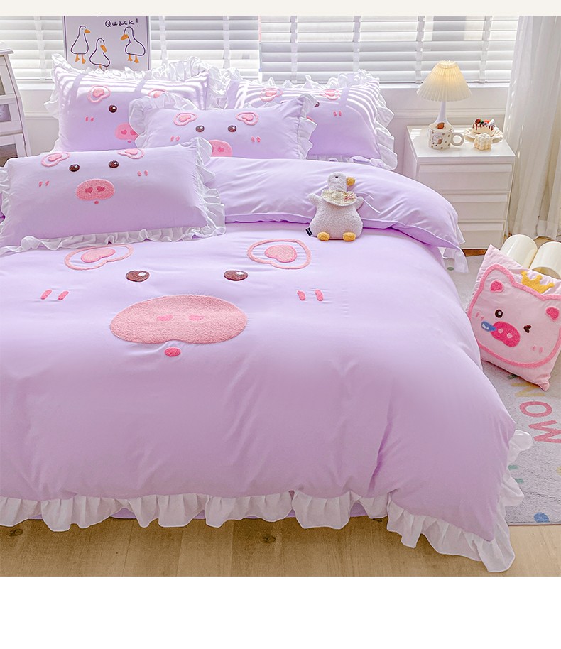 当前位置: 91家纺网 > 商品网购 > 床品套件 > 四件套 > 水洗棉四件套 > 泉欣2024新款水洗亲肤棉大版绣花四件套(专版花型)猪猪系列 猪宝贝-香芋紫