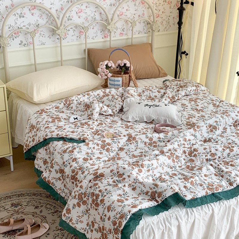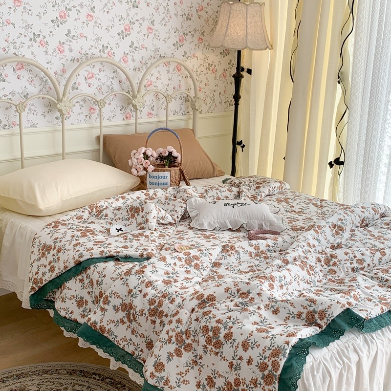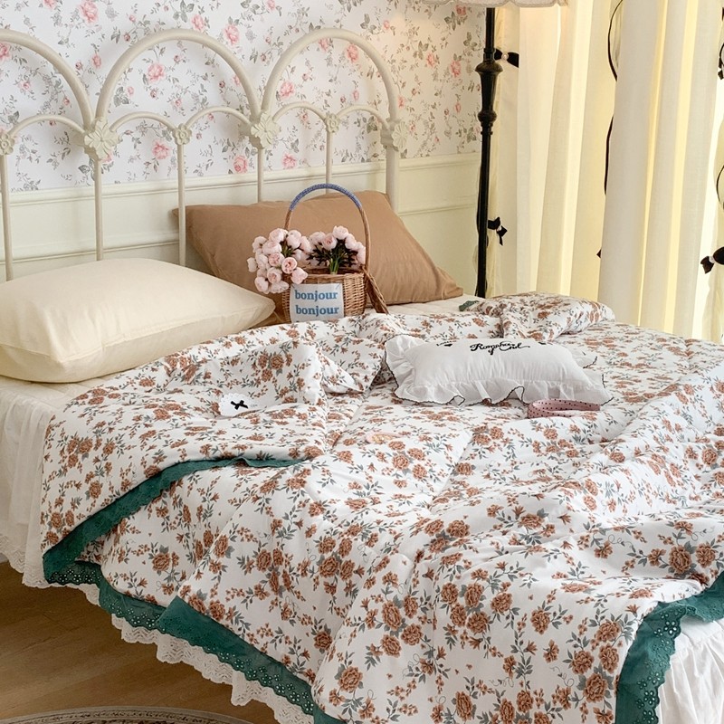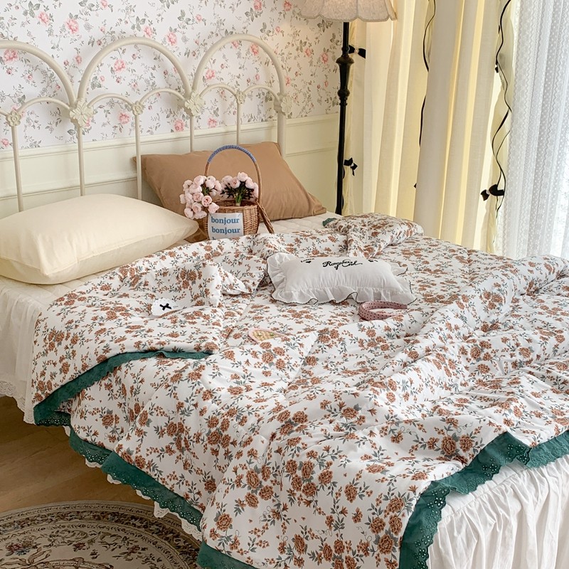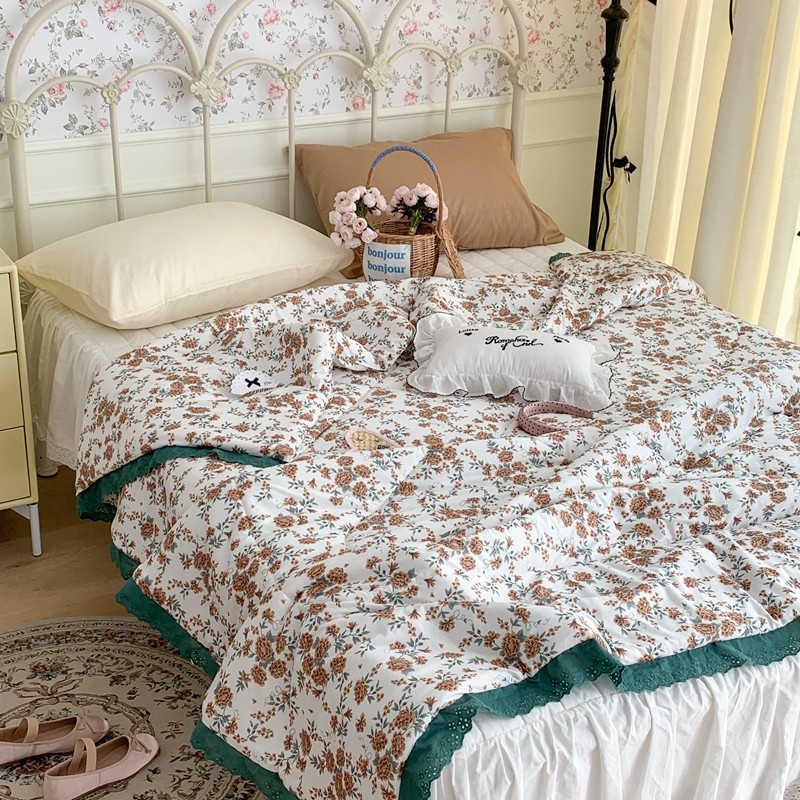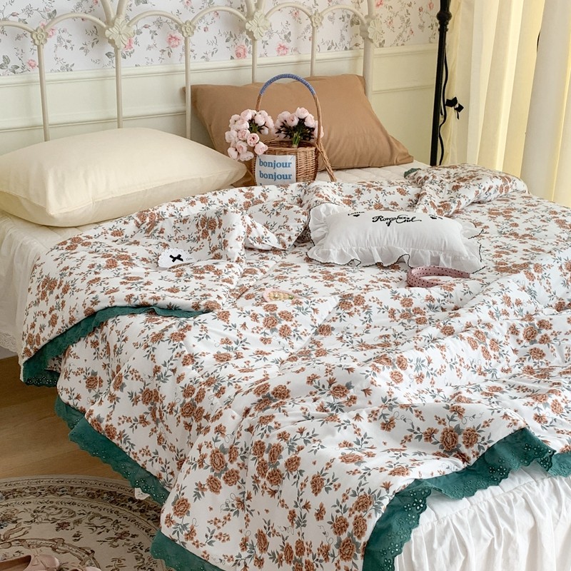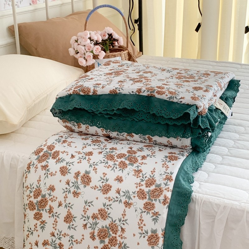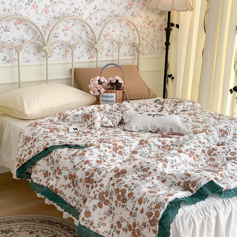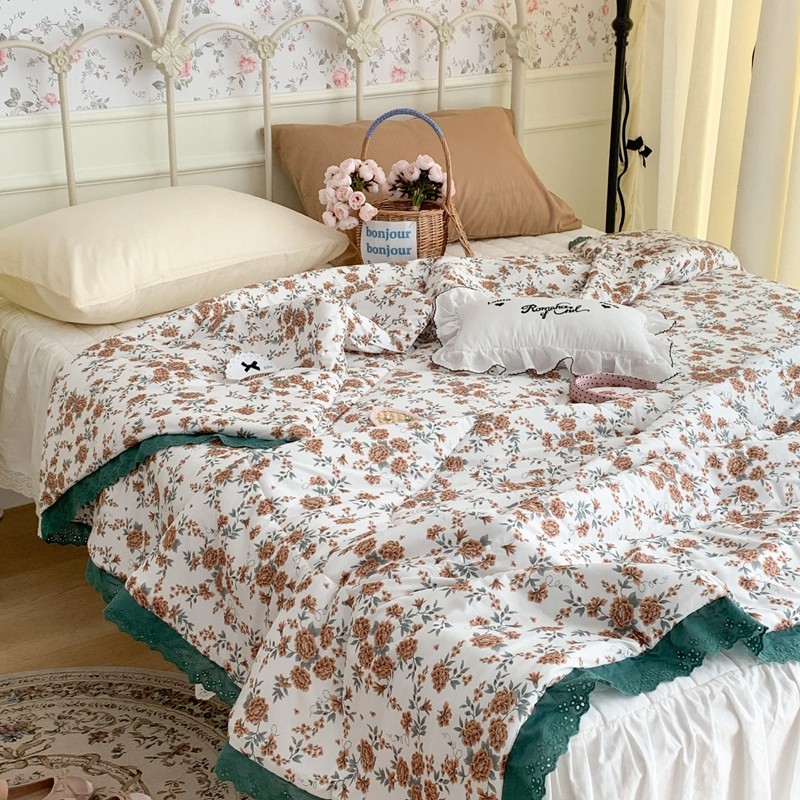 昔可 复古蕾丝花边针织夏被 复古庄园
