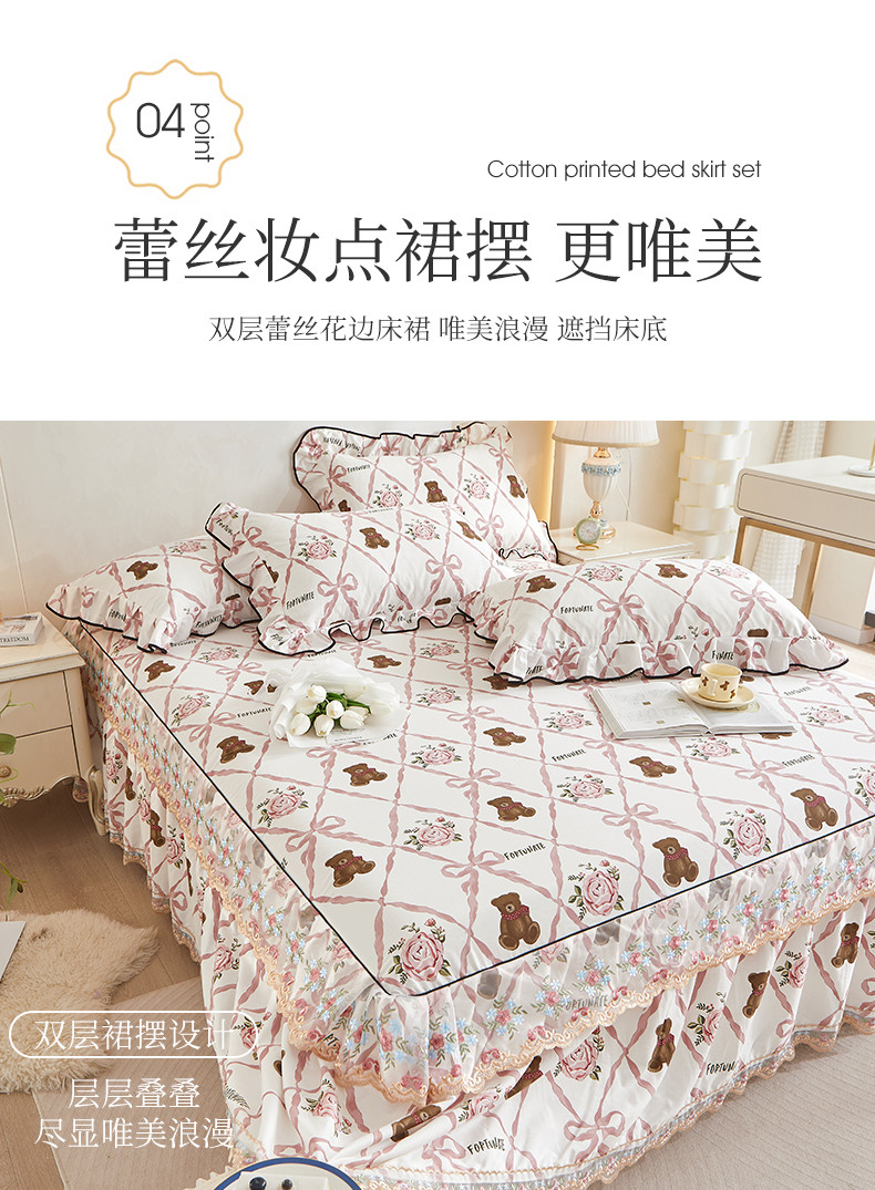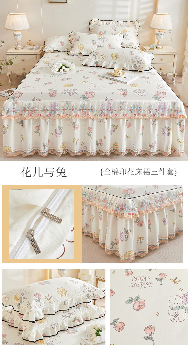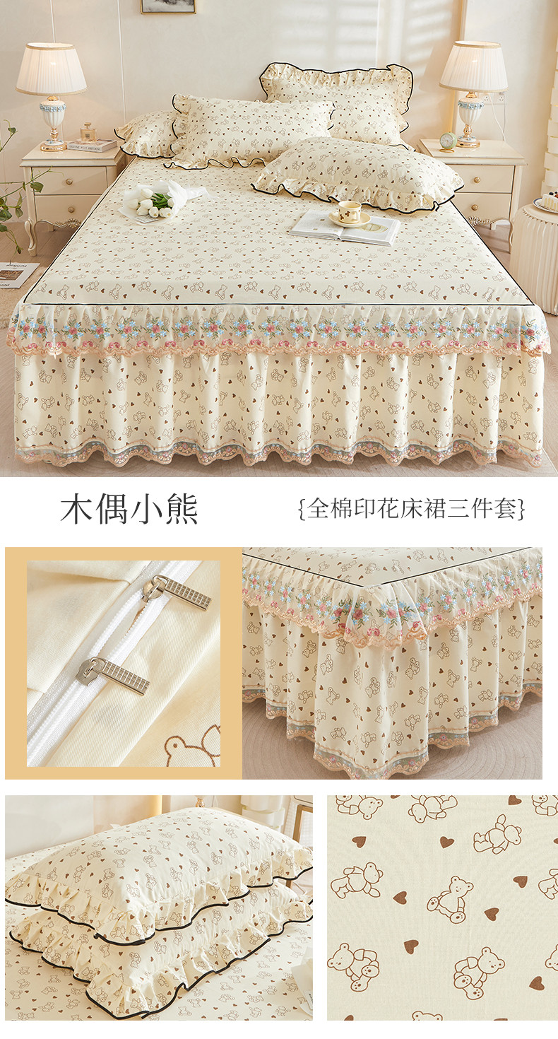 (总)宜凡 2023新款 全棉韩版床裙三件套