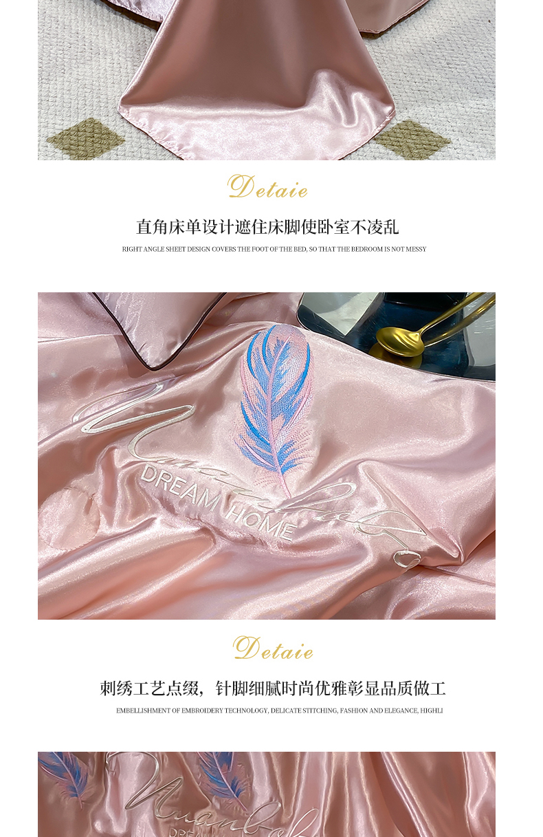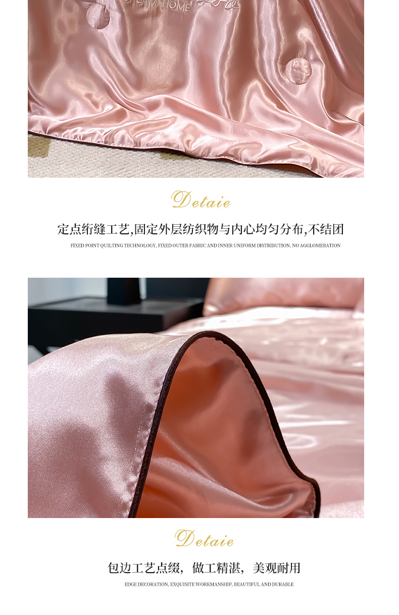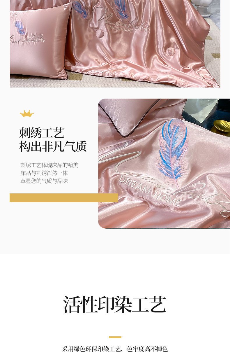 • 91家纺网 家纺一手货源 找家纺 啊雅家居 2025新款水洗真丝夏被空调被四件套 彩羽-珊瑚粉