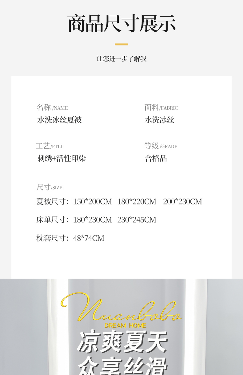 • 适用季节: 空调被/夏凉被