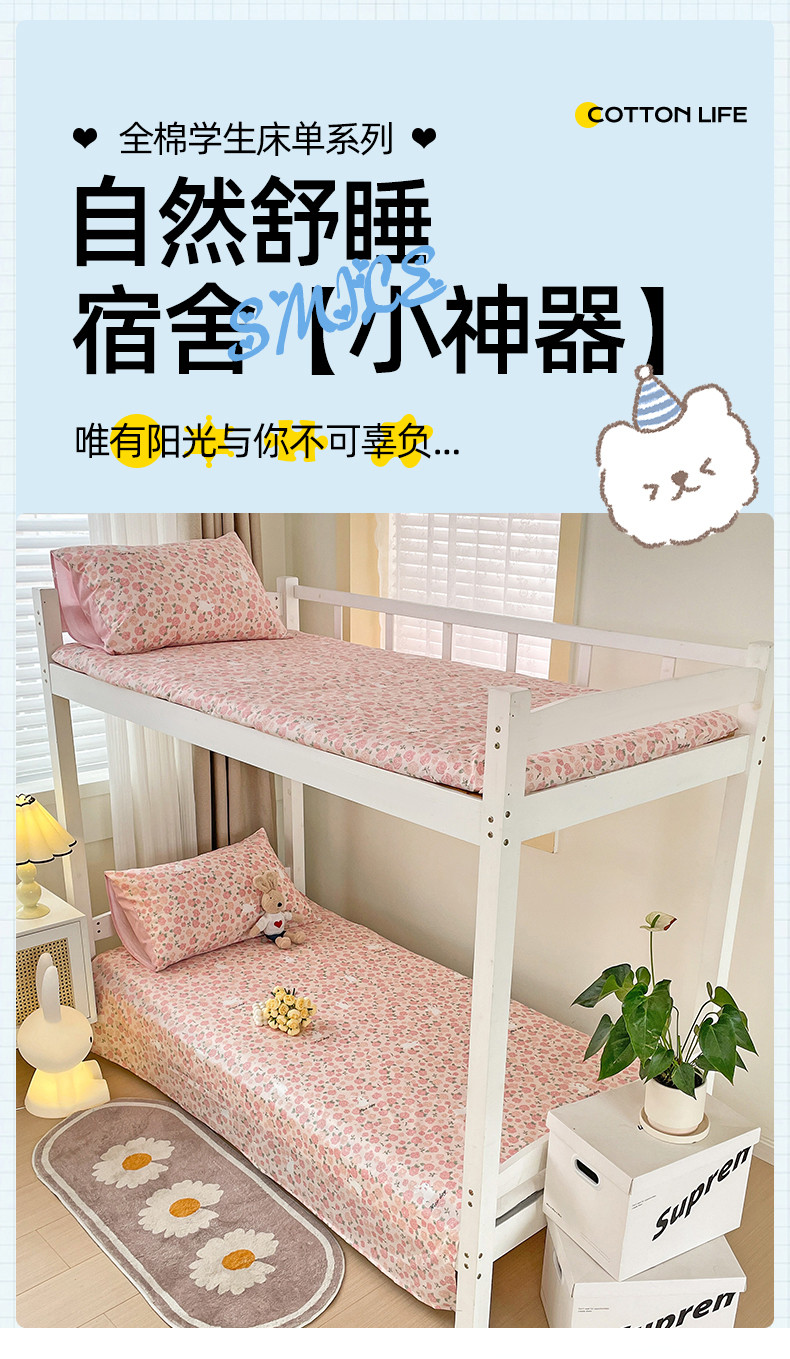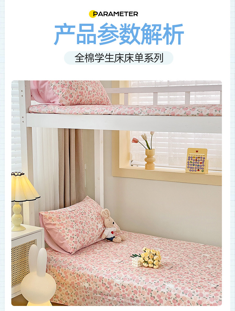 • 91家纺网 家纺一手货源 找家纺 名兮 2023新款全棉学生上下铺床单 遇见浪漫