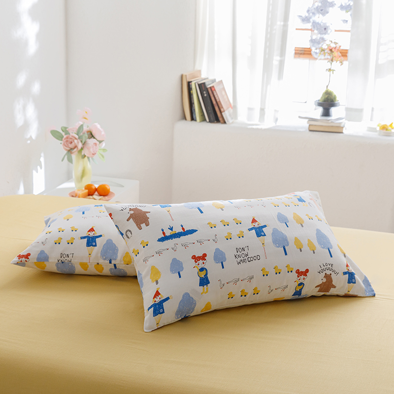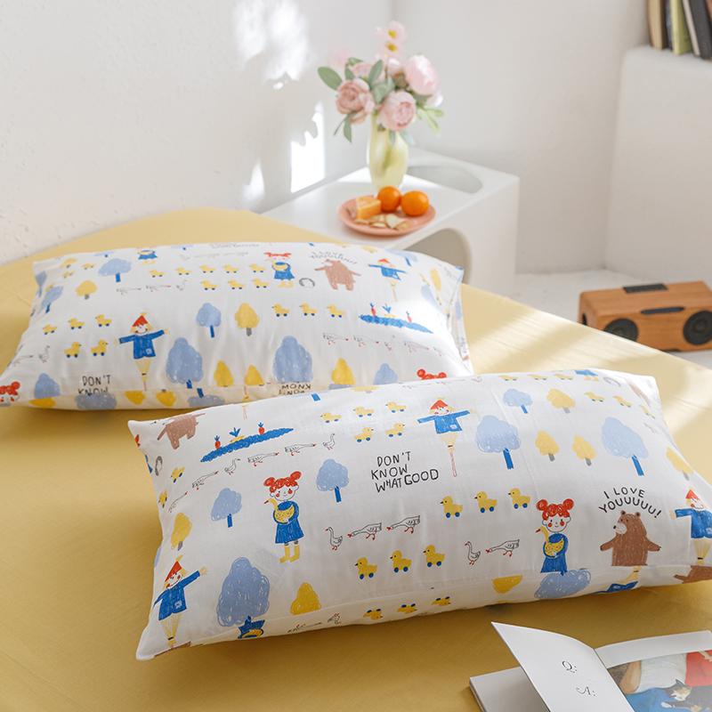 8小时家纺 2023新款40s全棉双层纱单品四件套系列-单枕套 鸭鸭稻草人