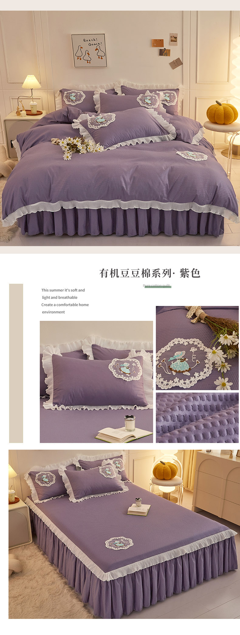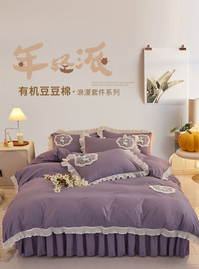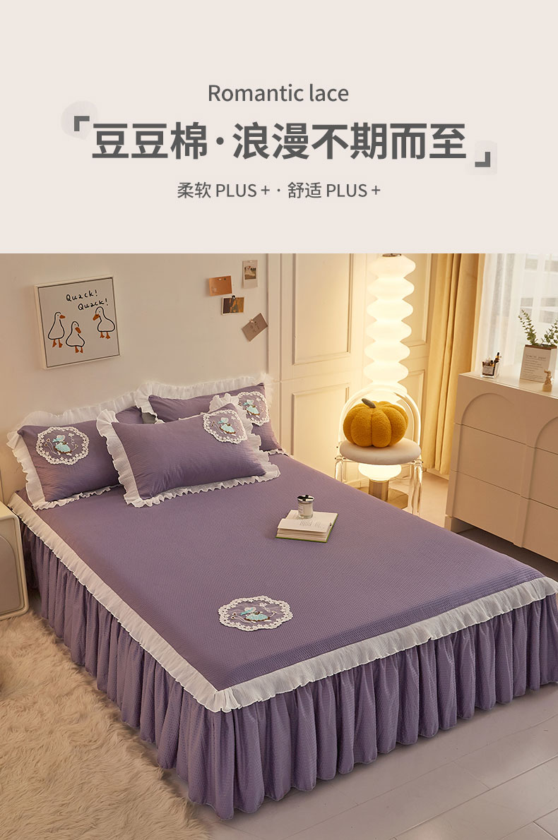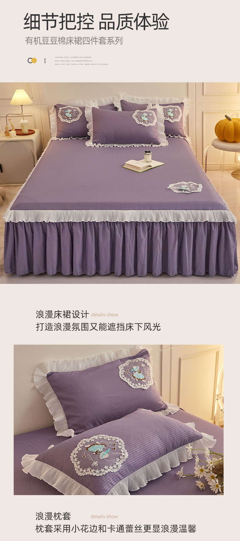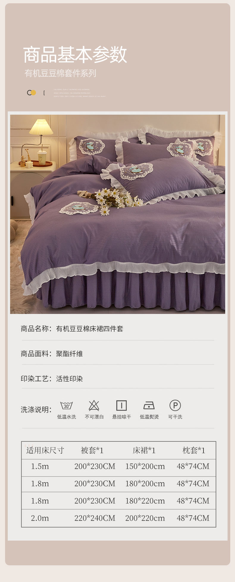 当前位置: 91家纺网 > 商品网购 > 床品套件 > 四件套 > 全棉普通四件套 > 恋尚 2023新款有机豆豆棉床裙四件套 紫色