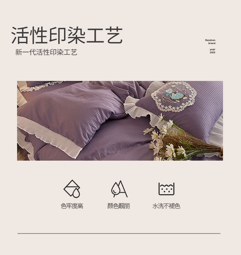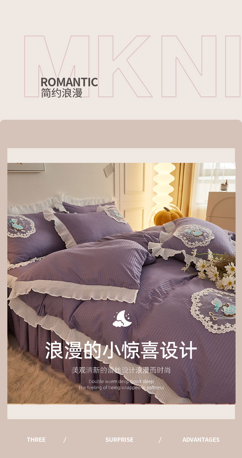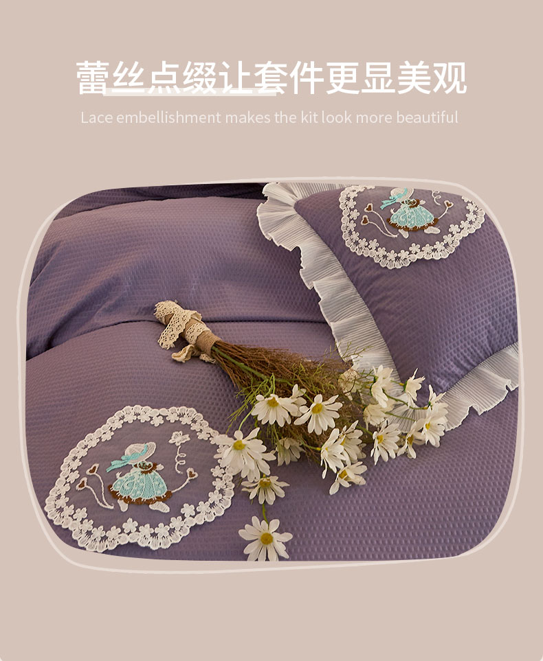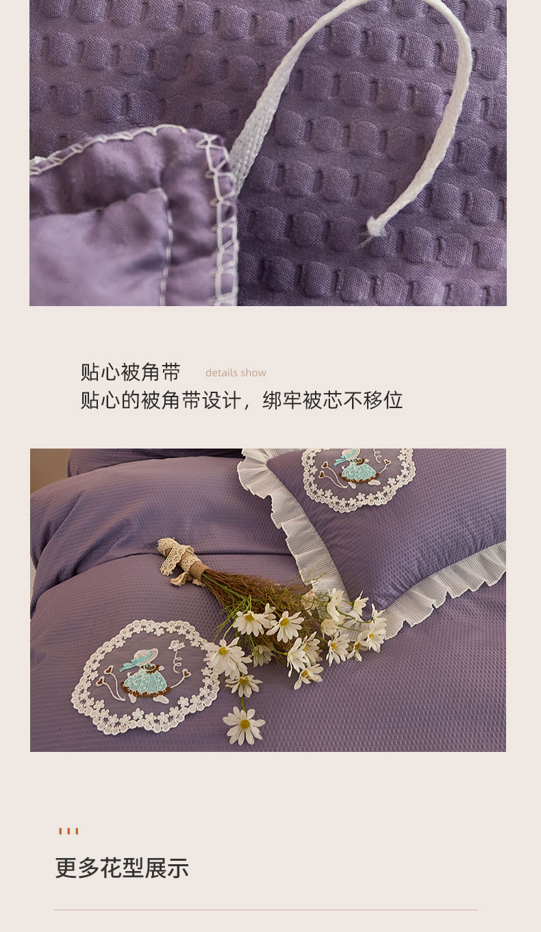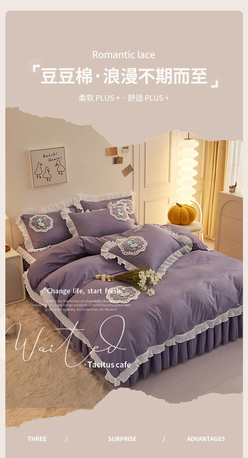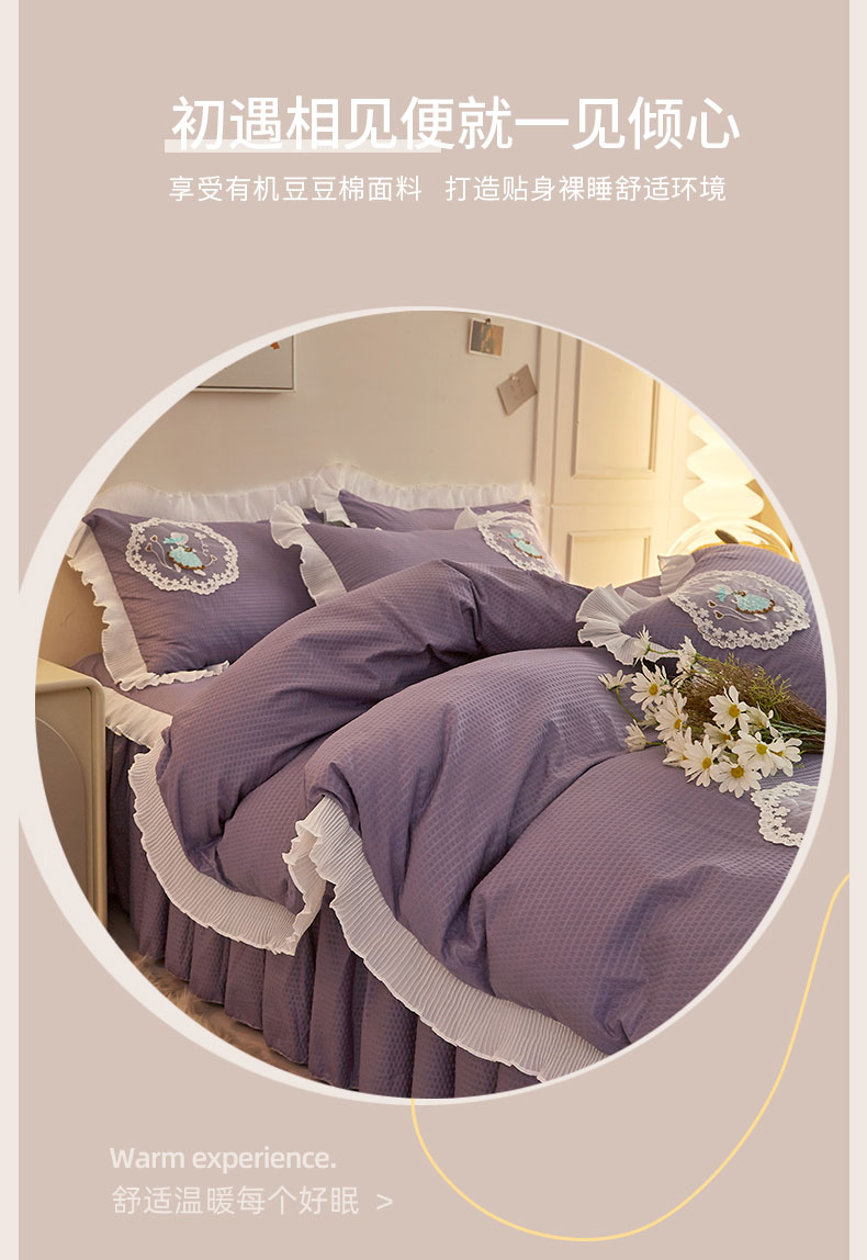 当前位置: 91家纺网 > 商品网购 > 床品套件 > 四件套 > 全棉普通四件套 > 恋尚 2023新款有机豆豆棉床裙四件套 紫色