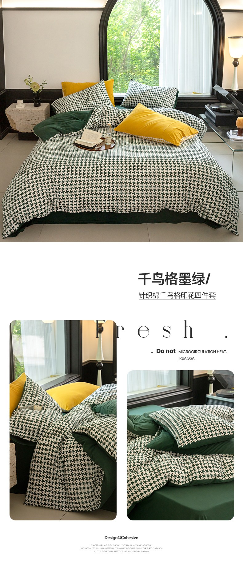 (总)华超针织 2023新款针织棉千鸟格印花四件套