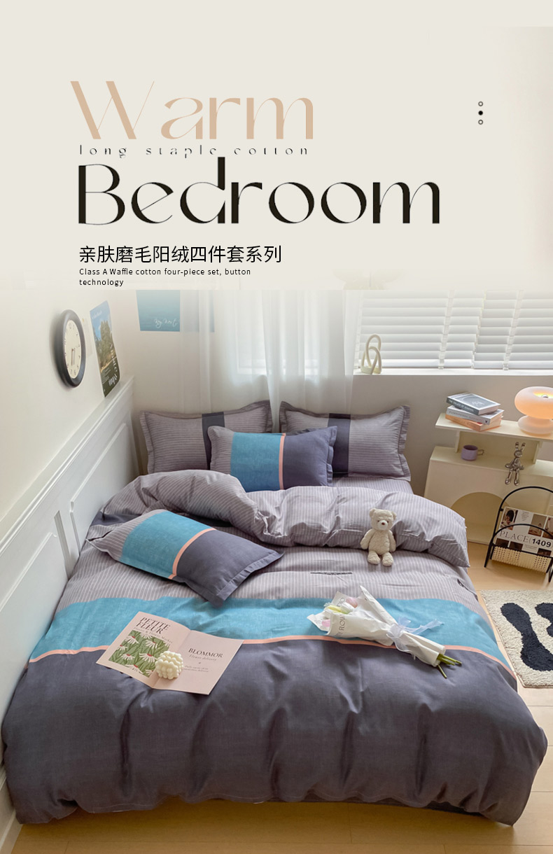 宇淳国际 2023新款加厚植物羊绒四件套 风情摩卡