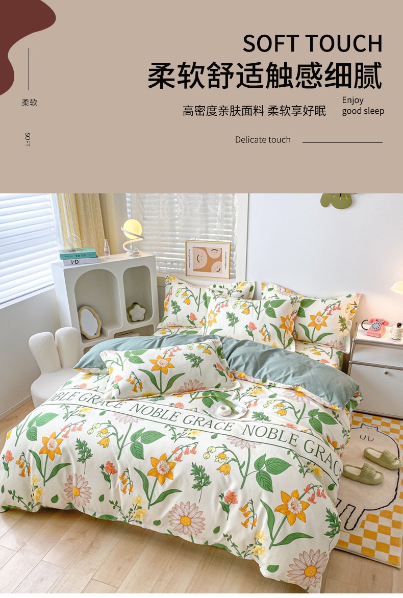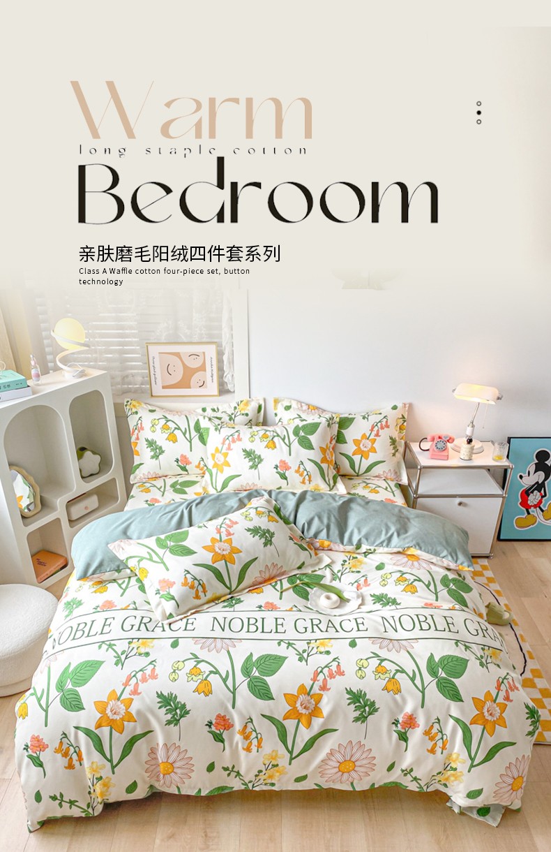宇淳国际 2023新款加厚植物羊绒四件套 花田假日