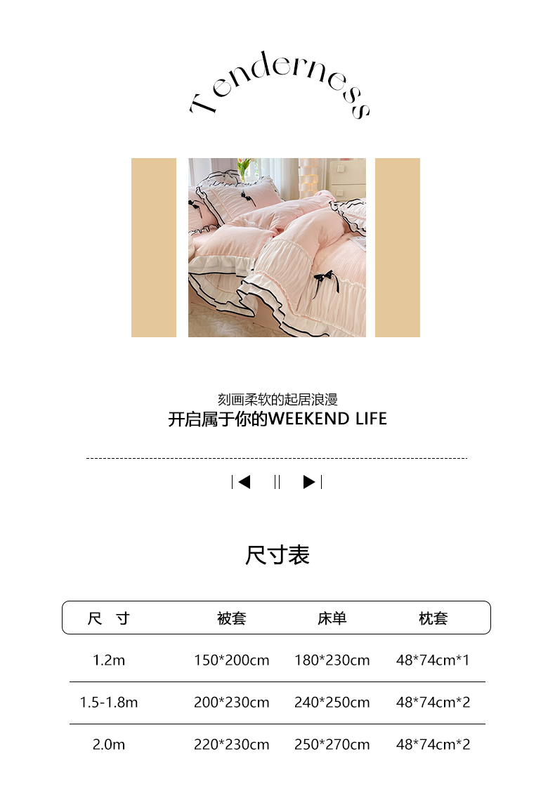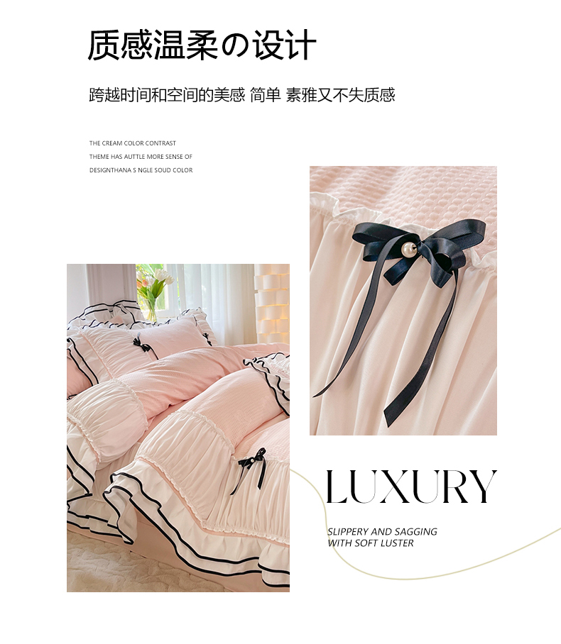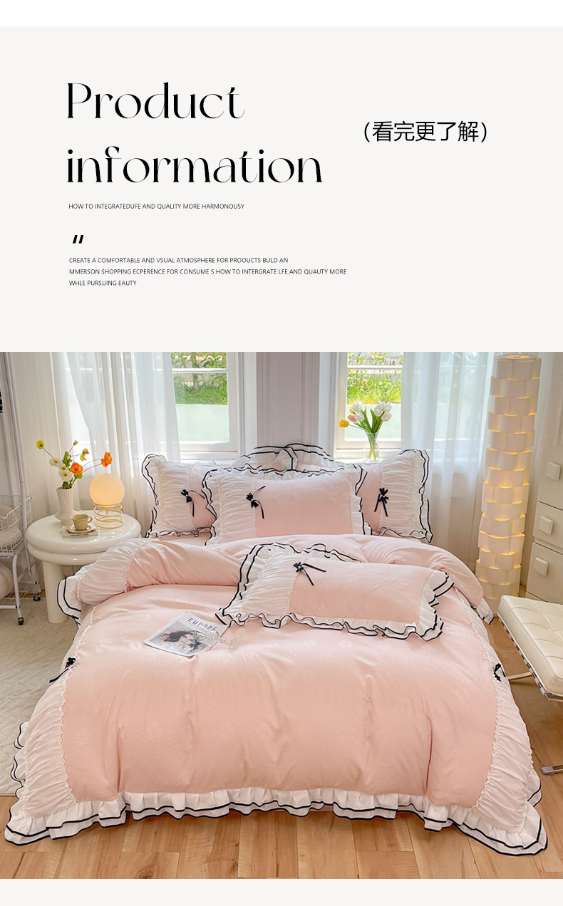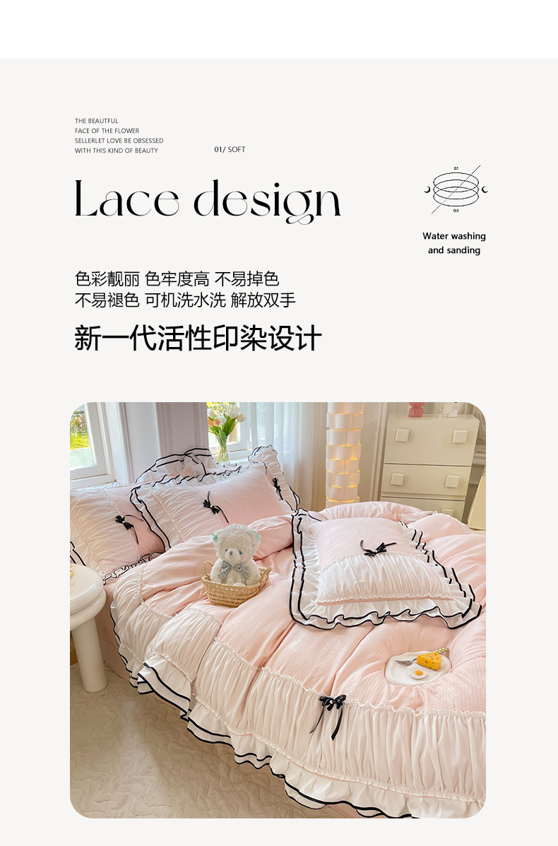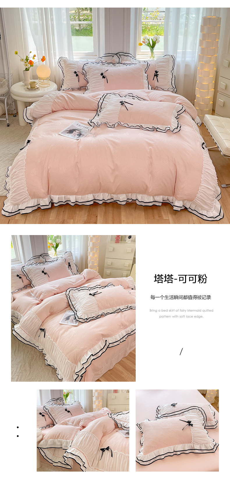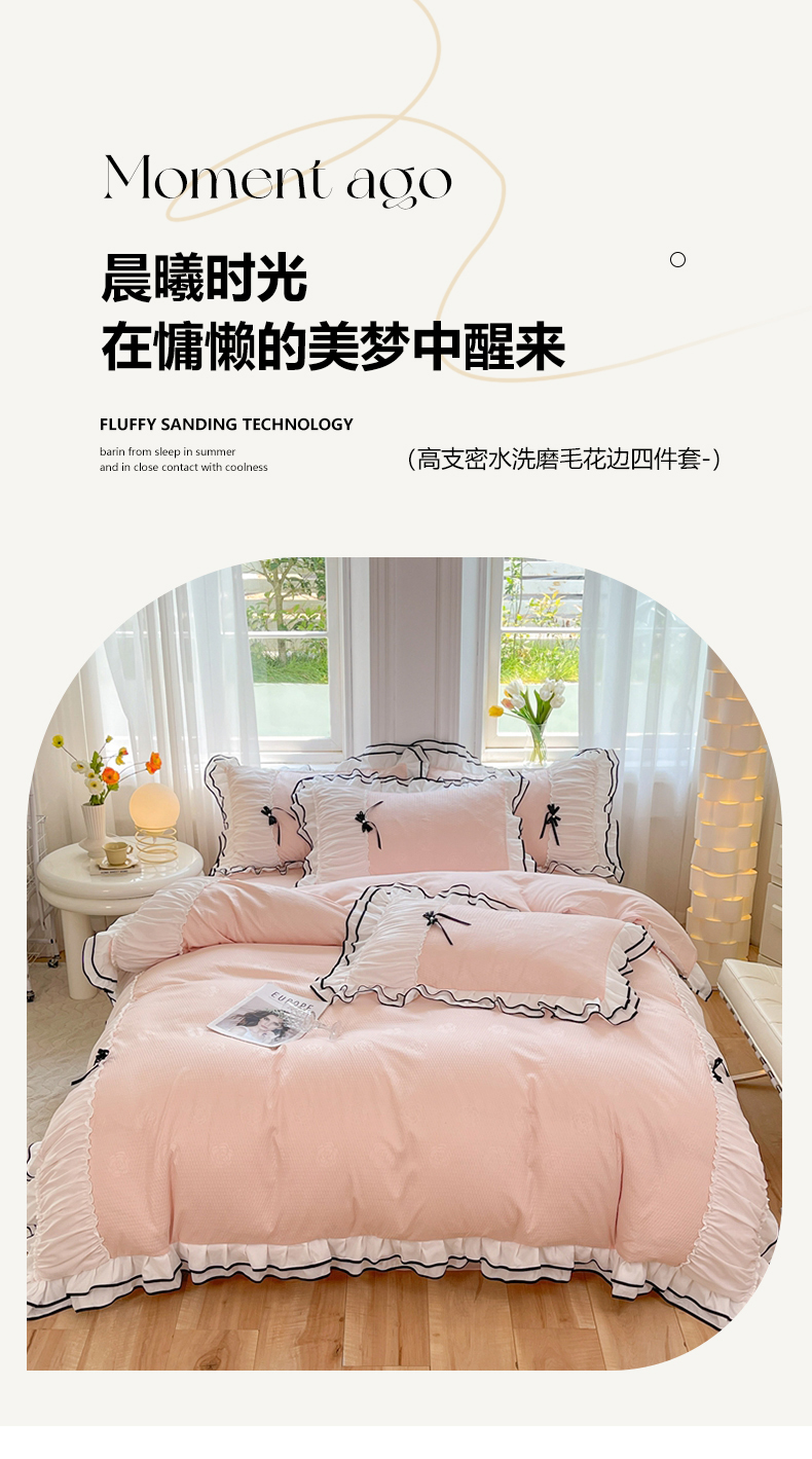商品名称:逸尚阁 2023新款高支密水洗磨毛花边四件套-塔塔 塔塔-可可粉