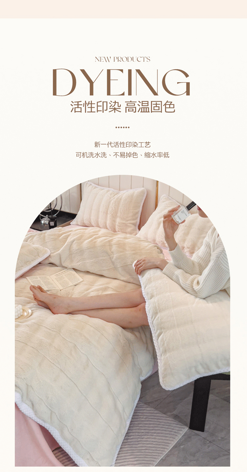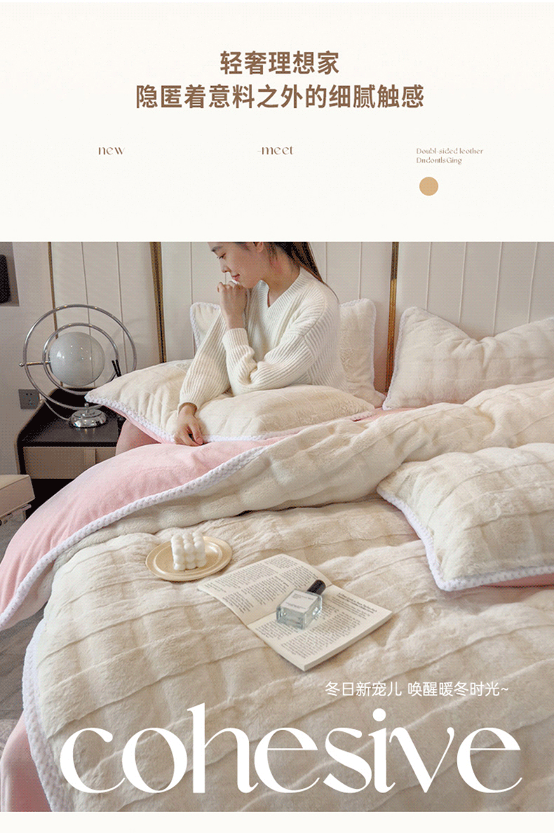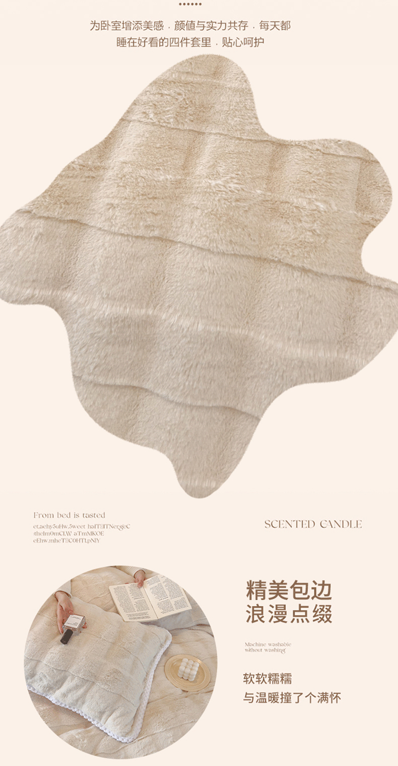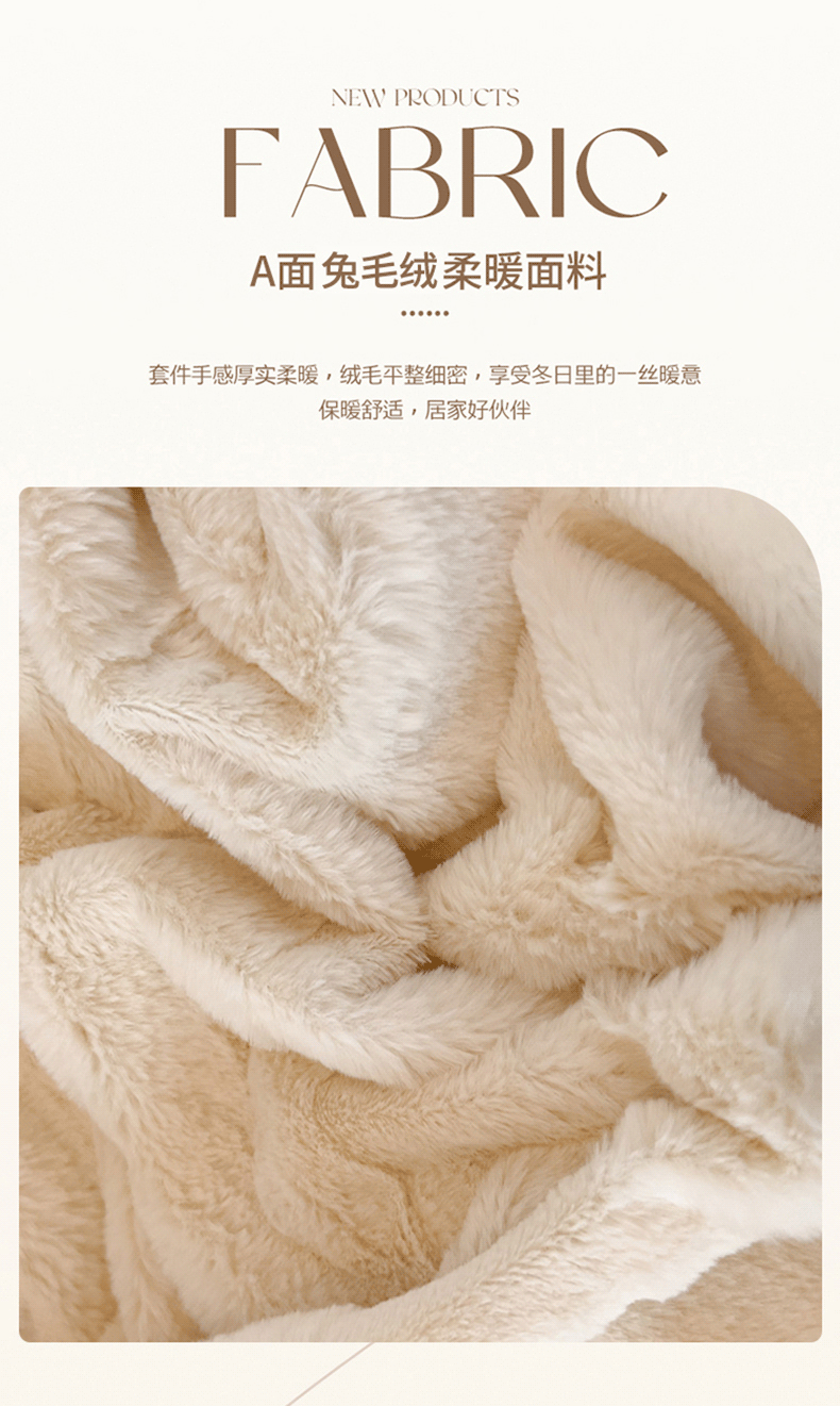 菲儿家纺 2023新款大兔毛绒立体剪花四件套 大兔毛-条纹白