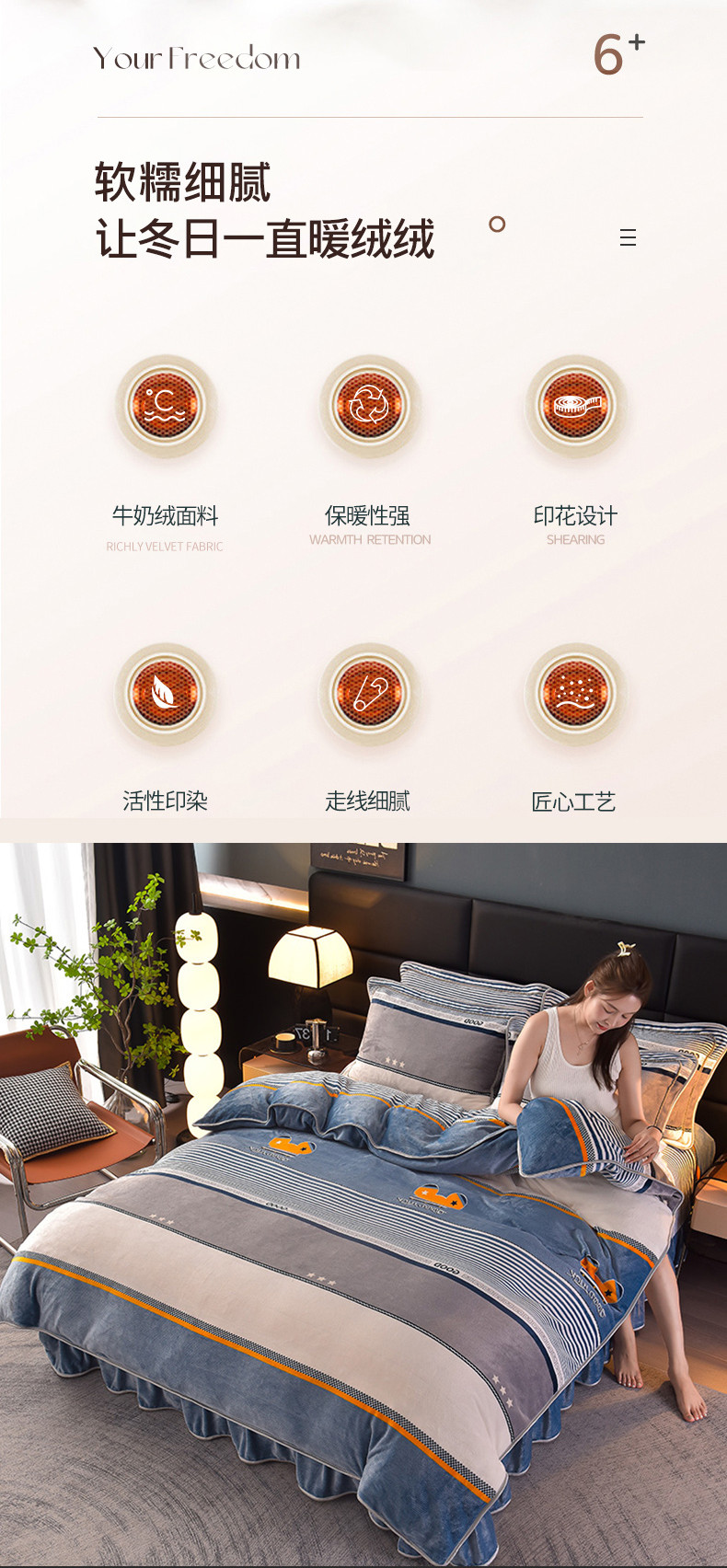 芯诗曼2025新款8.5斤直播热款高克重牛奶绒法莱绒水晶金貂法莱绒四件套 叶语,叶语