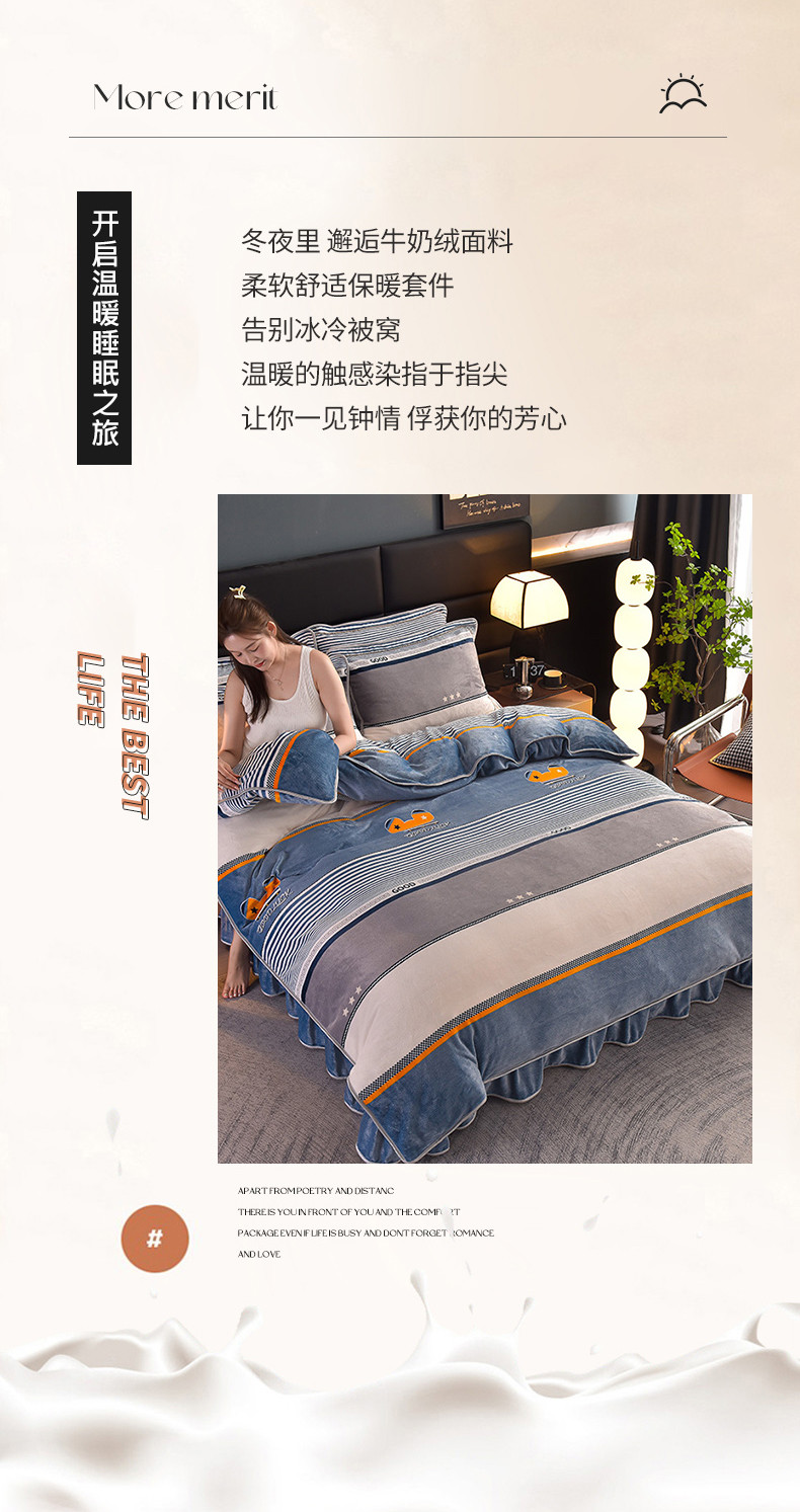 芯诗曼2025新款8.5斤直播热款高克重牛奶绒法莱绒水晶金貂法莱绒四件套花样情怀,花样情怀