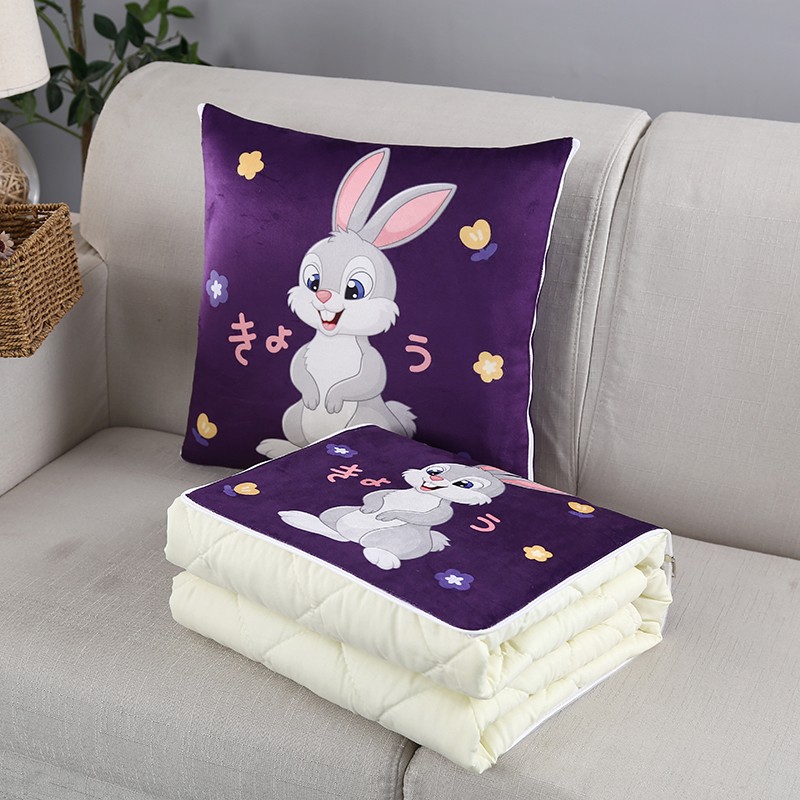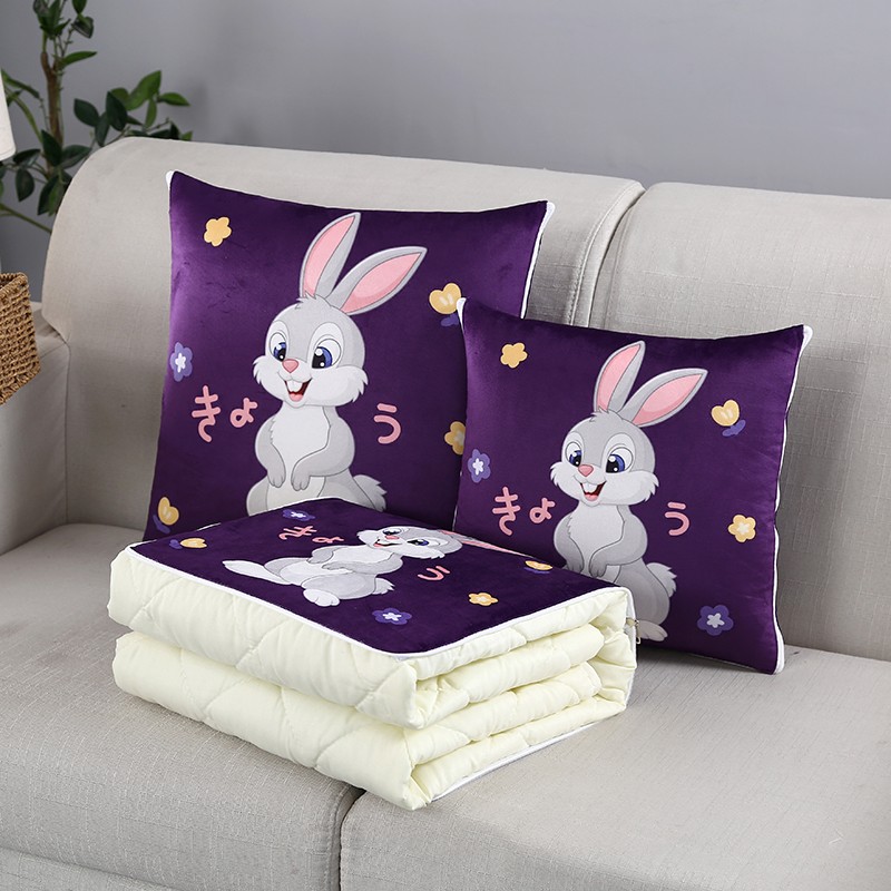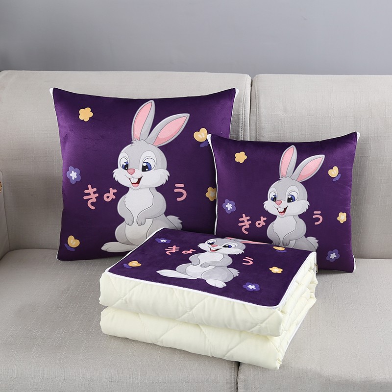 商品名称:伊可爱抱枕被 2023新款水晶超柔磨毛四季多针抱枕被 哈哈兔