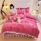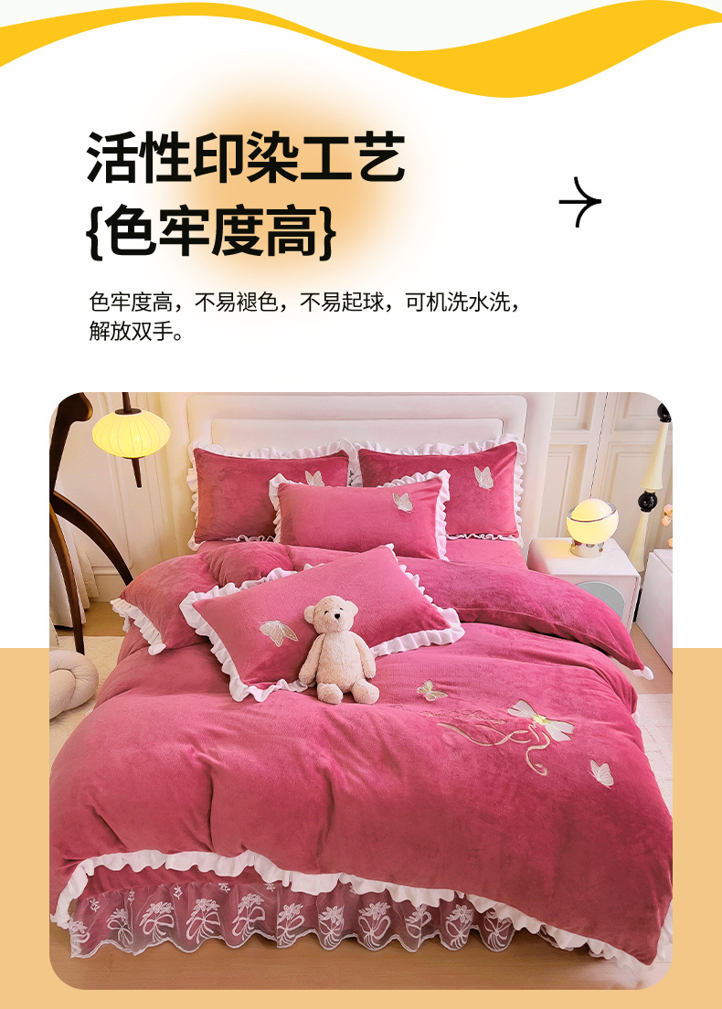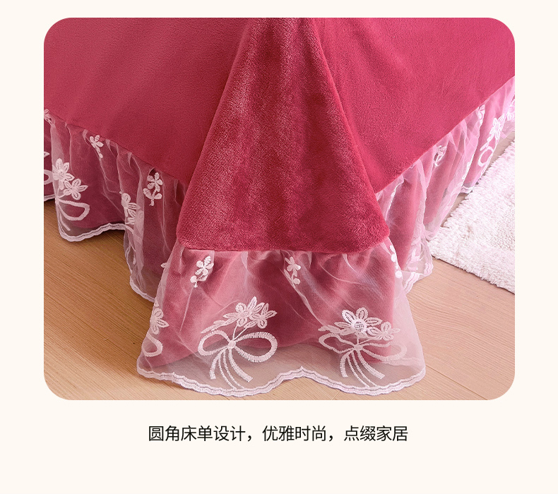 (总)找底底家纺 2022新款水晶绒蕾丝花边韩版四件套,大红,黛蓝,豆沙色,姜黄,墨绿,浅灰,玉女粉