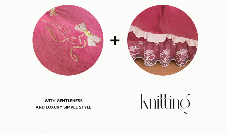 找底底 2023新款牛奶绒花边床裙刺绣四件套 草莓粉