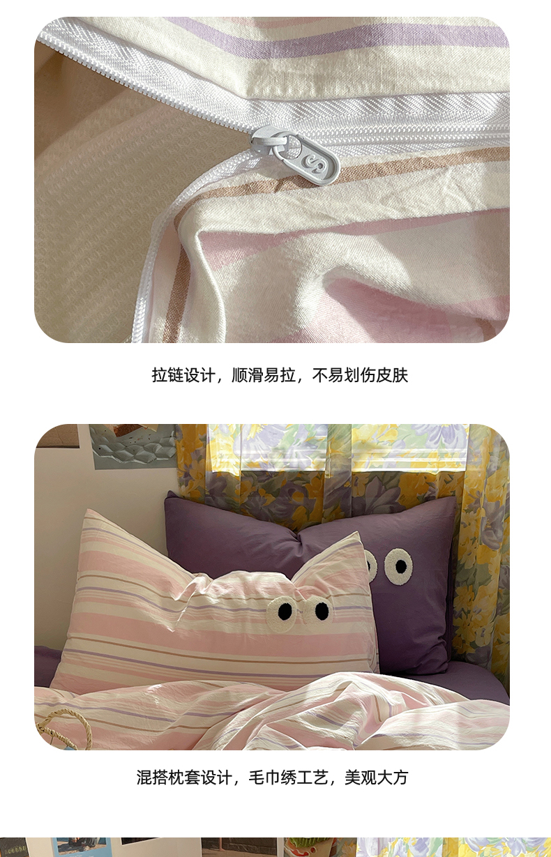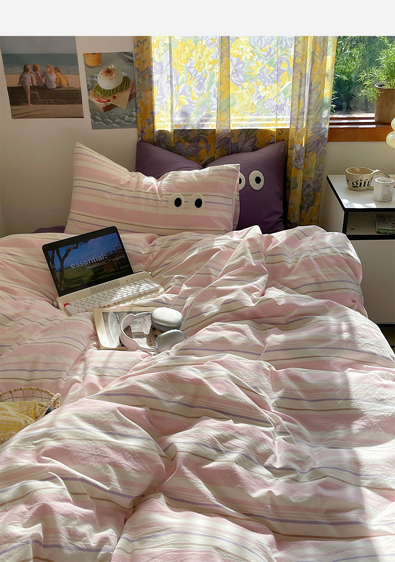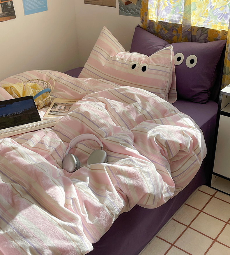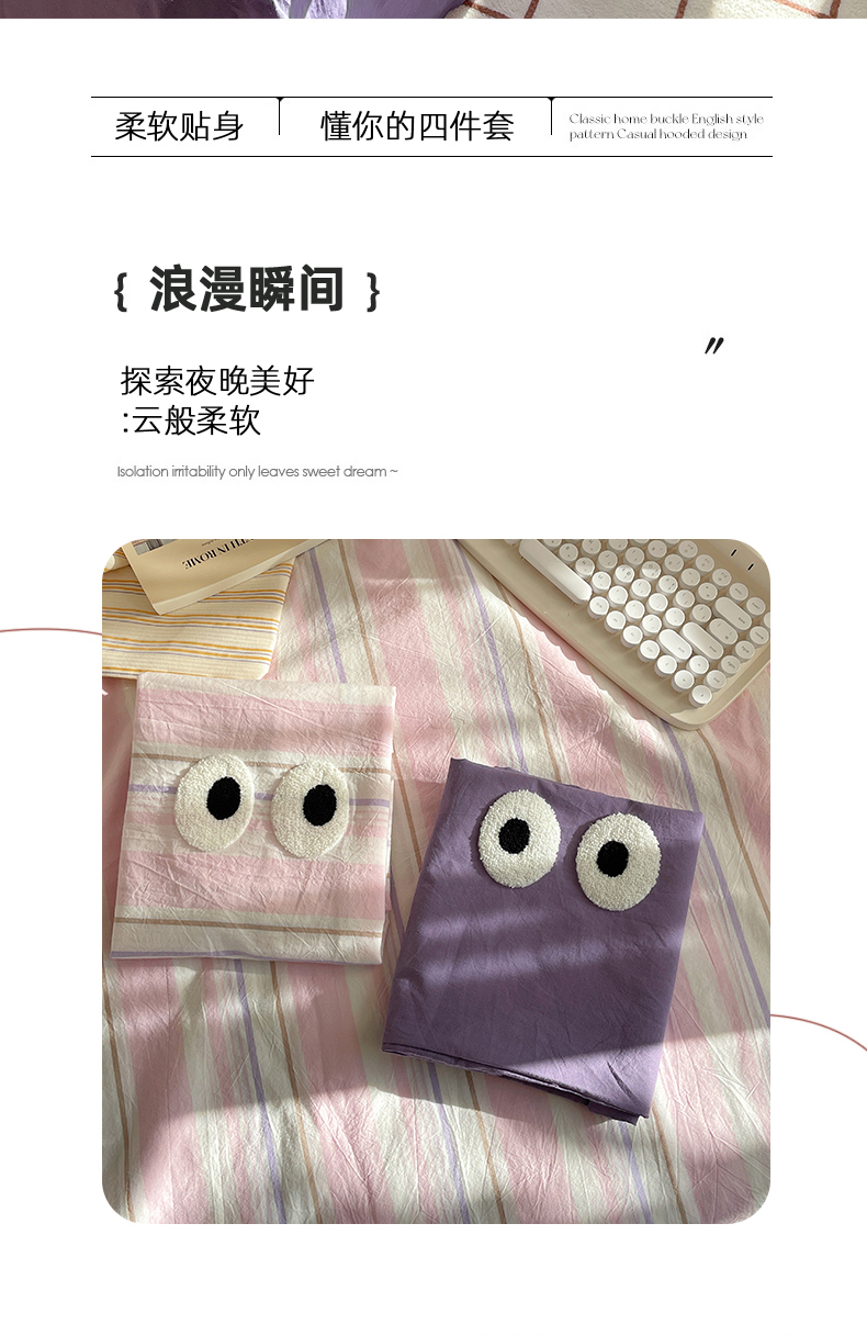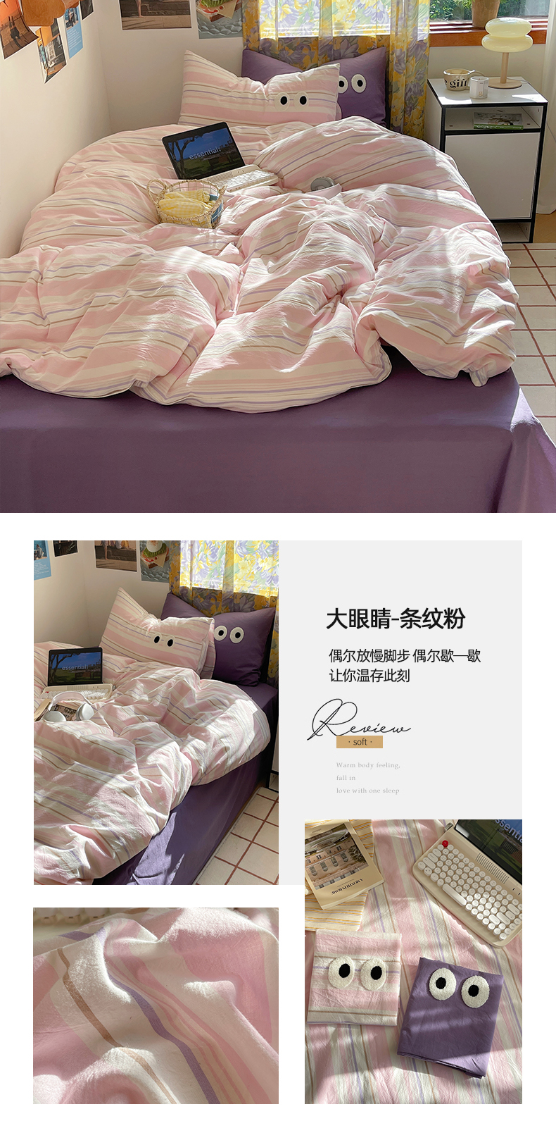 当前位置: 91家纺网 > 商品网购 > 床品套件 > 四件套 > 全棉普通四件套 > 蜜宿 2025秋冬新款大眼睛条纹全棉色织水洗棉四件套 大眼睛条纹粉