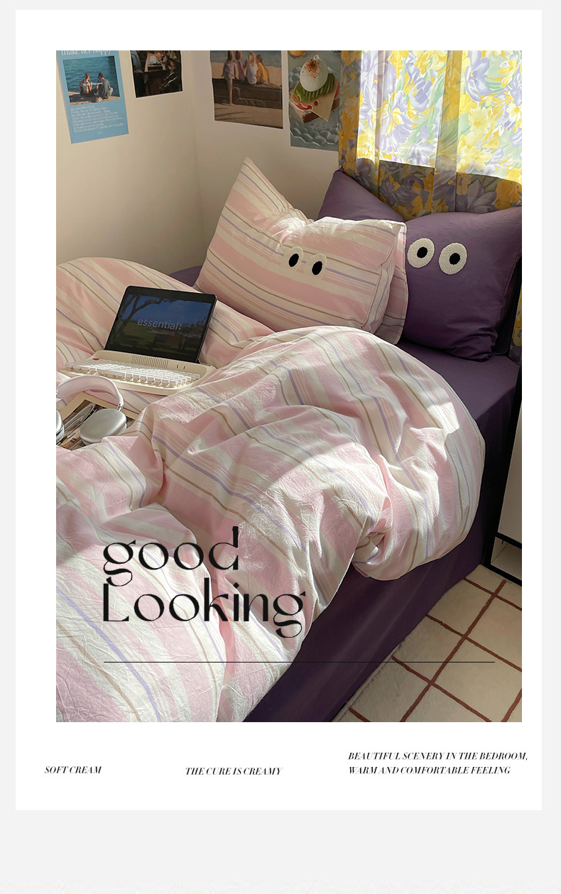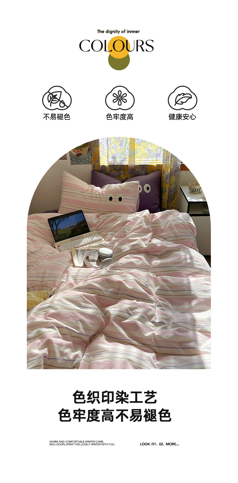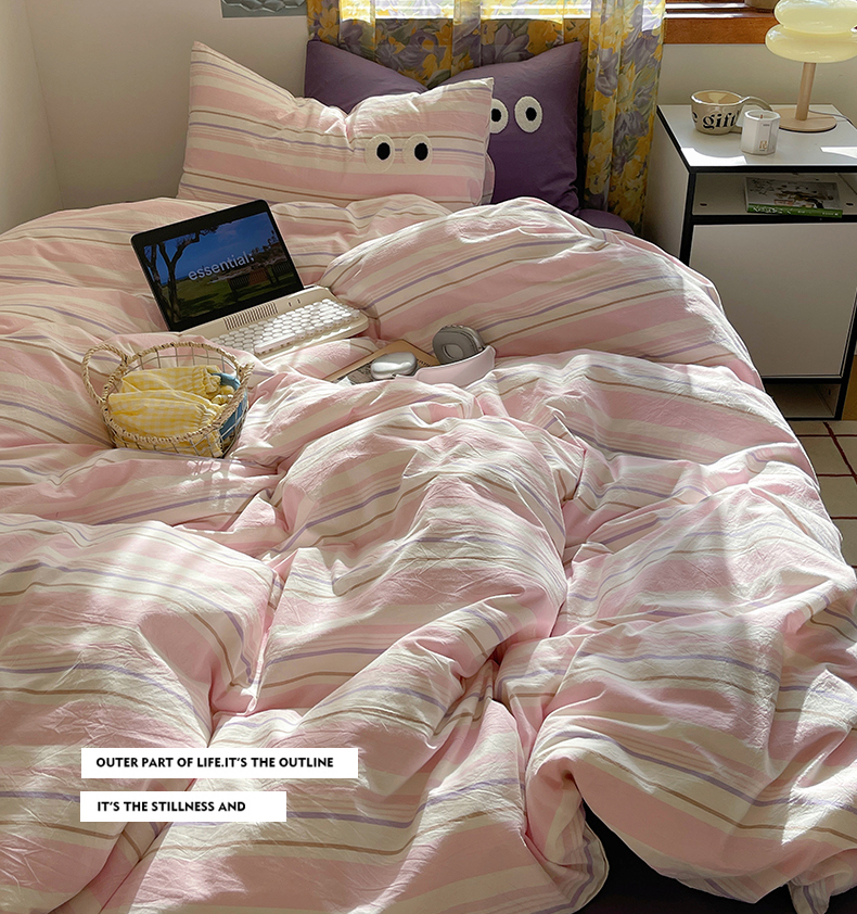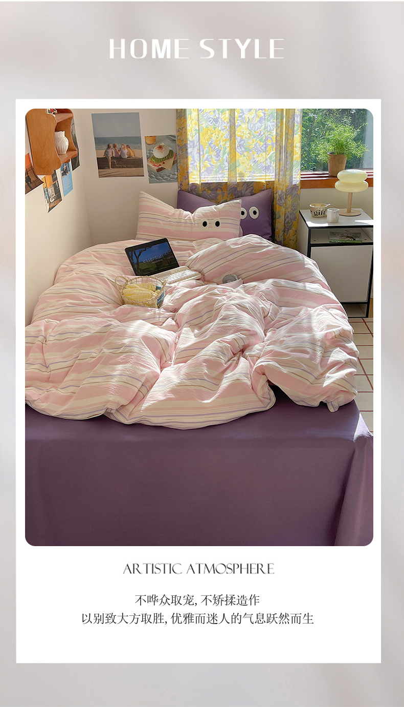 当前位置: 91家纺网 > 商品网购 > 床品套件 > 四件套 > 全棉普通四件套 > 蜜宿 2025秋冬新款大眼睛条纹全棉色织水洗棉四件套 大眼睛条纹粉