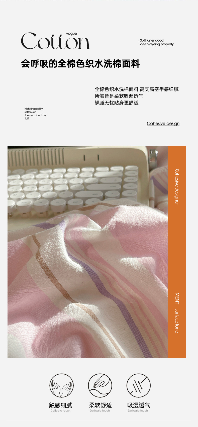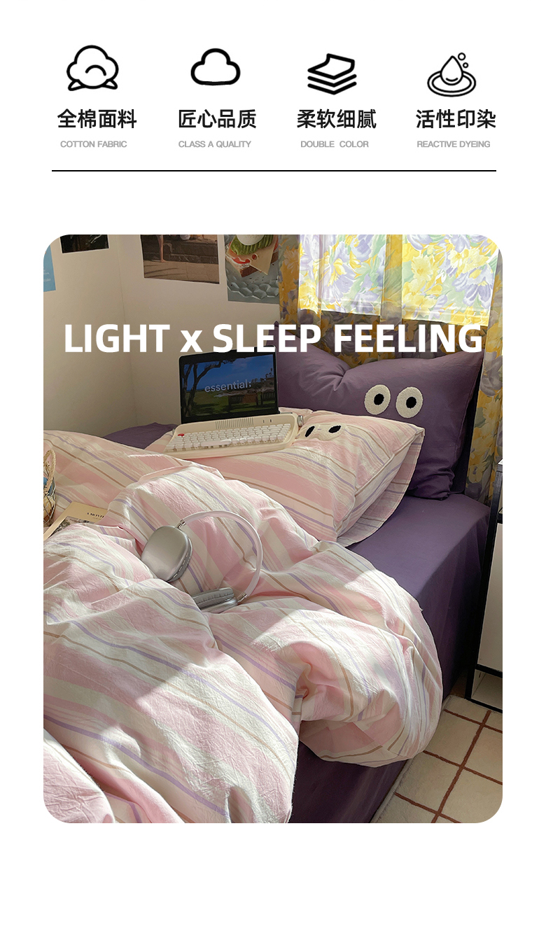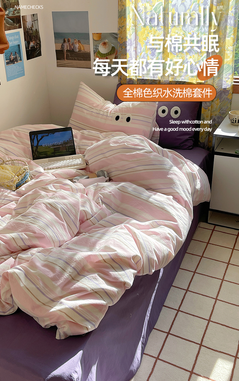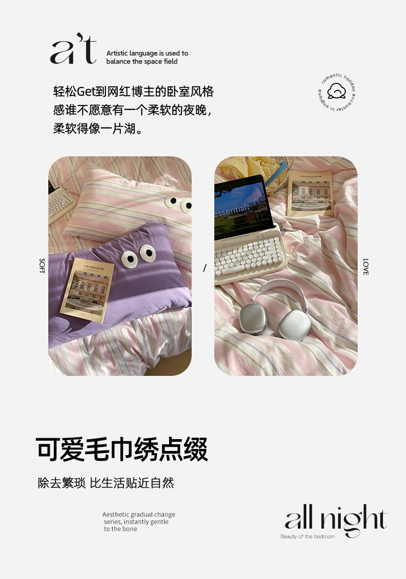 当前位置: 91家纺网 > 商品网购 > 床品套件 > 四件套 > 全棉普通四件套 > 蜜宿 2025秋冬新款大眼睛条纹全棉色织水洗棉四件套 大眼睛条纹粉