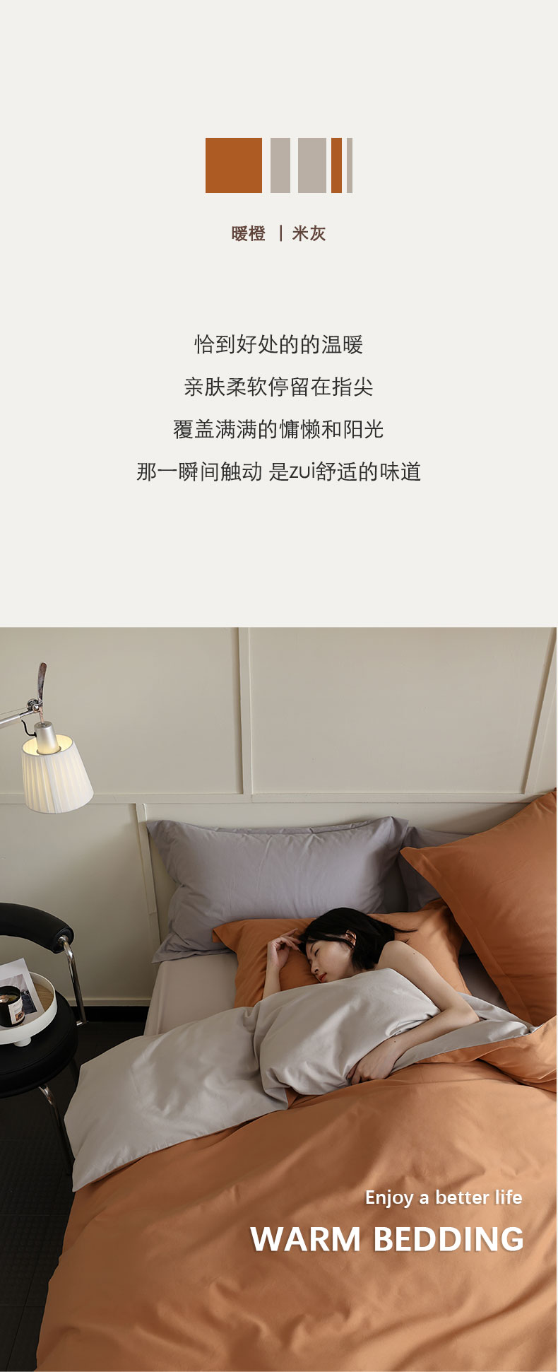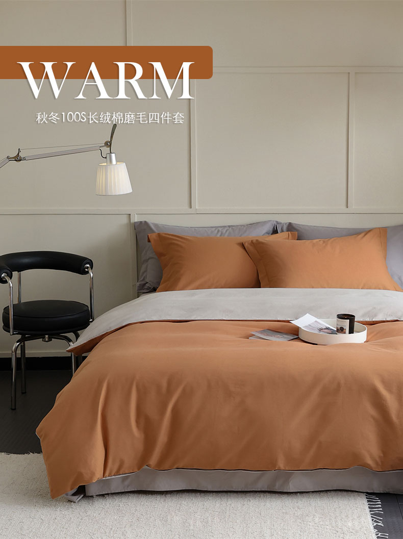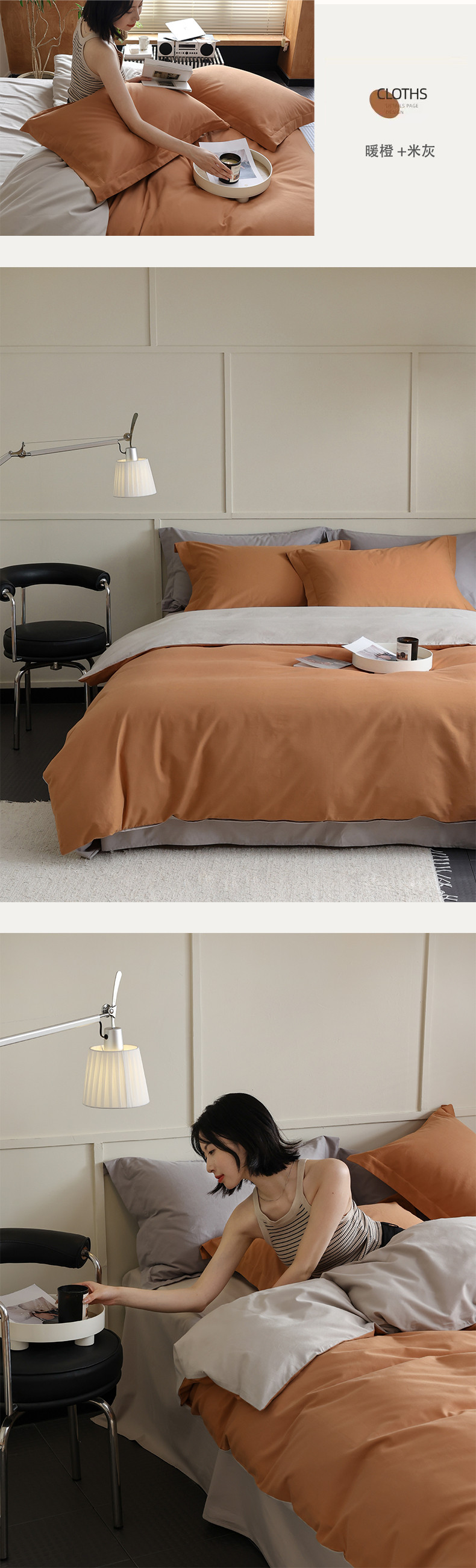 当前位置: 91家纺网 > 商品网购 > 床品套件 > 四件套 > 全棉活性四件套 > 2023新款A类加厚50s超柔全棉长绒棉磨毛四件套 暖橙+米灰