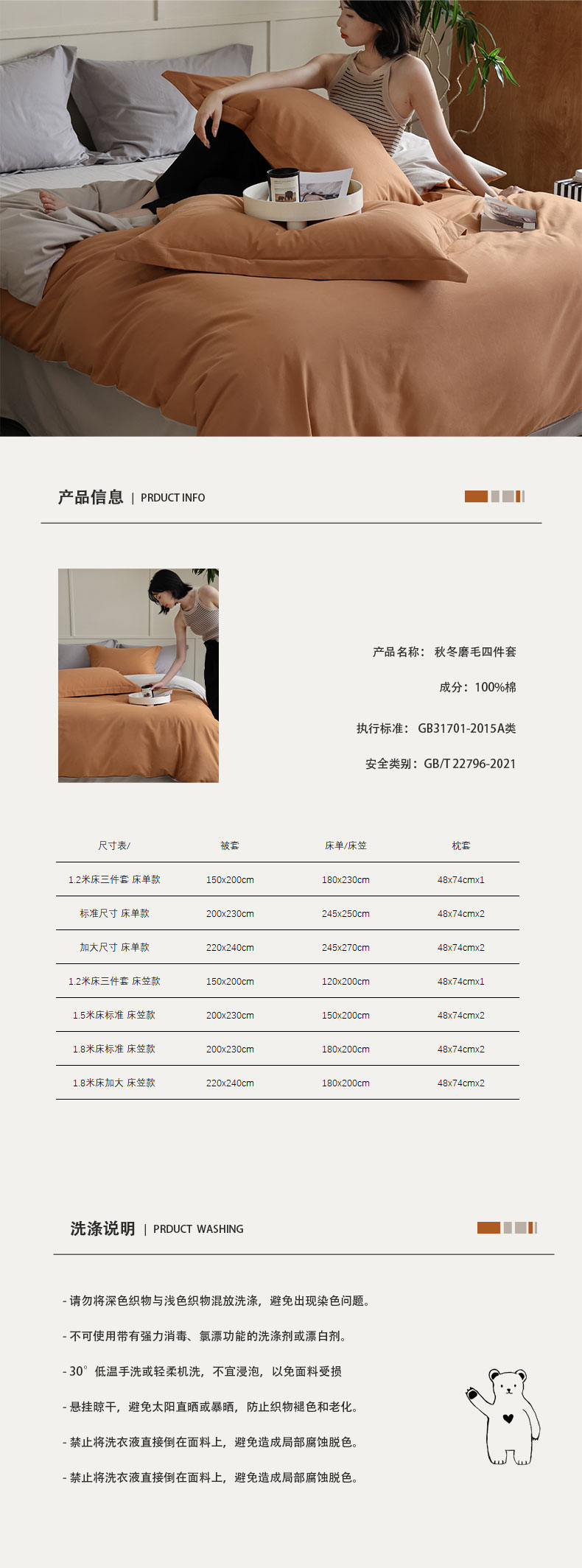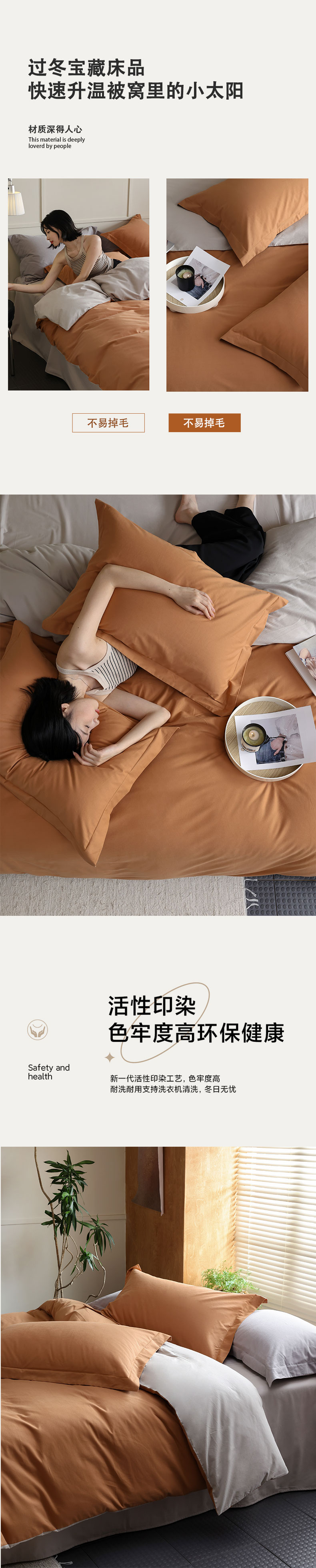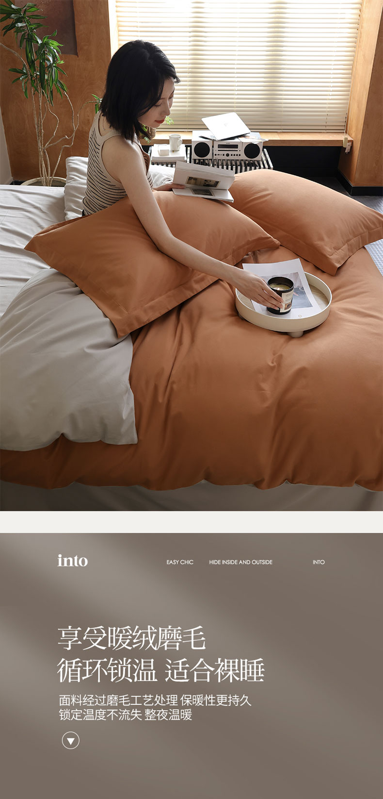 当前位置: 91家纺网 > 商品网购 > 床品套件 > 四件套 > 全棉活性四件套 > 2023新款A类加厚50s超柔全棉长绒棉磨毛四件套 暖橙+米灰