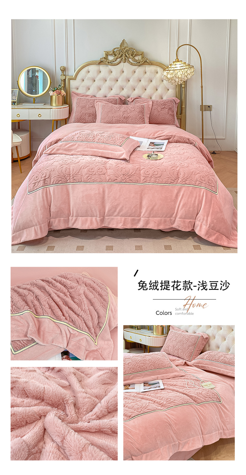 首尔家纺 2023新款兔兔绒雕花四件套 兔绒提花款-浅豆沙