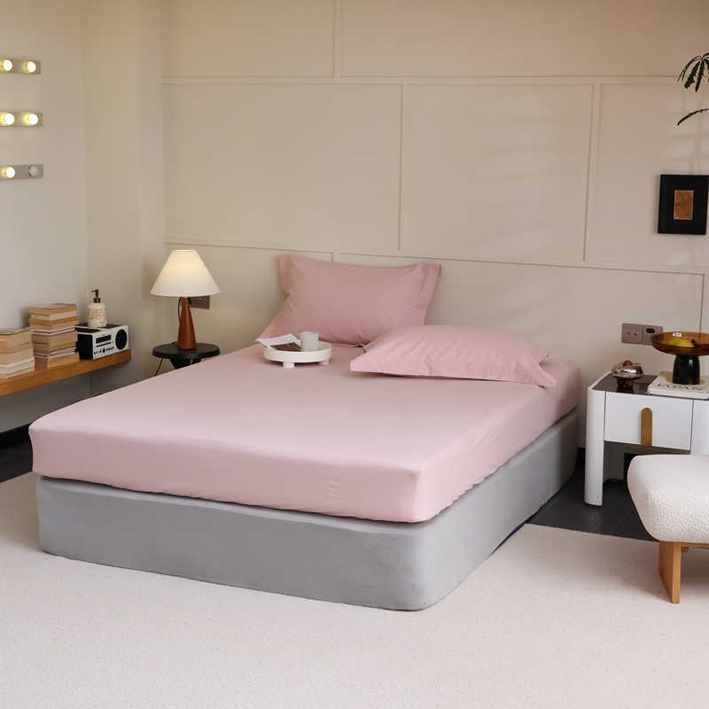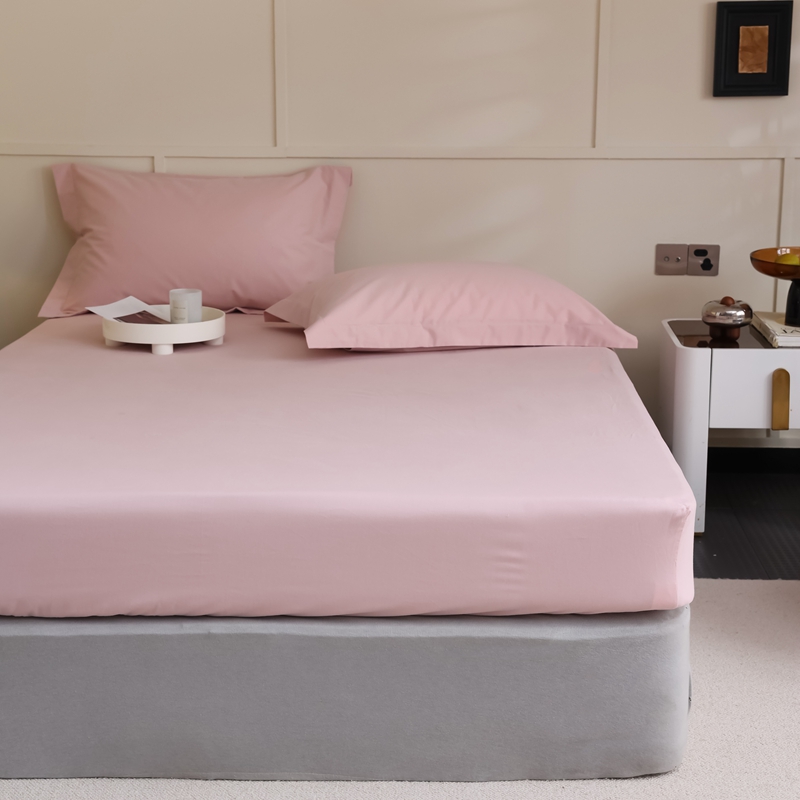 蕊姿家居 2023新款A类加厚50s超柔全棉长绒棉磨毛床笠 浅粉