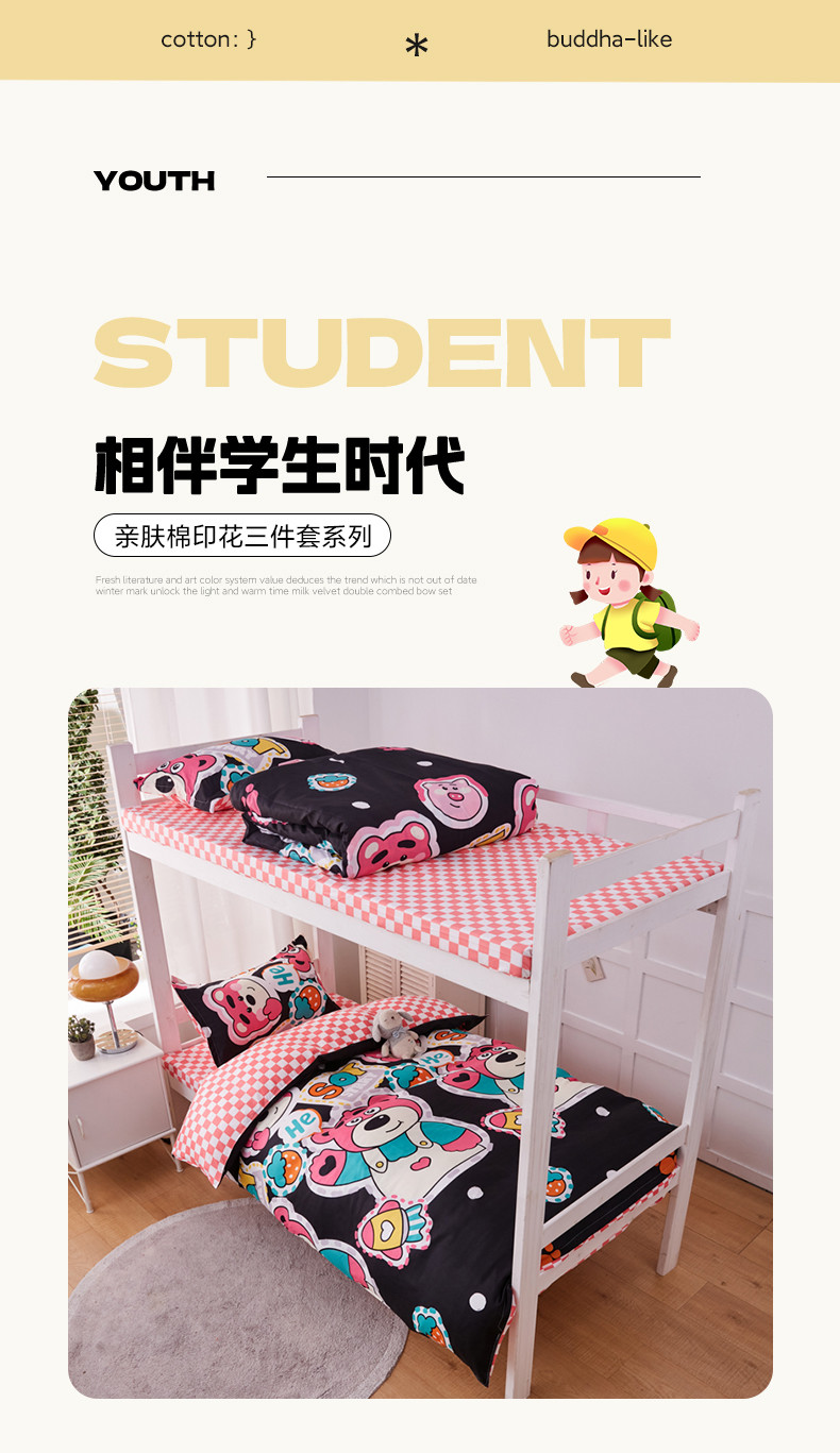 (总)乐居坊 2024新款亲肤棉美棉芦荟棉四件套学生宿舍床(5月),霸王茶姬,有爱,调皮小新,嘟嘟恐龙,怪盗KID,萌萌牛,梦格,梦想猫,奶油熊,偶像派,趣味小熊,荣耀,荣耀之星,天之蕉子,嘻哈