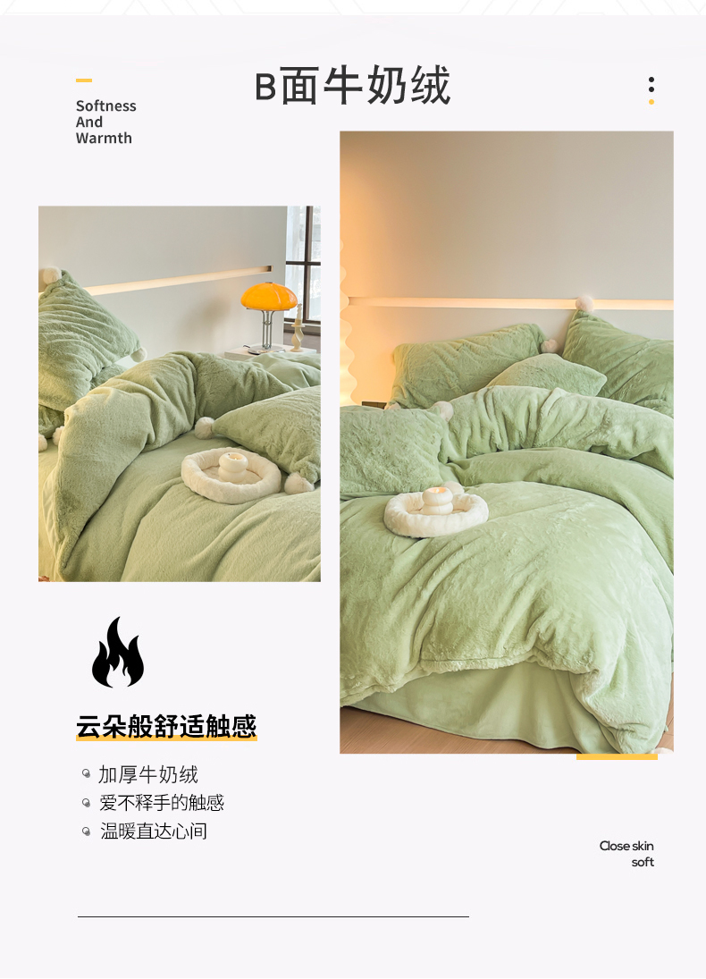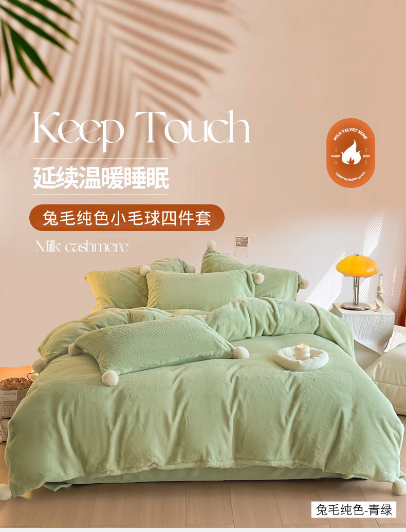 当前位置: 91家纺网 > 商品网购 > 床品套件 > 四件套 > 牛奶绒四件套 > 金爱家 23新品全消光牛奶绒A类纯色立体獭兔毛绒四件套 兔毛纯色-青绿