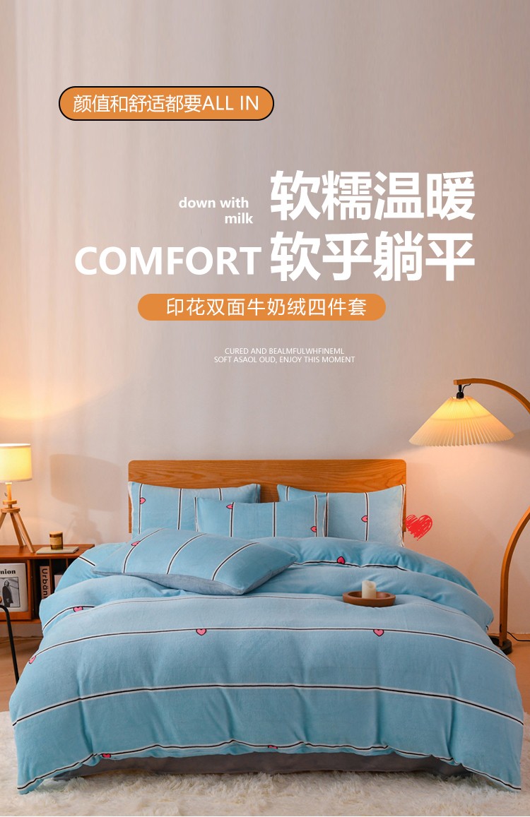 商品名称:(总)2023新款无印风印花双面牛奶绒四件套