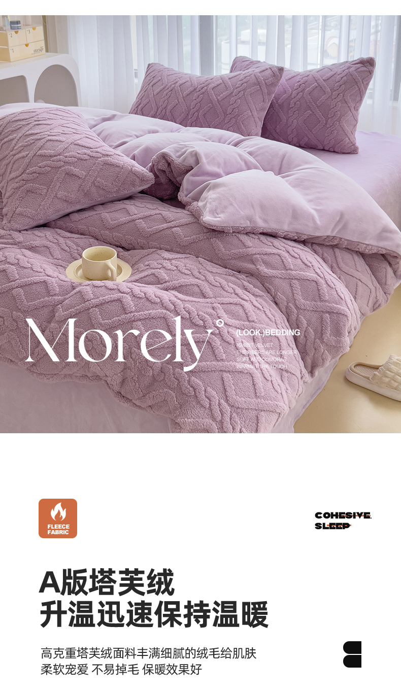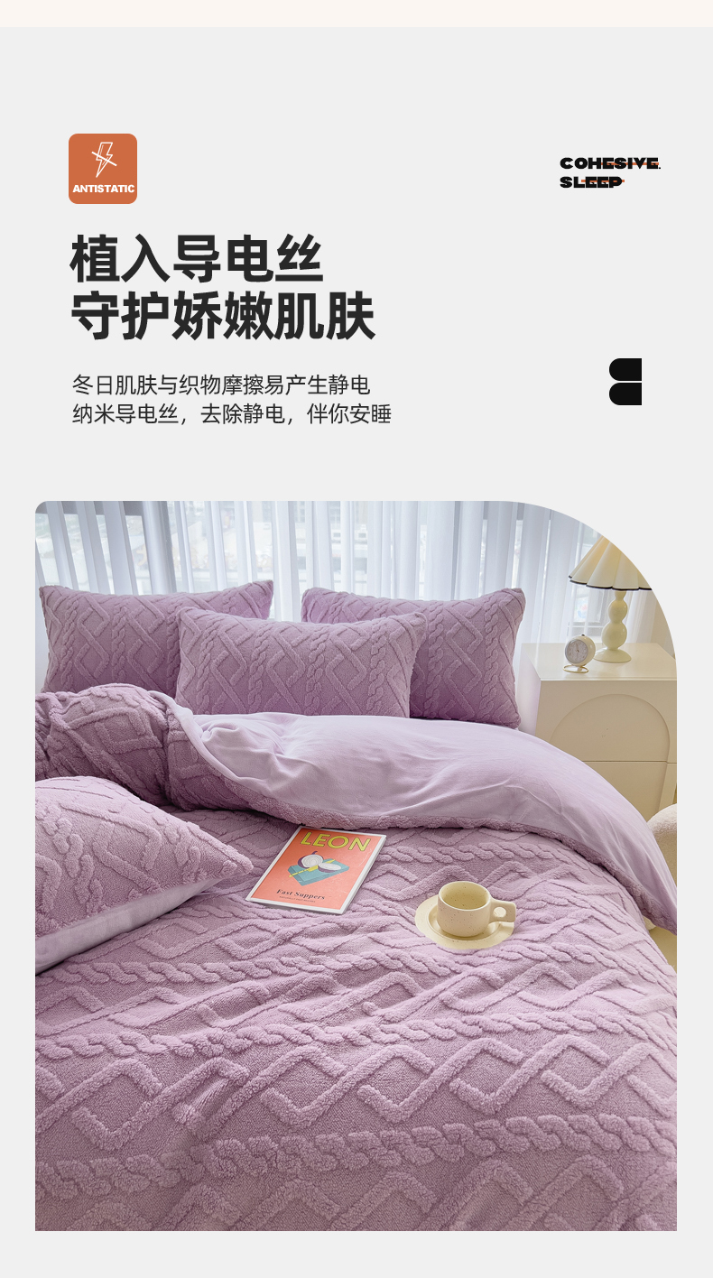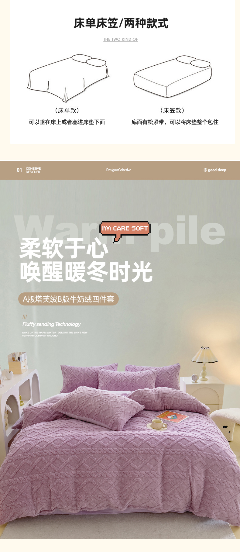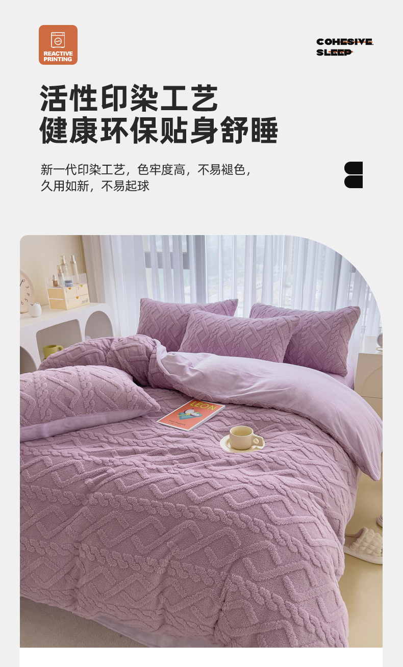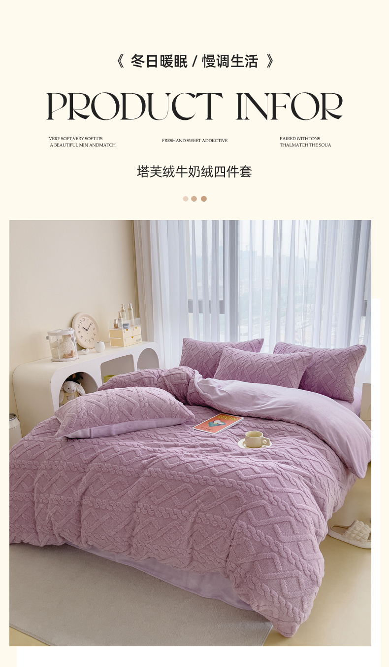 商品名称:丝印良品 2023秋冬新款加厚塔芙绒简约款牛奶绒四件套 紫色