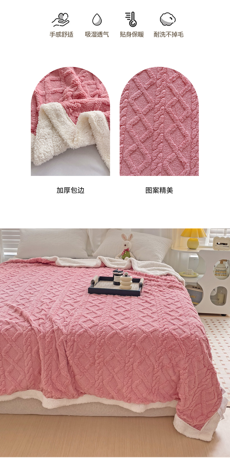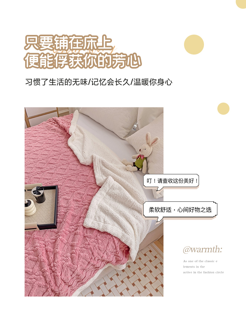 当前位置: 91家纺网 > 商品网购 > 毛毯休闲毯绒毯 > 毛毯 > 艾咪 新款230克加厚塔芙绒双层毯子羊羔绒毛毯 玫瑰粉