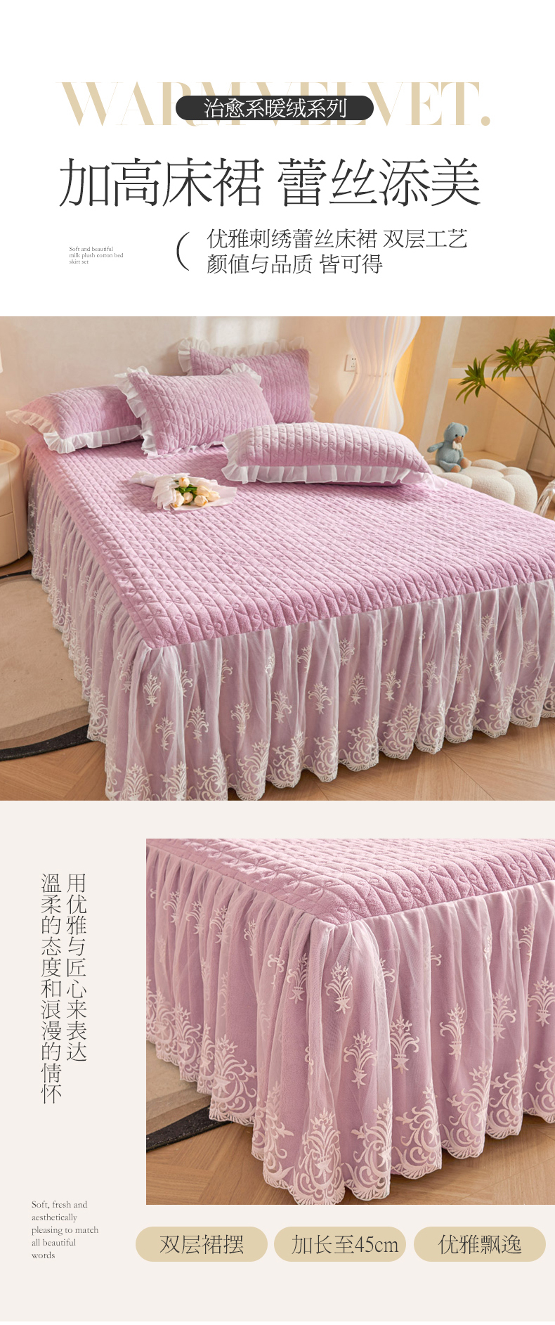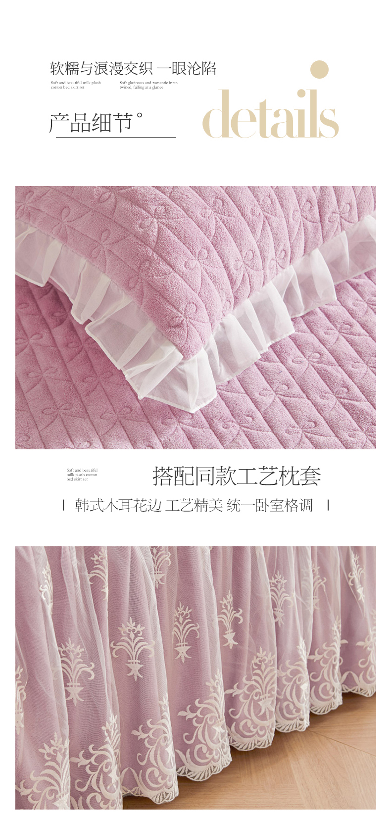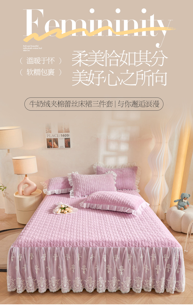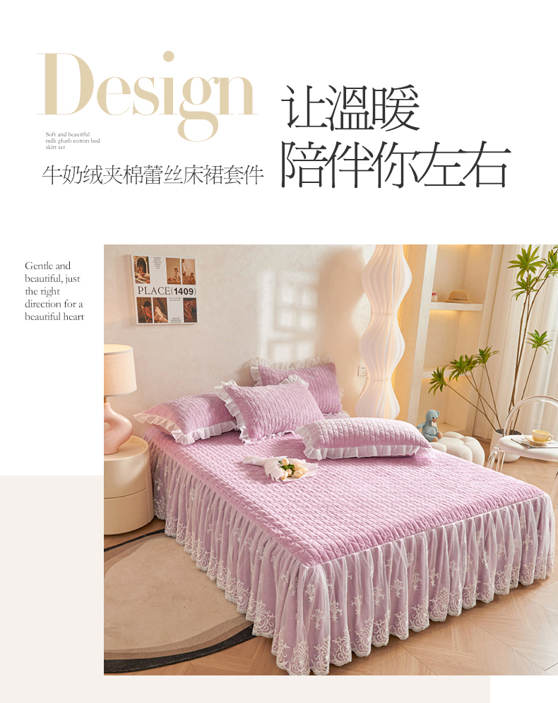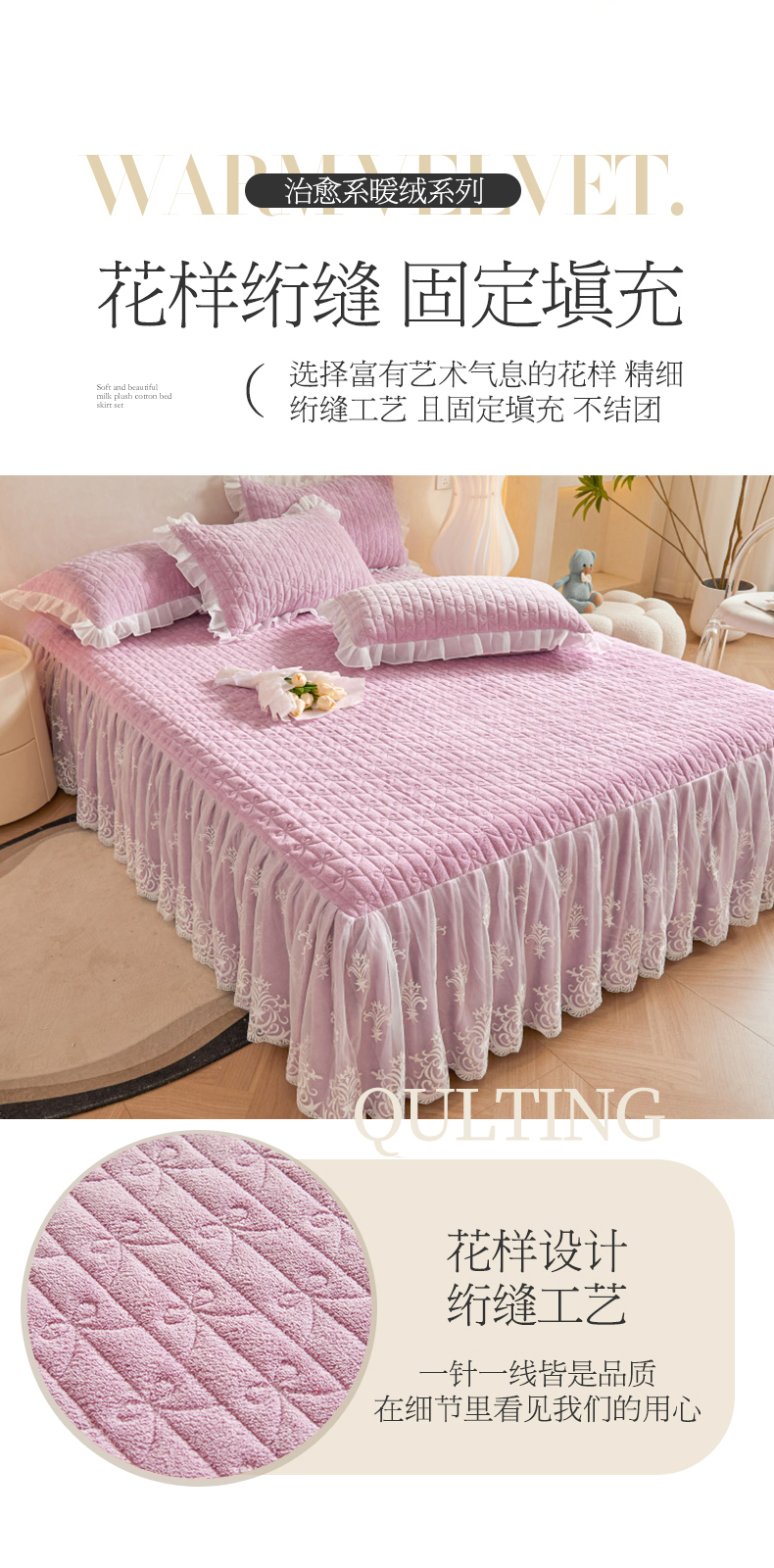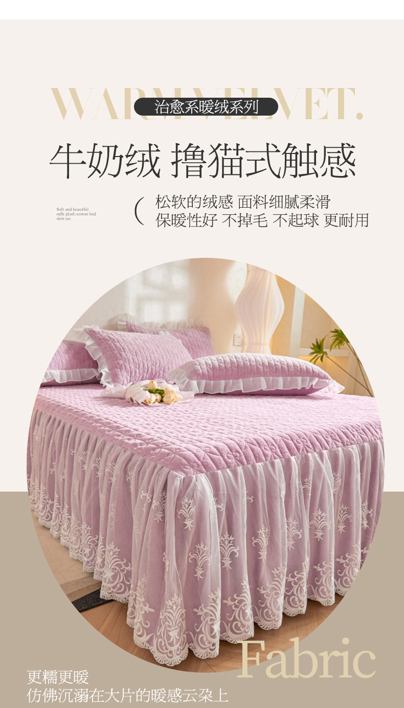 虹星家纺 2023新款牛奶绒夹棉床裙套件清新系列-床裙款单床裙 清新-浪漫紫