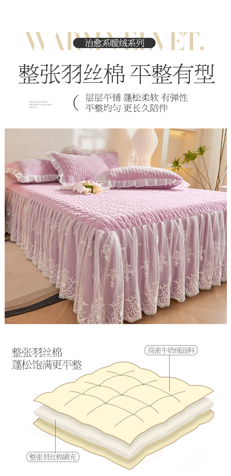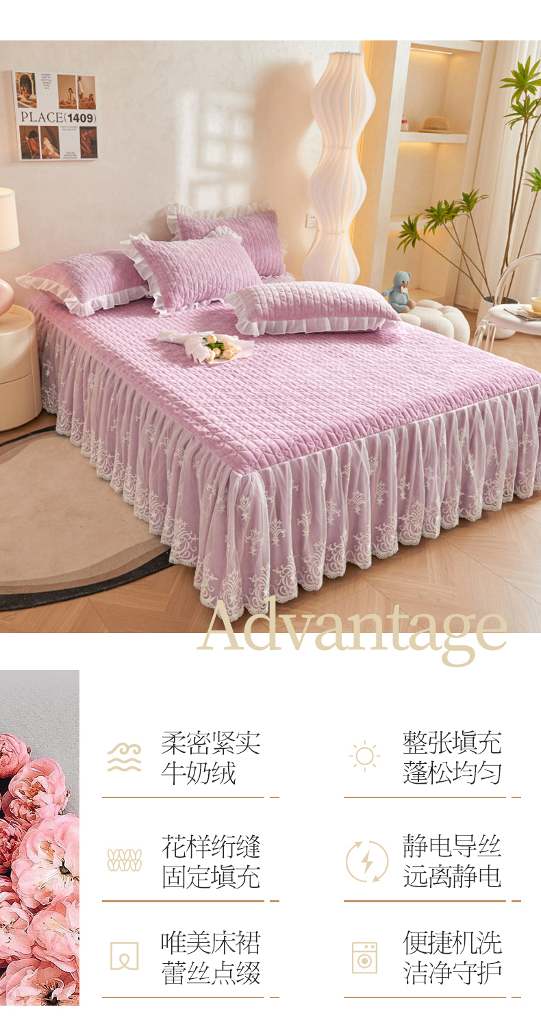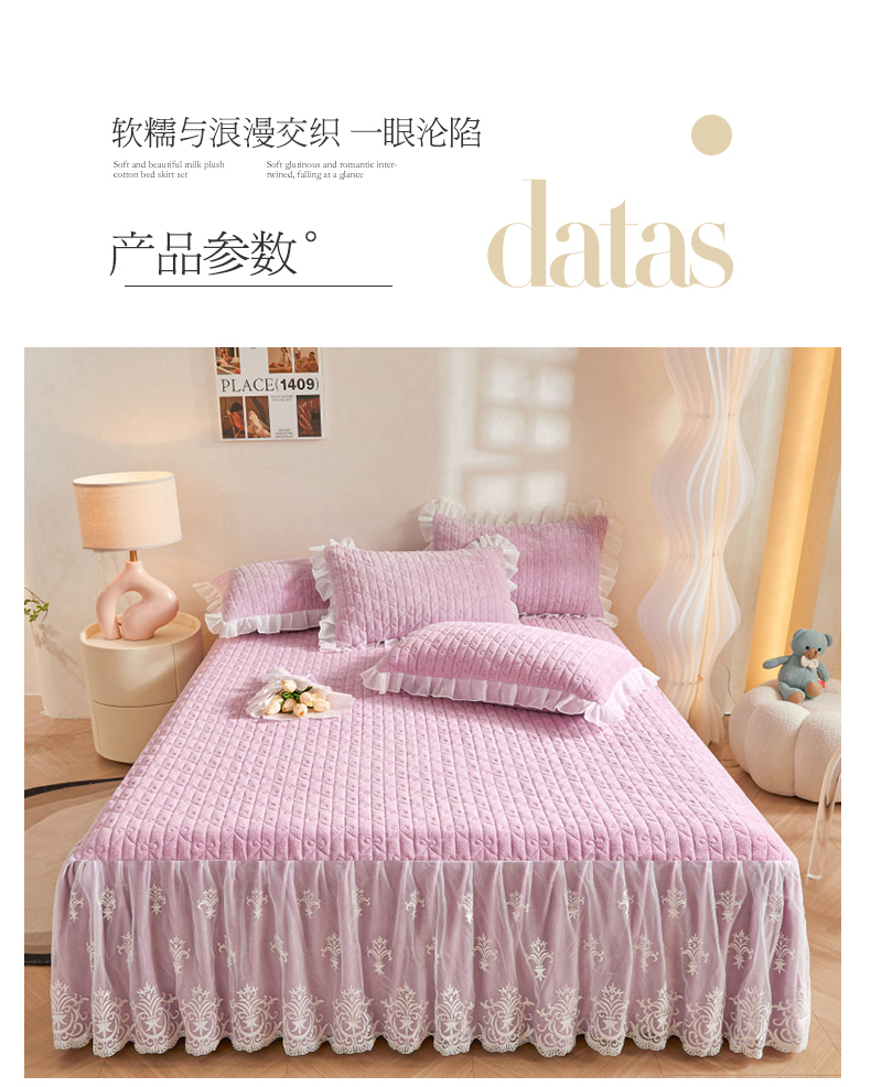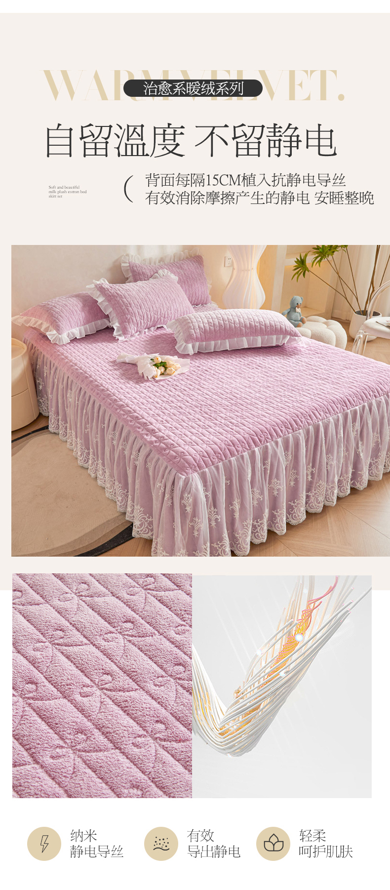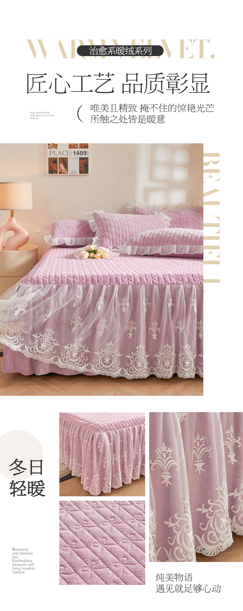 虹星家纺 2023新款牛奶绒夹棉床裙套件清新系列-床裙款单床裙 清新-浪漫紫