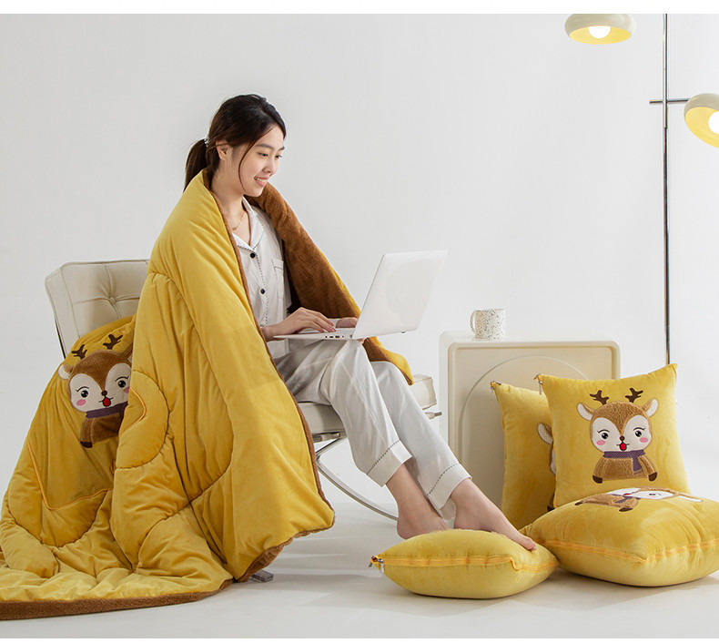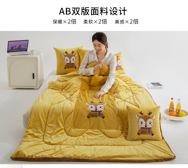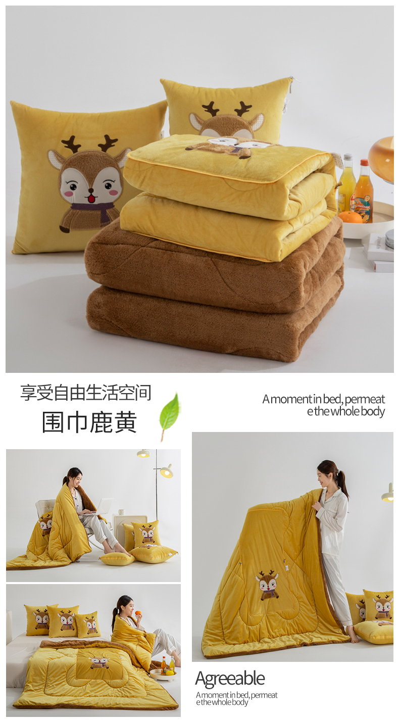 商品名称:雷娜 2023新款加厚泰迪绒可爱幸福鹿抱枕被 围巾鹿黄
