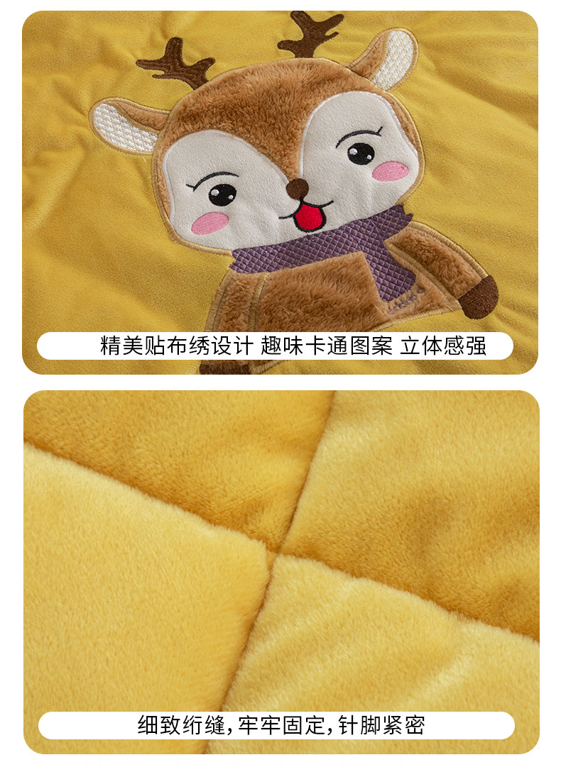 雷娜 2023新款加厚泰迪绒可爱幸福鹿抱枕被 围巾鹿黄