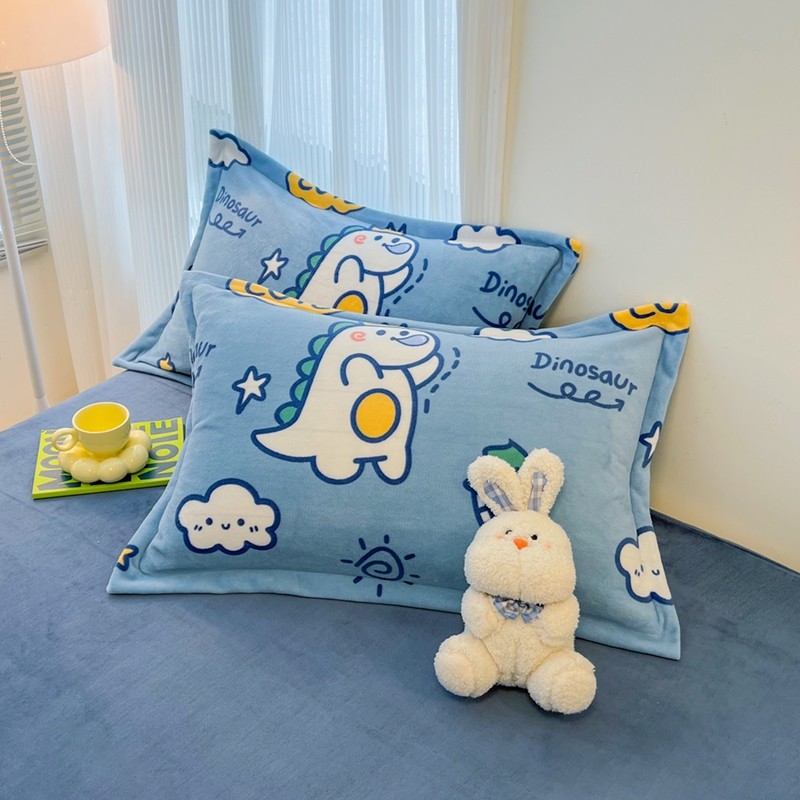 寐居家纺 2023新款小清新牛奶绒印花枕套 恐龙宝贝