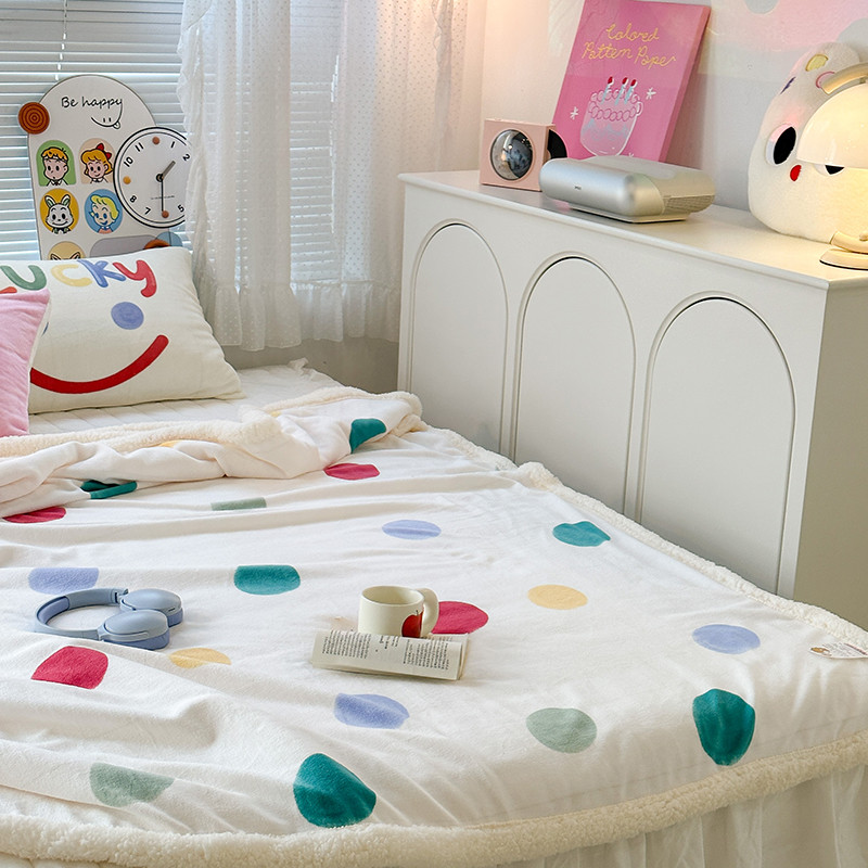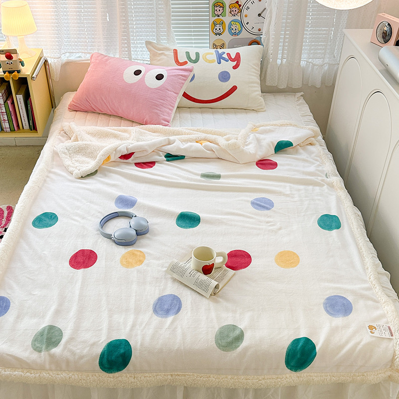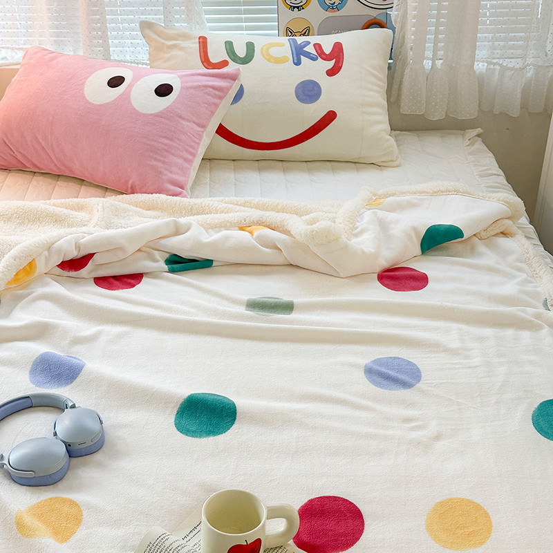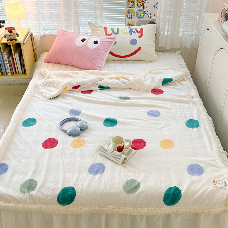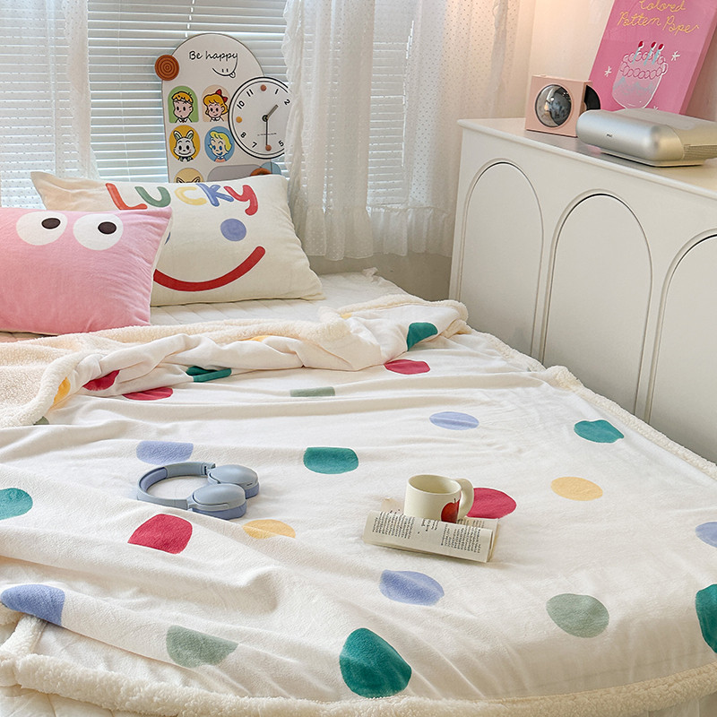 昔可家纺 2023新款ins风牛奶绒羊羔绒印花毛毯(风格一)彩色波点
