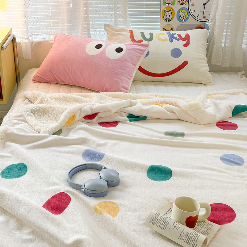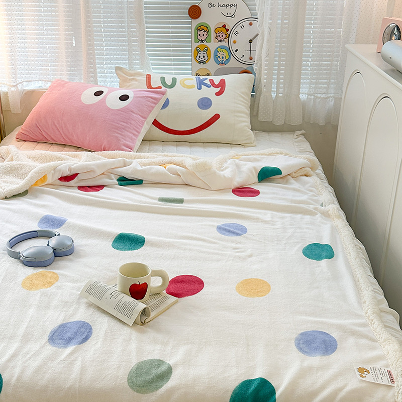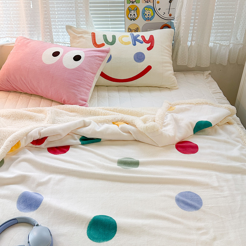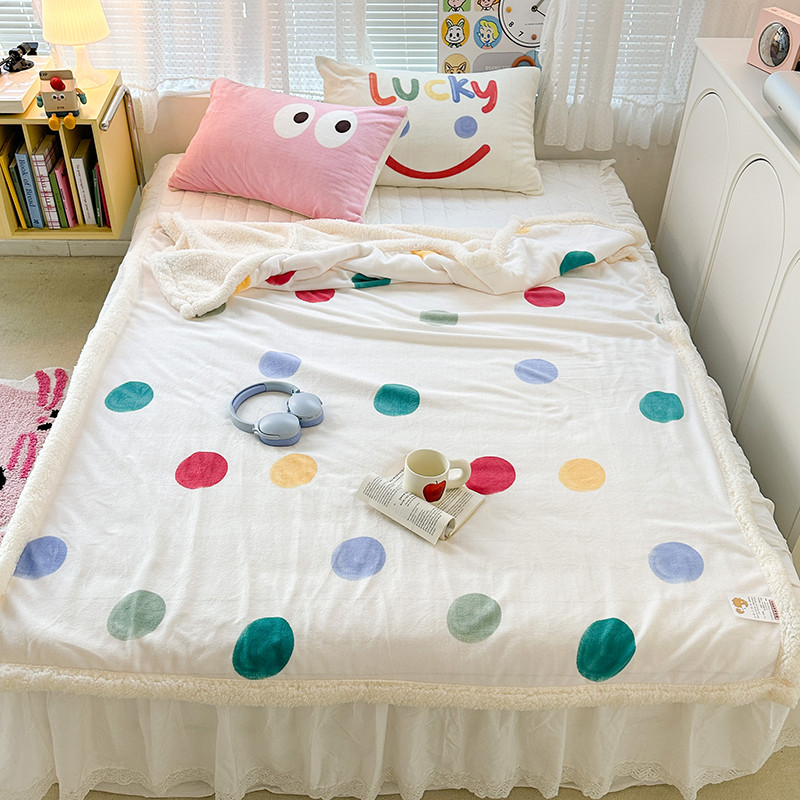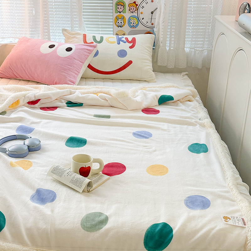 昔可家纺 2023新款ins风牛奶绒羊羔绒印花毛毯(风格一)彩色波点