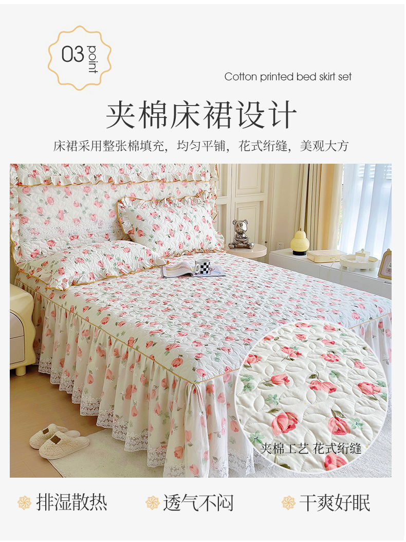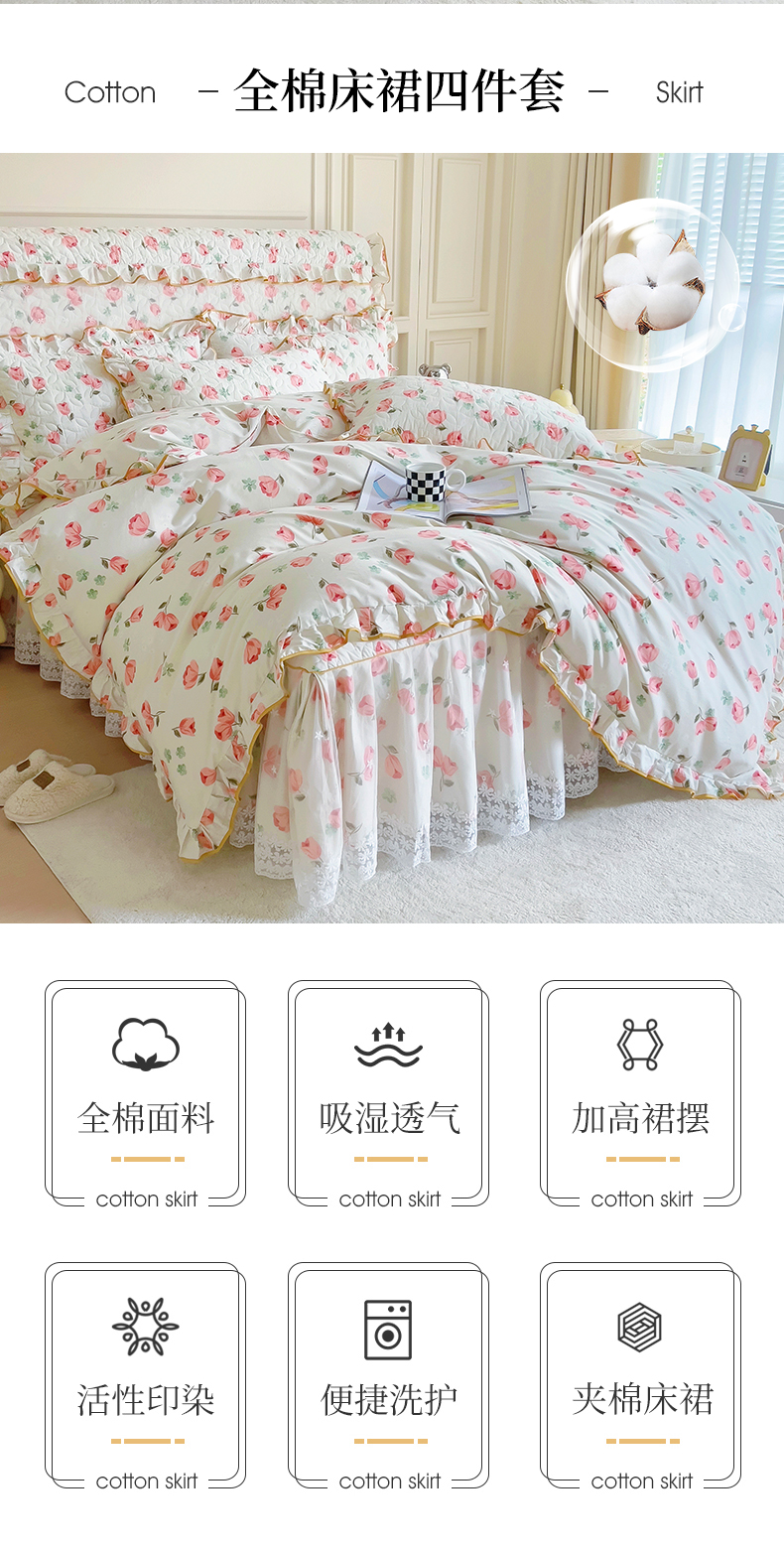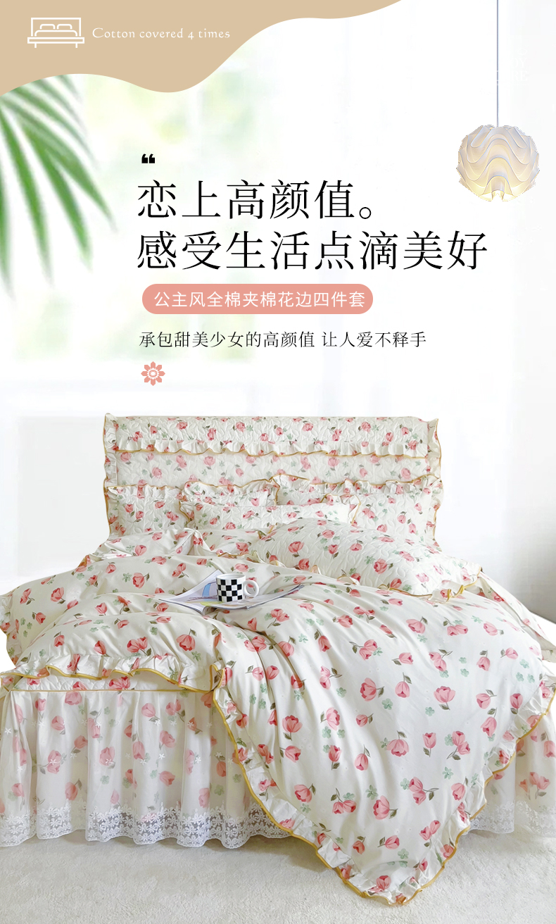 当前位置: 91家纺网 > 商品网购 > 床品套件 > 四件套 > 全棉普通四件套 > 十个点 2024新款印花夹棉蕾丝四件套 心语