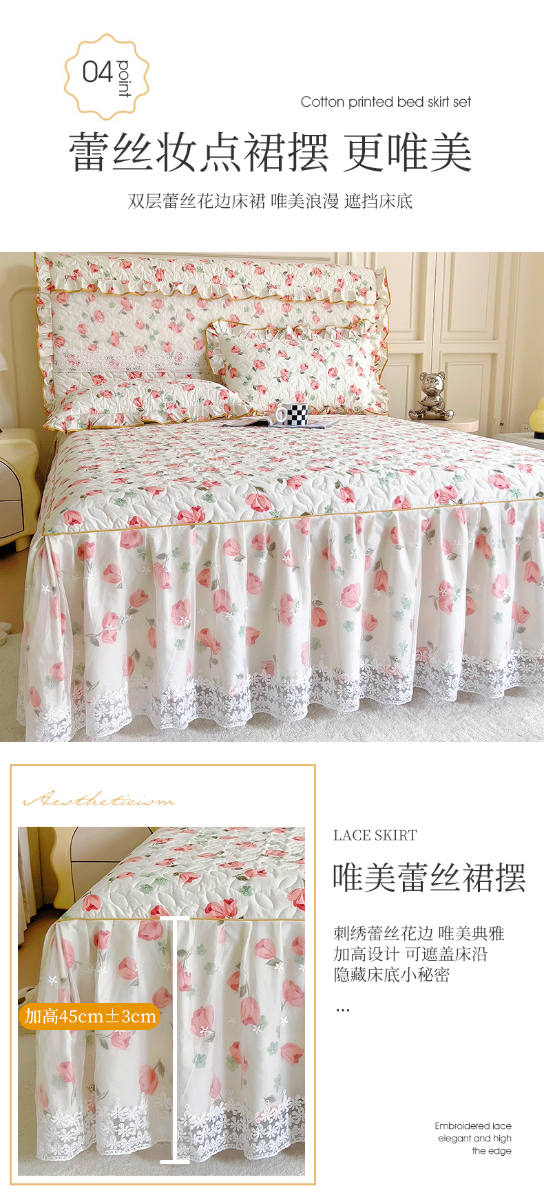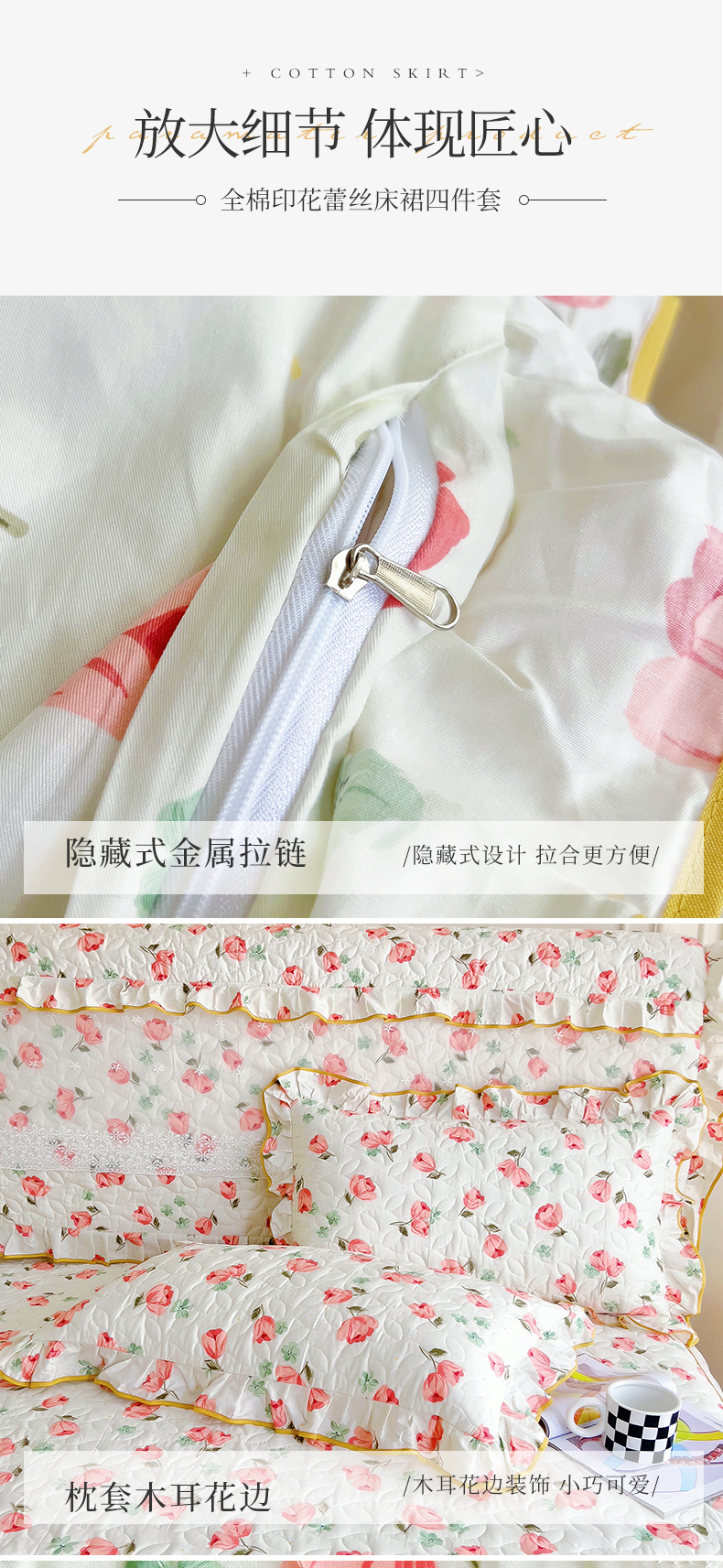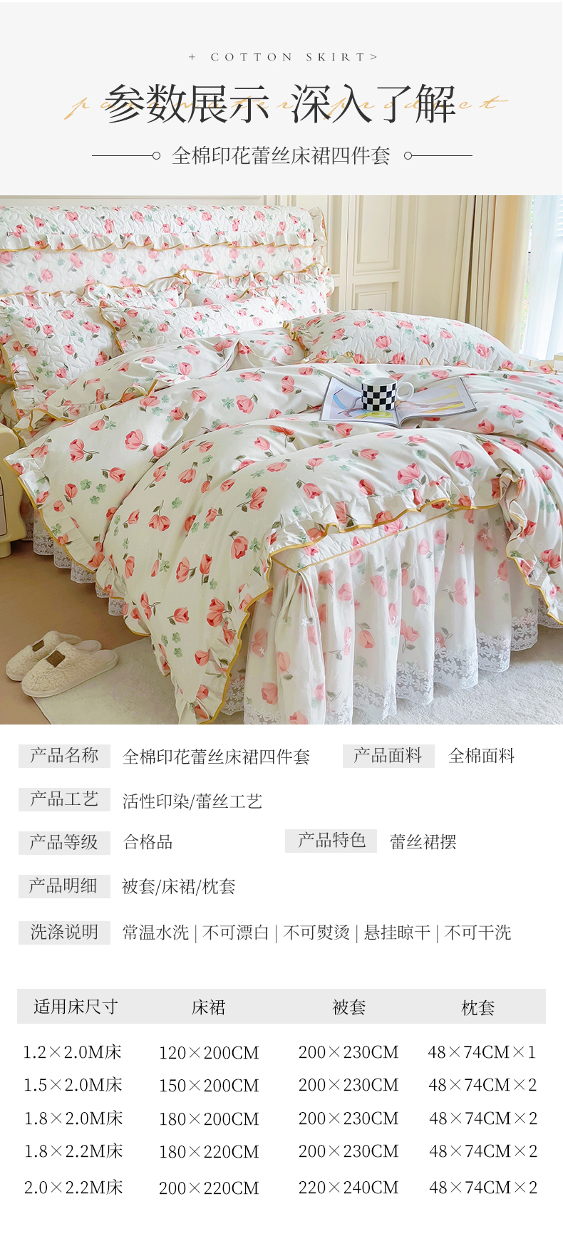 当前位置: 91家纺网 > 商品网购 > 床品套件 > 四件套 > 全棉普通四件套 > 十个点 2024新款印花夹棉蕾丝四件套 心语