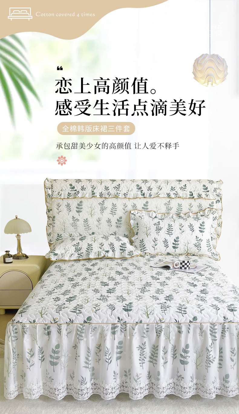 (总)十个点家纺 2025新款加厚磨毛木棉床裙三件套-绫罗系列,爱意萌萌,贝贝熊,格桑花,海棠花,蝴蝶兔,花千骨,米兰,木棉花,山茶花,同心结,心相印,心愿-米