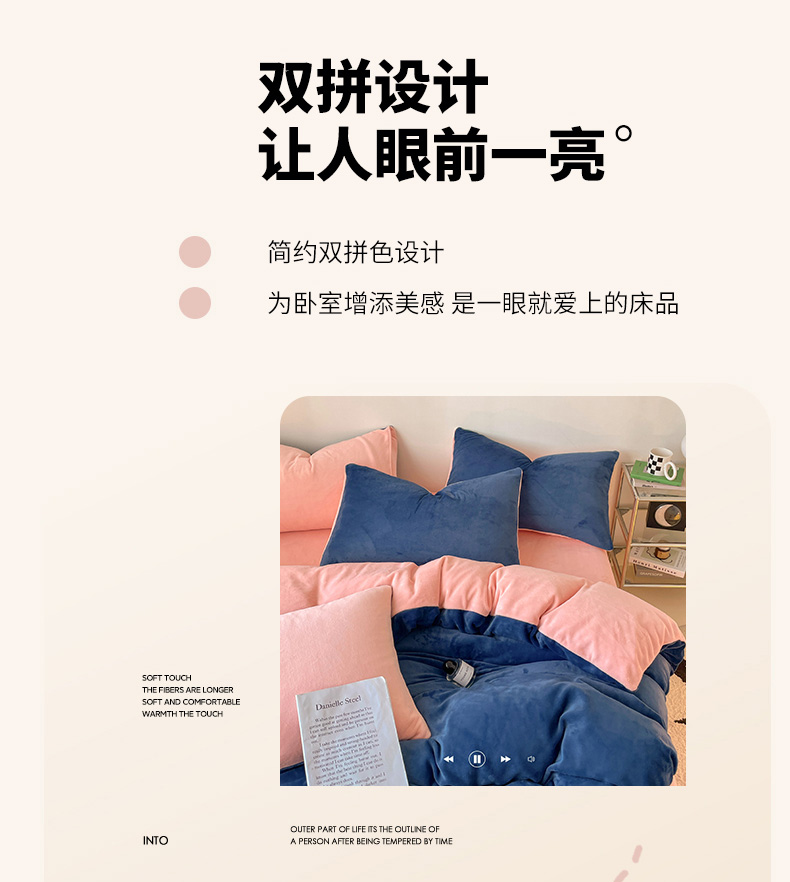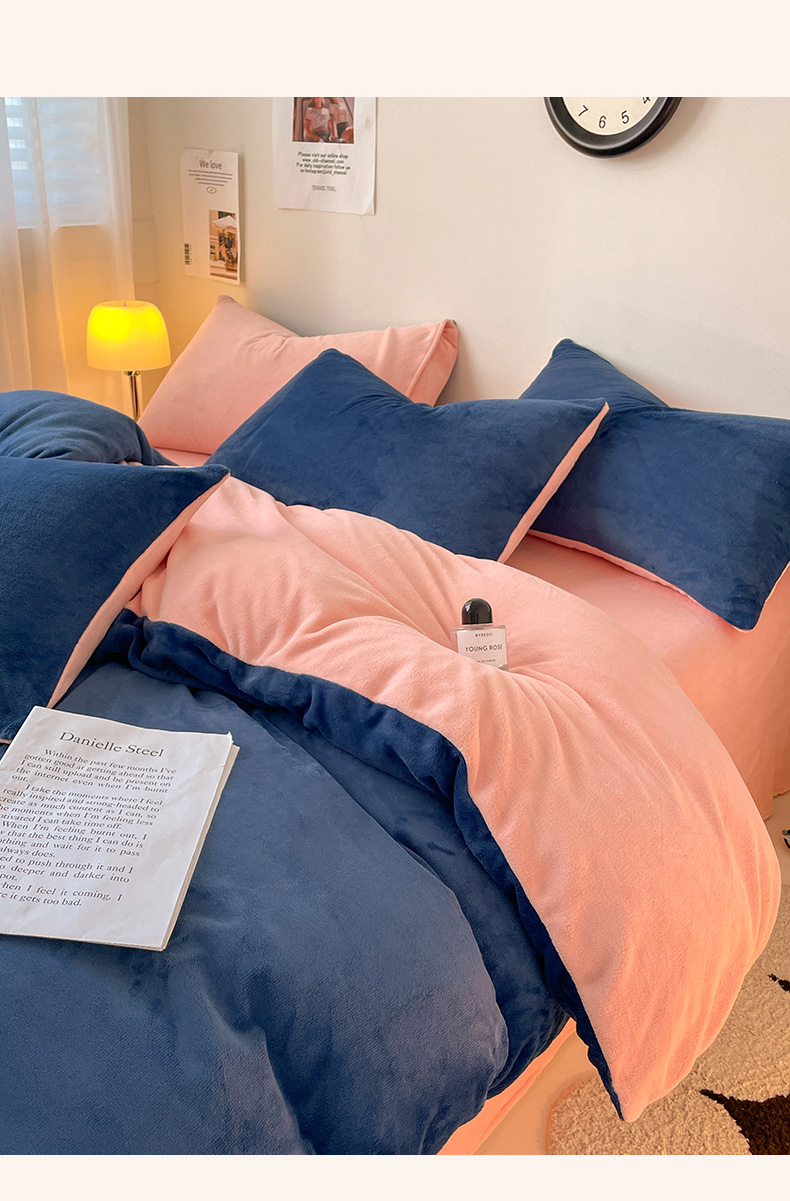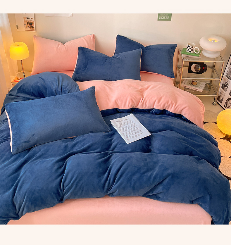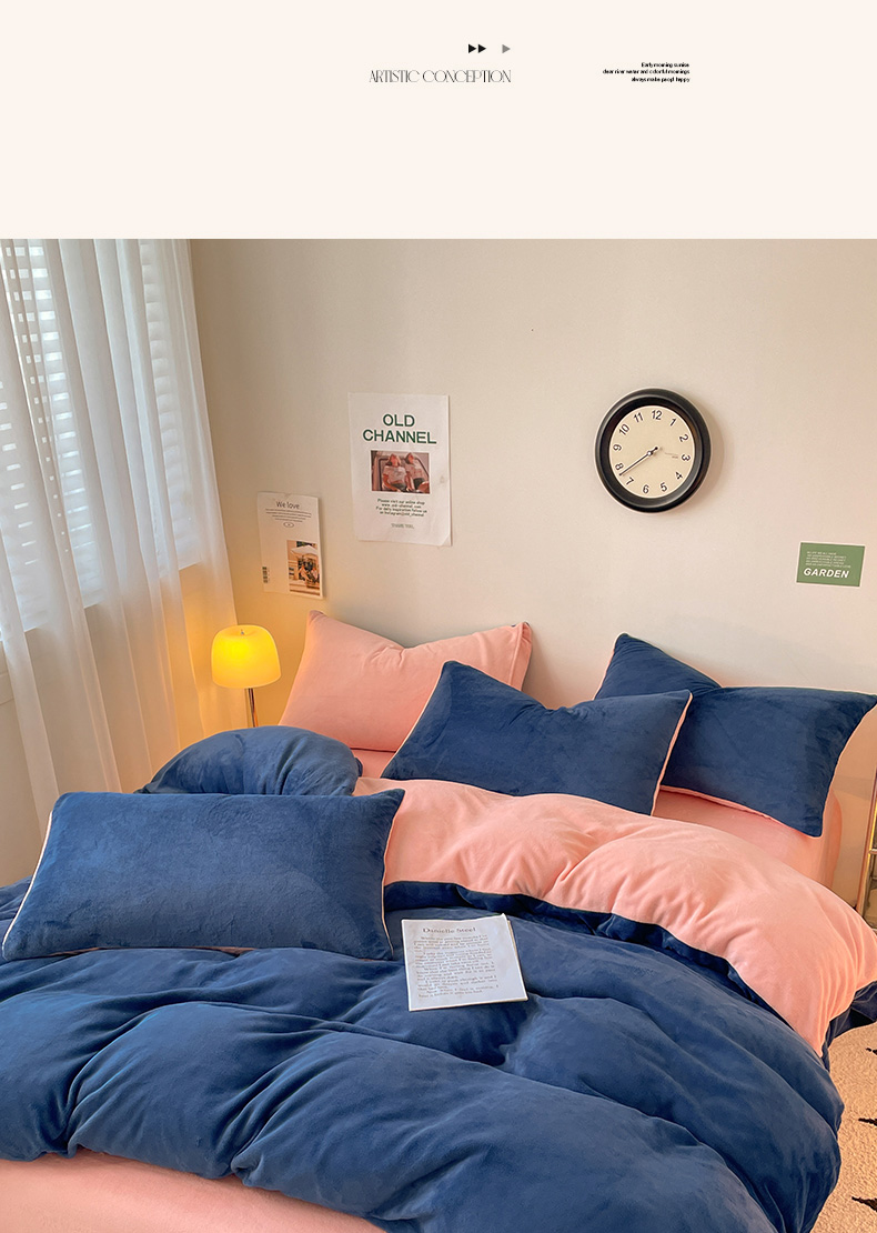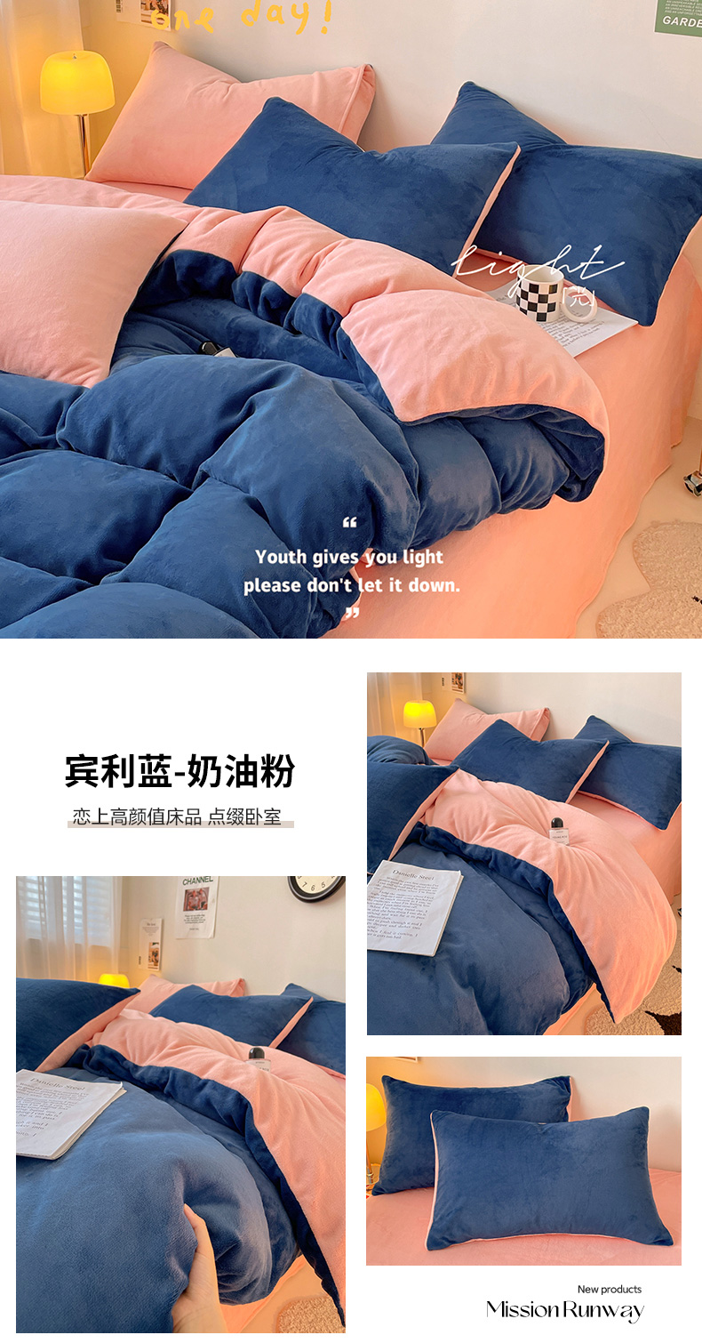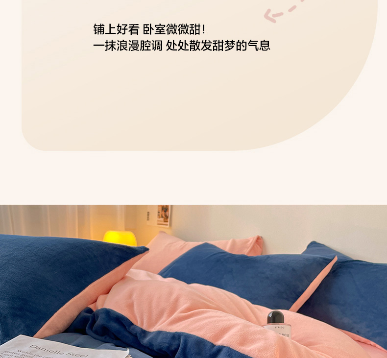 当前位置: 91家纺网 > 商品网购 > 床品套件 > 四件套 > 牛奶绒四件套 > 眠帛家居 2023新款加厚牛奶绒双拼四件套 宾利蓝-奶油粉