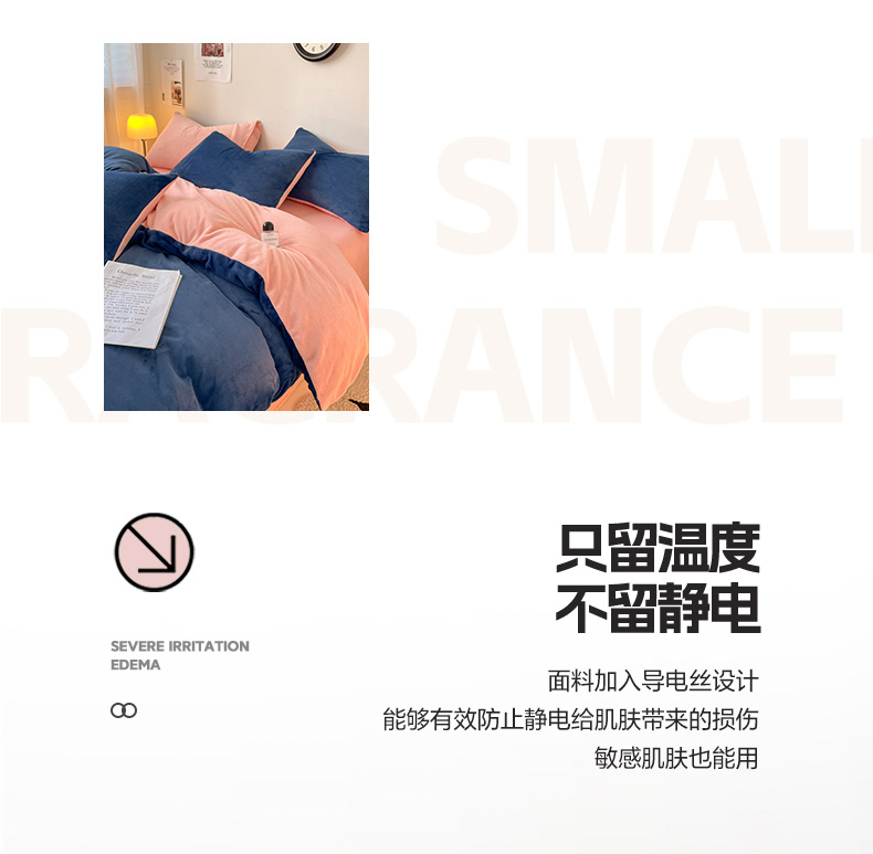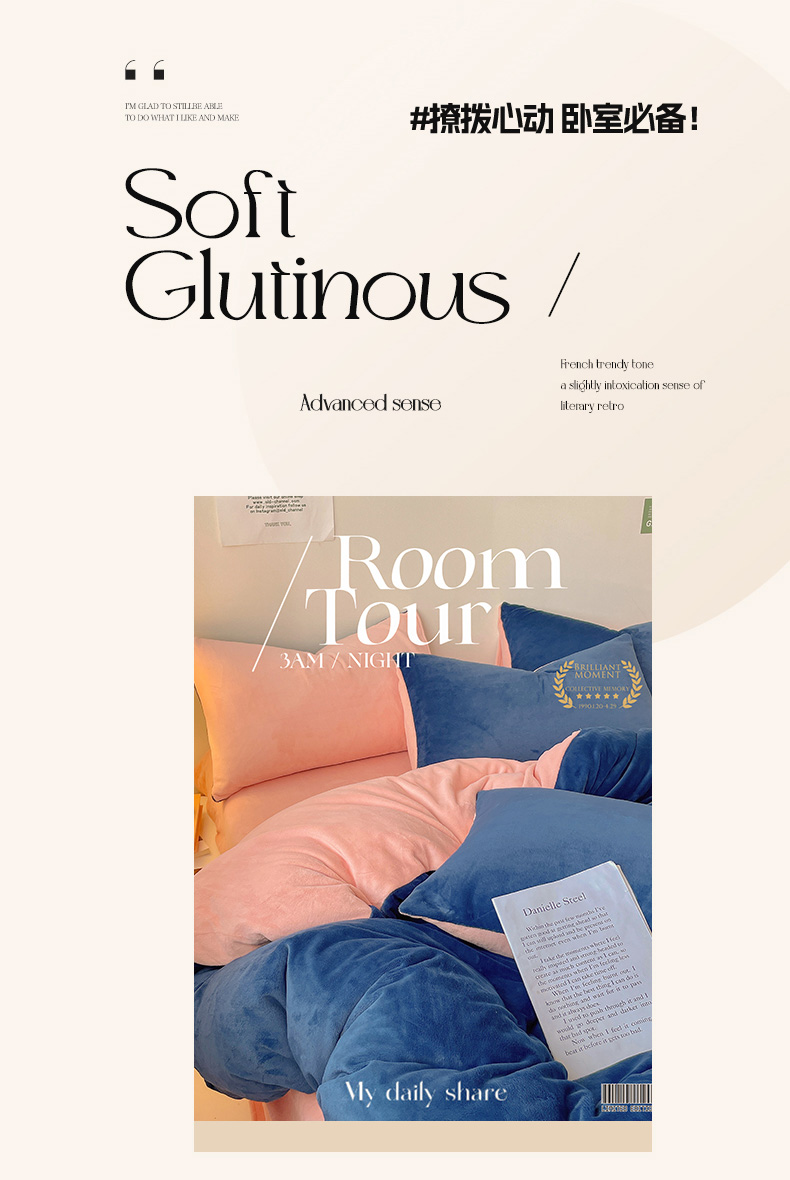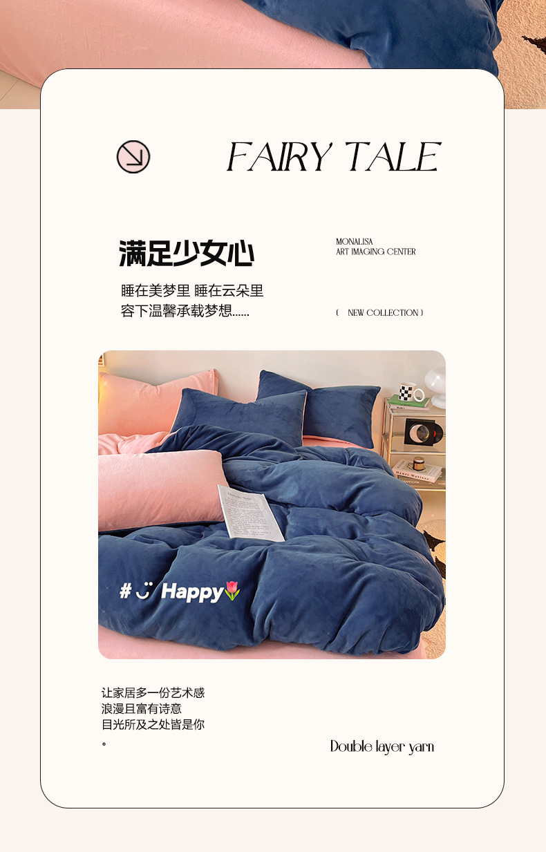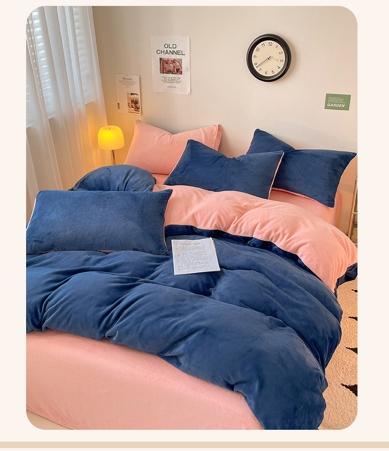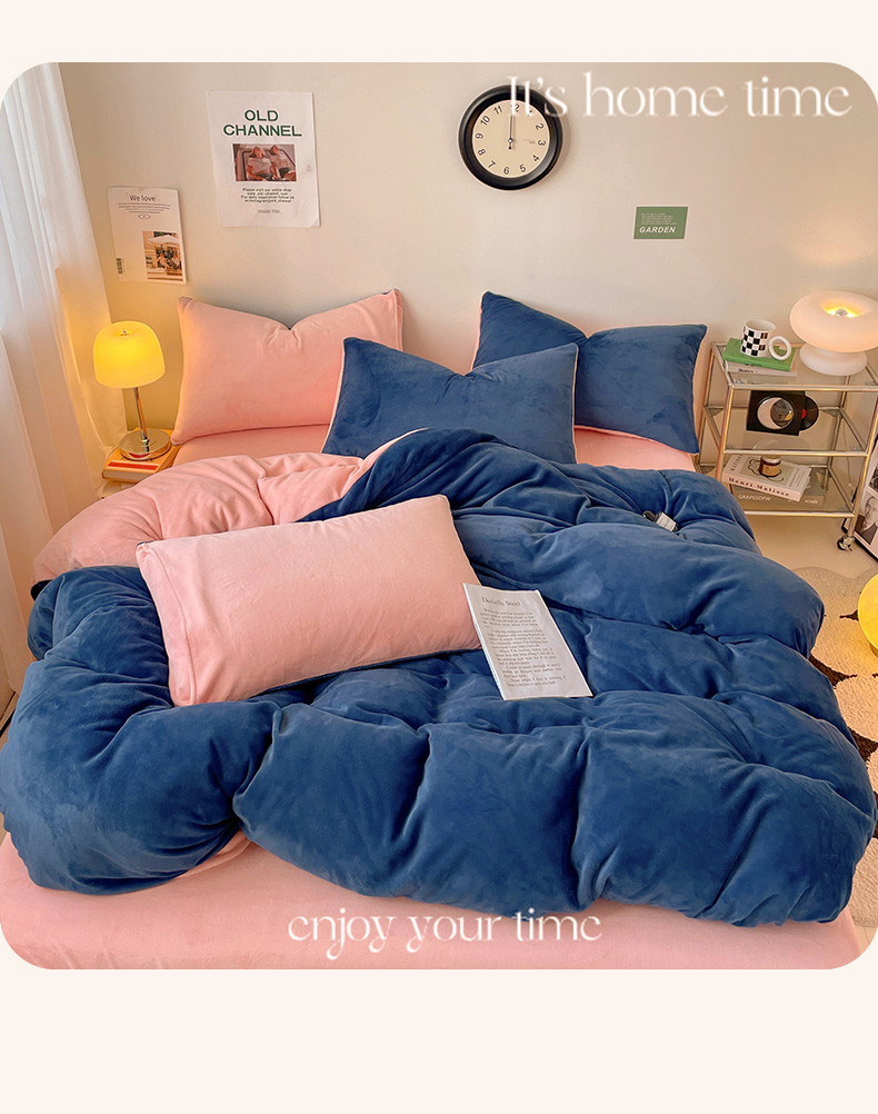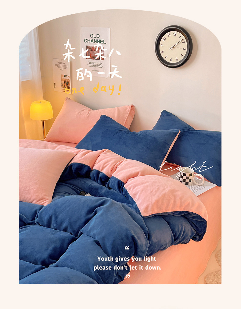 当前位置: 91家纺网 > 商品网购 > 床品套件 > 四件套 > 牛奶绒四件套 > 眠帛家居 2023新款加厚牛奶绒双拼四件套 宾利蓝-奶油粉