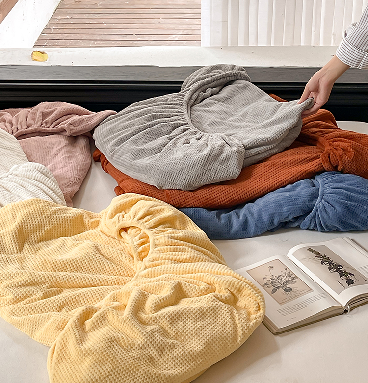 时光里 2023新款全消光华夫格绒-单床笠 浪漫粉
