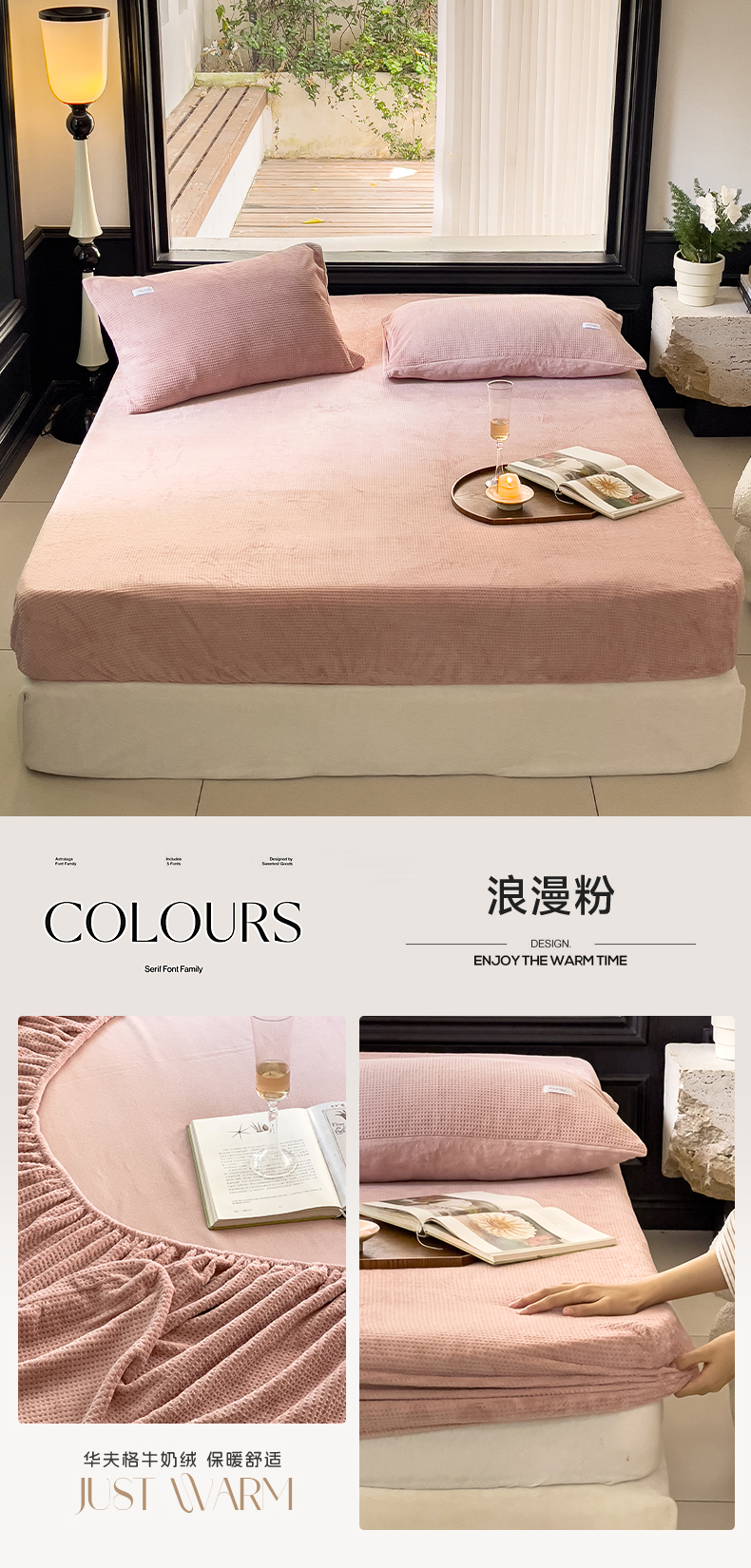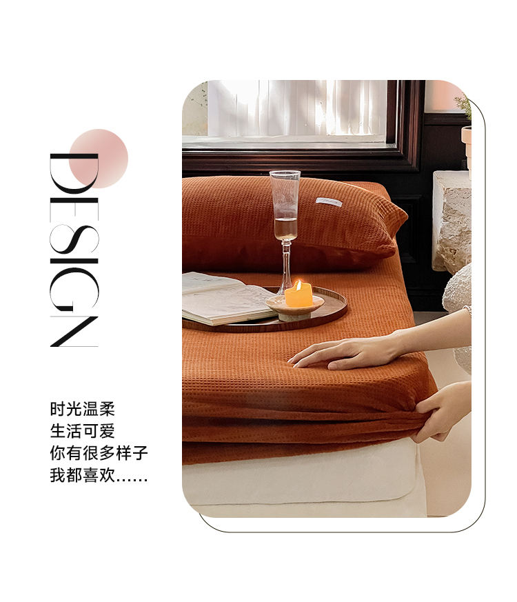 商品名称:时光里 2023新款全消光华夫格绒-单床笠 浪漫粉