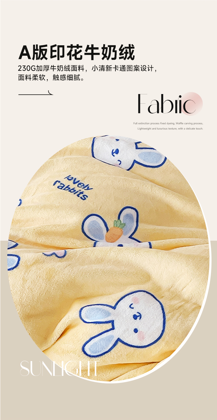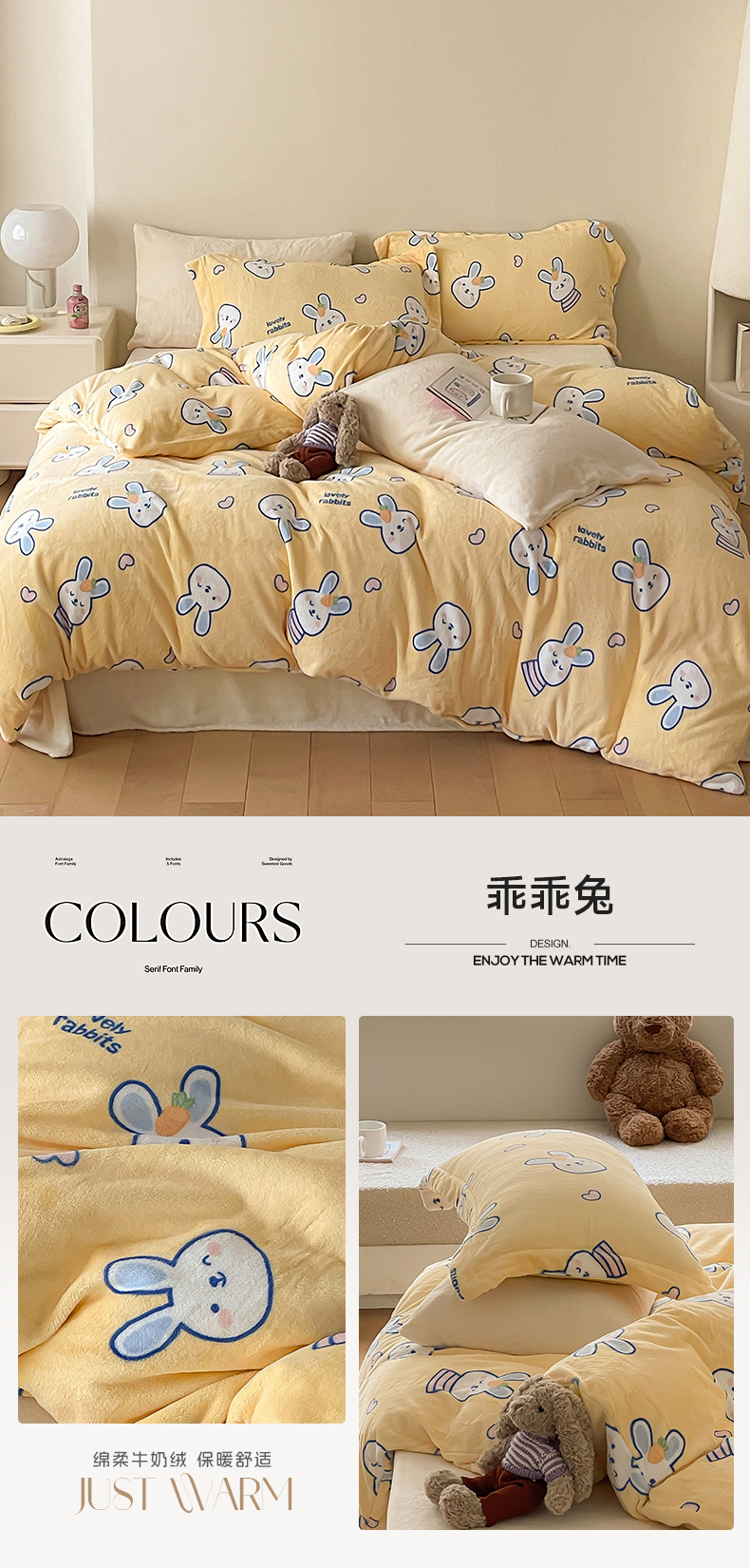当前位置: 91家纺网 > 商品网购 > 床品套件 > 四件套 > 牛奶绒四件套 > 时光里 2023新款全消光加厚牛奶绒印花四件套 乖乖兔