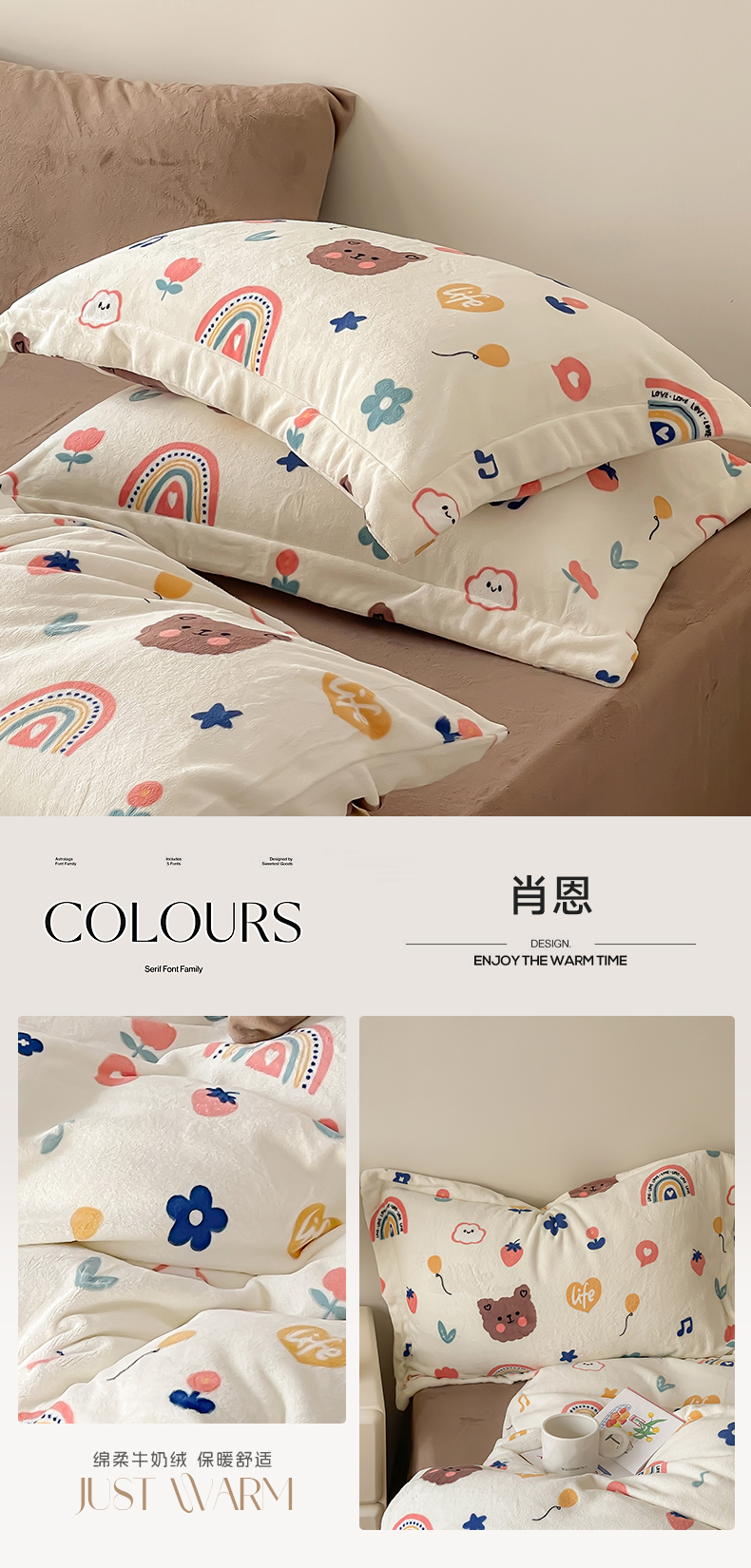 商品名称:时光里 2023新款全消光加厚牛奶绒印花单品单枕套 肖恩