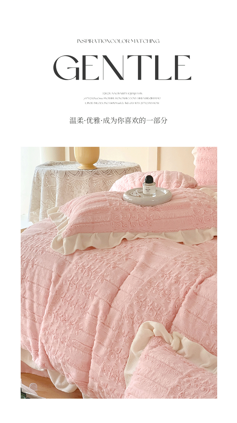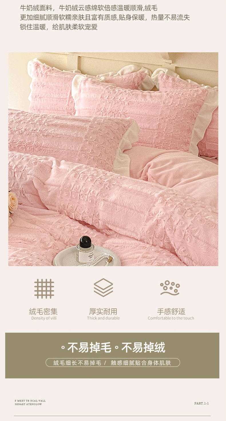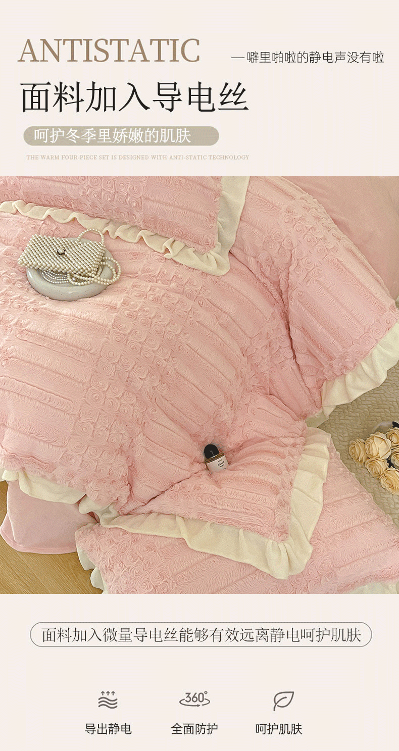 商品名称:N先生 2023秋冬新款兔毛绒花边款四件套-雪晴系列 雪晴-粉