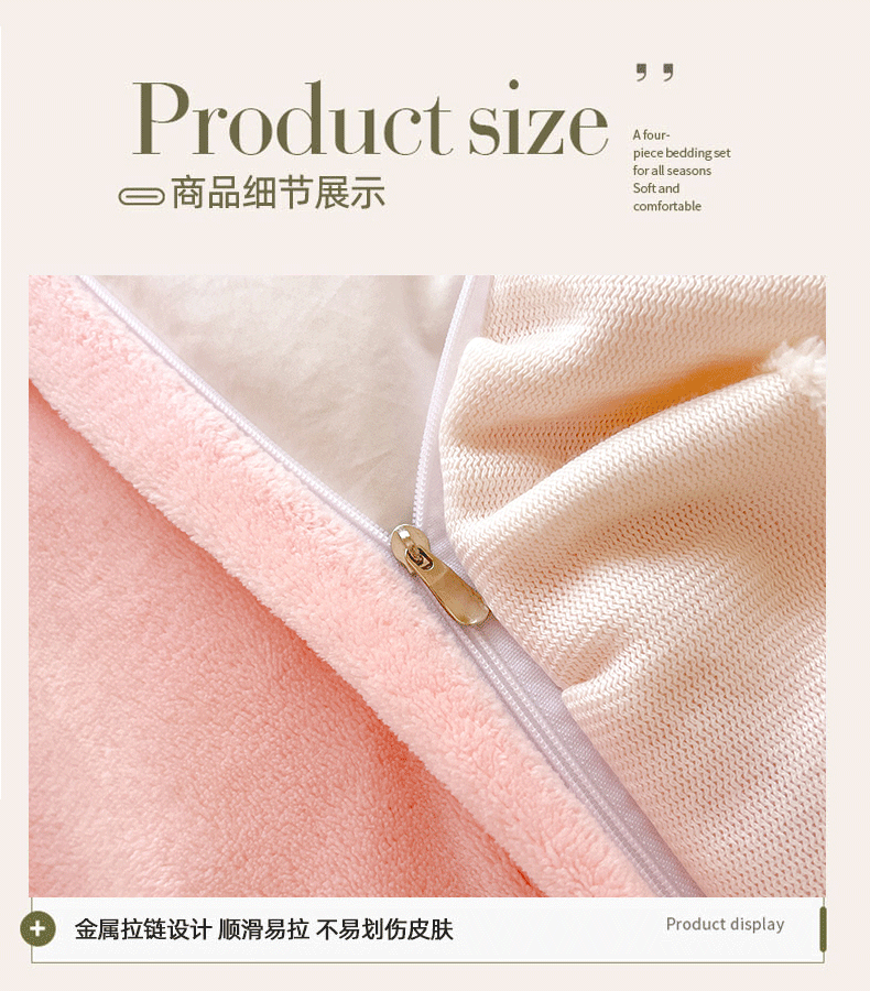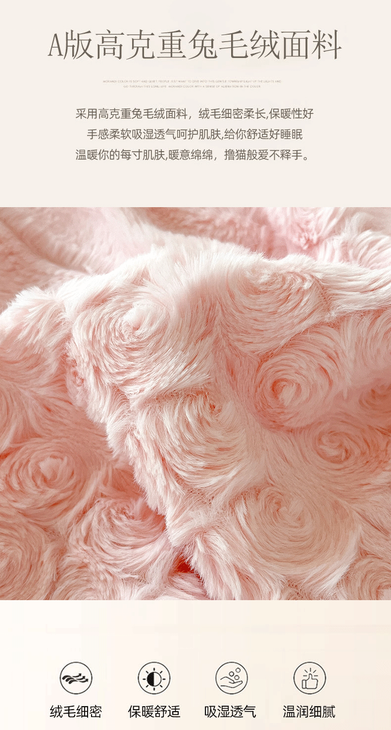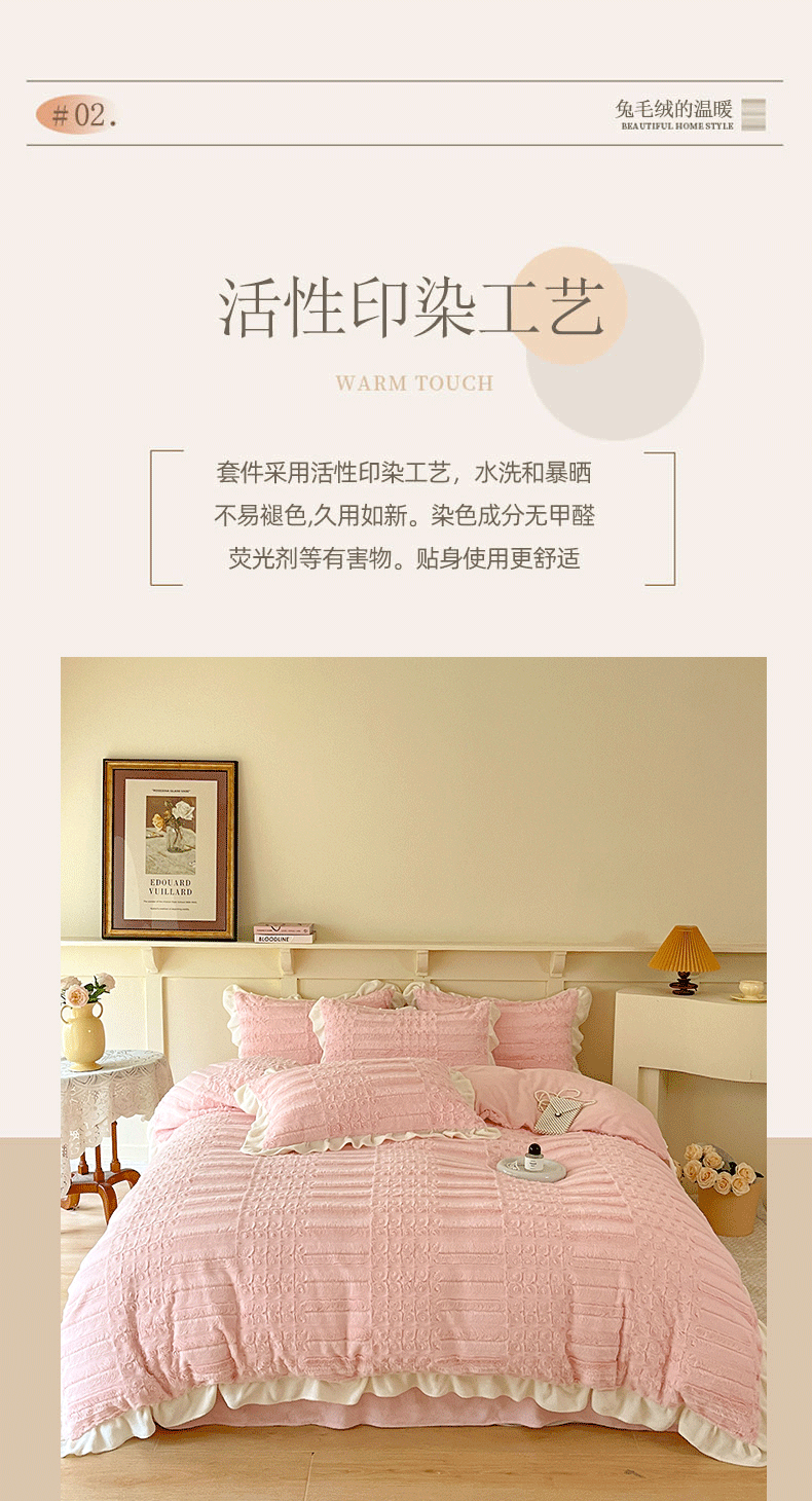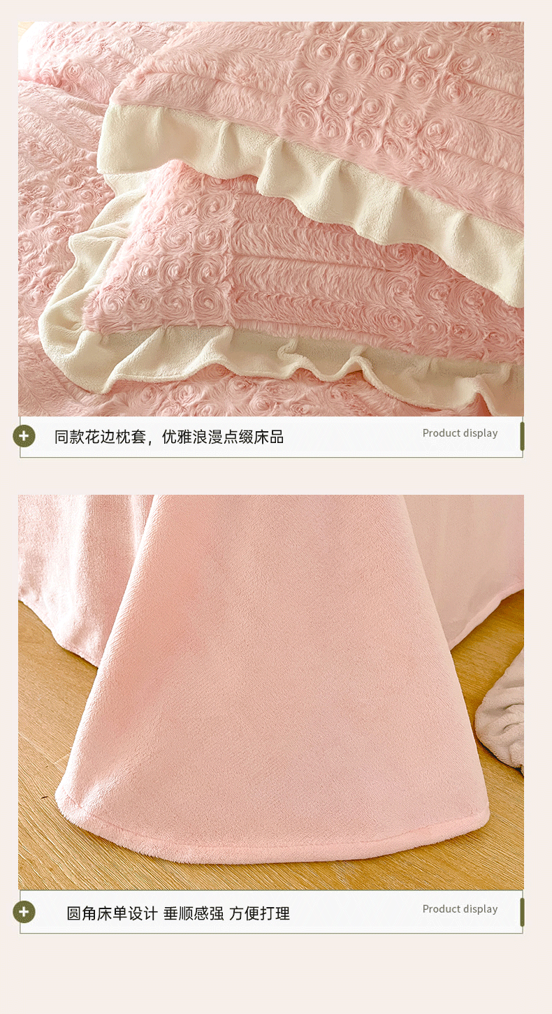 商品名称:N先生 2023秋冬新款兔毛绒花边款四件套-雪晴系列 雪晴-粉